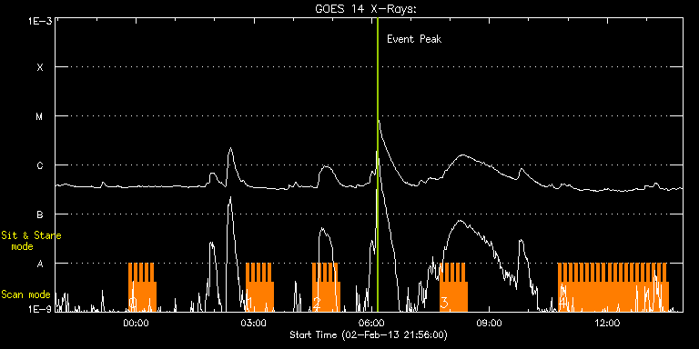 EIS Observation timeline overlay to GOES-Xray curve Code 1" 2" 40" 266" EIS Observations list for this event: STUDY ACRONYM ID DATE OBSERVED DESCRIPTION NOAA# TARGET 0 HH_Flare_162x152 | 31836 | 2013/02/02 23:48:39 | Returning previously AR11652 | 1667 | Flare TIMELINE ID DATE OBSERVED FITS FILE XCEN (+W/-E) YCEN (+N/-S) DUR ----------------------------------------------------------------------------------------------------------------- 31836 | 2013/02/02 23:48:39.000 | eis_l0_20130202_234839.fits.gz | -745.18 | 409.22 | 4m11s 31836 | 2013/02/02 23:52:53.000 | eis_l0_20130202_235253.fits.gz | -744.87 | 409.22 | 4m10s 31836 | 2013/02/02 23:57:06.000 | eis_l0_20130202_235706.fits.gz | -744.56 | 409.30 | 4m11s 31836 | 2013/02/03 00:01:20.000 | eis_l0_20130203_000120.fits.gz | -744.09 | 409.30 | 4m10s 31836 | 2013/02/03 00:05:33.000 | eis_l0_20130203_000533.fits.gz | -743.79 | 409.30 | 4m10s 31836 | 2013/02/03 00:09:46.000 | eis_l0_20130203_000946.fits.gz | -743.48 | 409.45 | 4m11s 31836 | 2013/02/03 00:13:59.000 | eis_l0_20130203_001359.fits.gz | -743.17 | 409.45 | 4m11s 31836 | 2013/02/03 00:18:13.000 | eis_l0_20130203_001813.fits.gz | -742.70 | 409.61 | 4m11s 31836 | 2013/02/03 00:22:27.000 | eis_l0_20130203_002227.fits.gz | -742.40 | 409.53 | 4m11s 31836 | 2013/02/03 00:26:41.000 | eis_l0_20130203_002641.fits.gz | -742.01 | 409.68 | 4m10s 1 HH_Flare_162x152 | 31838 | 2013/02/03 02:47:47 | Returning previously AR11652 | 1667 | Flare TIMELINE ID DATE OBSERVED FITS FILE XCEN (+W/-E) YCEN (+N/-S) DUR ----------------------------------------------------------------------------------------------------------------- 31838 | 2013/02/03 02:47:47.000 | eis_l0_20130203_024747.fits.gz | -730.19 | 411.46 | 4m11s 31838 | 2013/02/03 02:52:01.000 | eis_l0_20130203_025201.fits.gz | -729.80 | 411.46 | 4m11s 31838 | 2013/02/03 02:56:14.000 | eis_l0_20130203_025614.fits.gz | -729.42 | 411.77 | 4m11s 31838 | 2013/02/03 03:00:28.000 | eis_l0_20130203_030028.fits.gz | -729.03 | 411.77 | 4m10s 31838 | 2013/02/03 03:04:41.000 | eis_l0_20130203_030441.fits.gz | -728.72 | 411.69 | 4m11s 31838 | 2013/02/03 03:08:55.000 | eis_l0_20130203_030855.fits.gz | -728.34 | 411.77 | 4m10s 31838 | 2013/02/03 03:13:08.000 | eis_l0_20130203_031308.fits.gz | -728.03 | 411.85 | 4m10s 31838 | 2013/02/03 03:17:21.000 | eis_l0_20130203_031721.fits.gz | -727.64 | 411.85 | 4m11s 31838 | 2013/02/03 03:21:35.000 | eis_l0_20130203_032135.fits.gz | -727.33 | 412.08 | 4m10s 31838 | 2013/02/03 03:25:48.000 | eis_l0_20130203_032548.fits.gz | -726.95 | 411.92 | 4m11s 2 HH_Flare_162x152 | 31860 | 2013/02/03 04:29:47 | Returning previously AR11652 | 1667 | Flare TIMELINE ID DATE OBSERVED FITS FILE XCEN (+W/-E) YCEN (+N/-S) DUR ----------------------------------------------------------------------------------------------------------------- 31860 | 2013/02/03 04:29:47.000 | eis_l0_20130203_042947.fits.gz | -721.38 | 412.85 | 4m11s 31860 | 2013/02/03 04:34:01.000 | eis_l0_20130203_043401.fits.gz | -721.08 | 412.93 | 4m11s 31860 | 2013/02/03 04:38:14.000 | eis_l0_20130203_043814.fits.gz | -720.77 | 413.08 | 4m11s 31860 | 2013/02/03 04:42:28.000 | eis_l0_20130203_044228.fits.gz | -720.30 | 412.93 | 4m10s 31860 | 2013/02/03 04:46:41.000 | eis_l0_20130203_044641.fits.gz | -719.84 | 413.01 | 4m11s 31860 | 2013/02/03 04:50:55.000 | eis_l0_20130203_045055.fits.gz | -719.53 | 413.08 | 4m11s 31860 | 2013/02/03 04:55:09.000 | eis_l0_20130203_045509.fits.gz | -719.22 | 413.16 | 4m11s 31860 | 2013/02/03 04:59:23.000 | eis_l0_20130203_045923.fits.gz | -718.84 | 413.16 | 4m10s 31860 | 2013/02/03 05:03:36.000 | eis_l0_20130203_050336.fits.gz | -718.37 | 413.24 | 4m11s 31860 | 2013/02/03 05:07:49.000 | eis_l0_20130203_050749.fits.gz | -717.98 | 413.24 | 4m11s 3 HH_Flare_162x152 | 31849 | 2013/02/03 07:43:51 | Returning previously AR11652 | 1667 | Flare TIMELINE ID DATE OBSERVED FITS FILE XCEN (+W/-E) YCEN (+N/-S) DUR ----------------------------------------------------------------------------------------------------------------- 31849 | 2013/02/03 07:43:51.000 | eis_l0_20130203_074351.fits.gz | -704.16 | 415.17 | 4m11s 31849 | 2013/02/03 07:48:05.000 | eis_l0_20130203_074805.fits.gz | -703.77 | 415.48 | 4m10s 31849 | 2013/02/03 07:52:18.000 | eis_l0_20130203_075218.fits.gz | -703.31 | 415.40 | 4m11s 31849 | 2013/02/03 07:56:32.000 | eis_l0_20130203_075632.fits.gz | -703.08 | 415.48 | 4m10s 31849 | 2013/02/03 08:00:45.000 | eis_l0_20130203_080045.fits.gz | -702.61 | 415.48 | 4m10s 31849 | 2013/02/03 08:04:58.000 | eis_l0_20130203_080458.fits.gz | -702.23 | 415.48 | 4m11s 31849 | 2013/02/03 08:09:12.000 | eis_l0_20130203_080912.fits.gz | -701.84 | 415.48 | 4m11s 31849 | 2013/02/03 08:13:25.000 | eis_l0_20130203_081325.fits.gz | -701.45 | 415.71 | 4m11s 31849 | 2013/02/03 08:17:39.000 | eis_l0_20130203_081739.fits.gz | -701.15 | 415.71 | 4m10s 31849 | 2013/02/03 08:21:52.000 | eis_l0_20130203_082152.fits.gz | -700.68 | 415.86 | 4m11s 4 HH_Flare_162x152 | 31872 | 2013/02/03 10:45:13 | Returning previously AR11652 | 1667 | Flare TIMELINE ID DATE OBSERVED FITS FILE XCEN (+W/-E) YCEN (+N/-S) DUR ----------------------------------------------------------------------------------------------------------------- 31872 | 2013/02/03 10:45:13.000 | eis_l0_20130203_104513.fits.gz | -687.40 | 417.56 | 4m11s 31872 | 2013/02/03 10:49:27.000 | eis_l0_20130203_104927.fits.gz | -687.01 | 417.56 | 4m10s 31872 | 2013/02/03 10:53:40.000 | eis_l0_20130203_105340.fits.gz | -686.62 | 417.72 | 4m10s 31872 | 2013/02/03 10:57:53.000 | eis_l0_20130203_105753.fits.gz | -686.31 | 417.72 | 4m11s 31872 | 2013/02/03 11:02:07.000 | eis_l0_20130203_110207.fits.gz | -685.85 | 417.87 | 4m10s 31872 | 2013/02/03 11:06:20.000 | eis_l0_20130203_110620.fits.gz | -685.39 | 417.87 | 4m11s 31872 | 2013/02/03 11:10:33.000 | eis_l0_20130203_111033.fits.gz | -685.00 | 417.80 | 4m11s 31872 | 2013/02/03 11:14:47.000 | eis_l0_20130203_111447.fits.gz | -684.61 | 418.03 | 4m10s 31872 | 2013/02/03 11:19:00.000 | eis_l0_20