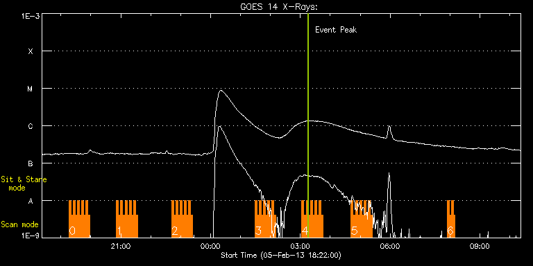 EIS Observation timeline overlay to GOES-Xray curve Code 1" 2" 40" 266" EIS Observations list for this event: STUDY ACRONYM ID DATE OBSERVED DESCRIPTION NOAA# TARGET 0 HH_Flare_162x152 | 31912 | 2013/02/05 19:16:26 | former AR11564 | 1669 | Flare TIMELINE ID DATE OBSERVED FITS FILE XCEN (+W/-E) YCEN (+N/-S) DUR ----------------------------------------------------------------------------------------------------------------- 31912 | 2013/02/05 19:16:26.000 | eis_l0_20130205_191626.fits.gz | -829.07 | 161.72 | 4m10s 31912 | 2013/02/05 19:20:39.000 | eis_l0_20130205_192039.fits.gz | -828.68 | 161.64 | 4m11s 31912 | 2013/02/05 19:24:52.000 | eis_l0_20130205_192452.fits.gz | -828.37 | 161.64 | 4m11s 31912 | 2013/02/05 19:29:06.000 | eis_l0_20130205_192906.fits.gz | -828.06 | 161.87 | 4m10s 31912 | 2013/02/05 19:33:19.000 | eis_l0_20130205_193319.fits.gz | -827.68 | 161.80 | 4m11s 31912 | 2013/02/05 19:37:33.000 | eis_l0_20130205_193733.fits.gz | -827.37 | 162.03 | 4m10s 31912 | 2013/02/05 19:41:46.000 | eis_l0_20130205_194146.fits.gz | -827.06 | 161.95 | 4m11s 31912 | 2013/02/05 19:45:59.000 | eis_l0_20130205_194559.fits.gz | -826.67 | 161.95 | 4m11s 31912 | 2013/02/05 19:50:13.000 | eis_l0_20130205_195013.fits.gz | -826.36 | 162.03 | 4m10s 31912 | 2013/02/05 19:54:26.000 | eis_l0_20130205_195426.fits.gz | -825.98 | 162.26 | 4m11s 1 HH_Flare_162x152 | 31926 | 2013/02/05 20:51:24 | former AR11564 | 1669 | Flare TIMELINE ID DATE OBSERVED FITS FILE XCEN (+W/-E) YCEN (+N/-S) DUR ----------------------------------------------------------------------------------------------------------------- 31926 | 2013/02/05 20:51:24.000 | eis_l0_20130205_205124.fits.gz | -821.34 | 163.03 | 4m10s 31926 | 2013/02/05 20:55:37.000 | eis_l0_20130205_205537.fits.gz | -820.96 | 163.11 | 4m10s 31926 | 2013/02/05 20:59:50.000 | eis_l0_20130205_205950.fits.gz | -820.65 | 163.11 | 4m11s 31926 | 2013/02/05 21:04:04.000 | eis_l0_20130205_210404.fits.gz | -820.26 | 163.19 | 4m10s 31926 | 2013/02/05 21:08:17.000 | eis_l0_20130205_210817.fits.gz | -819.95 | 163.26 | 4m11s 31926 | 2013/02/05 21:12:30.000 | eis_l0_20130205_211230.fits.gz | -819.64 | 163.34 | 4m11s 31926 | 2013/02/05 21:16:44.000 | eis_l0_20130205_211644.fits.gz | -819.18 | 163.50 | 4m10s 31926 | 2013/02/05 21:20:57.000 | eis_l0_20130205_212057.fits.gz | -818.87 | 163.57 | 4m11s 31926 | 2013/02/05 21:25:11.000 | eis_l0_20130205_212511.fits.gz | -818.41 | 163.42 | 4m10s 31926 | 2013/02/05 21:29:24.000 | eis_l0_20130205_212924.fits.gz | -818.17 | 163.50 | 4m11s 2 HH_Flare_162x152 | 31913 | 2013/02/05 22:41:54 | former AR11654 | 1669 | Flare TIMELINE ID DATE OBSERVED FITS FILE XCEN (+W/-E) YCEN (+N/-S) DUR ----------------------------------------------------------------------------------------------------------------- 31913 | 2013/02/05 22:41:54.000 | eis_l0_20130205_224154.fits.gz | -811.99 | 164.73 | 4m10s 31913 | 2013/02/05 22:46:07.000 | eis_l0_20130205_224607.fits.gz | -811.69 | 164.65 | 4m10s 31913 | 2013/02/05 22:50:20.000 | eis_l0_20130205_225020.fits.gz | -811.30 | 164.73 | 4m11s 31913 | 2013/02/05 22:54:34.000 | eis_l0_20130205_225434.fits.gz | -810.91 | 164.96 | 4m10s 31913 | 2013/02/05 22:58:47.000 | eis_l0_20130205_225847.fits.gz | -810.53 | 164.96 | 4m11s 31913 | 2013/02/05 23:03:01.000 | eis_l0_20130205_230301.fits.gz | -810.22 | 165.04 | 4m10s 31913 | 2013/02/05 23:07:14.000 | eis_l0_20130205_230714.fits.gz | -809.83 | 164.96 | 4m11s 31913 | 2013/02/05 23:11:27.000 | eis_l0_20130205_231127.fits.gz | -809.45 | 165.12 | 4m11s 31913 | 2013/02/05 23:15:41.000 | eis_l0_20130205_231541.fits.gz | -809.14 | 165.27 | 4m10s 31913 | 2013/02/05 23:19:54.000 | eis_l0_20130205_231954.fits.gz | -808.75 | 165.12 | 4m11s 3 HH_Flare_162x152 | 31919 | 2013/02/06 01:29:18 | former AR11654 | 1669 | Flare TIMELINE ID DATE OBSERVED FITS FILE XCEN (+W/-E) YCEN (+N/-S) DUR ----------------------------------------------------------------------------------------------------------------- 31919 | 2013/02/06 01:29:18.000 | eis_l0_20130206_012918.fits.gz | -797.40 | 167.36 | 4m10s 31919 | 2013/02/06 01:33:31.000 | eis_l0_20130206_013331.fits.gz | -797.01 | 167.36 | 4m11s 31919 | 2013/02/06 01:37:44.000 | eis_l0_20130206_013744.fits.gz | -796.62 | 167.36 | 4m11s 31919 | 2013/02/06 01:41:58.000 | eis_l0_20130206_014158.fits.gz | -796.31 | 167.44 | 4m10s 31919 | 2013/02/06 01:46:11.000 | eis_l0_20130206_014611.fits.gz | -795.93 | 167.51 | 4m11s 31919 | 2013/02/06 01:50:25.000 | eis_l0_20130206_015025.fits.gz | -795.54 | 167.36 | 4m10s 31919 | 2013/02/06 01:54:38.000 | eis_l0_20130206_015438.fits.gz | -795.23 | 167.59 | 4m11s 31919 | 2013/02/06 01:58:52.000 | eis_l0_20130206_015852.fits.gz | -794.69 | 167.51 | 4m10s 31919 | 2013/02/06 02:03:05.000 | eis_l0_20130206_020305.fits.gz | -794.46 | 167.59 | 4m11s 31919 | 2013/02/06 02:07:18.000 | eis_l0_20130206_020718.fits.gz | -794.00 | 167.82 | 4m11s 4 HH_Flare_162x152 | 31927 | 2013/02/06 03:03:01 | former AR11564 | 1669 | Flare TIMELINE ID DATE OBSERVED FITS FILE XCEN (+W/-E) YCEN (+N/-S) DUR ----------------------------------------------------------------------------------------------------------------- 31927 | 2013/02/06 03:03:01.000 | eis_l0_20130206_030301.fits.gz | -788.98 | 168.60 | 4m11s 31927 | 2013/02/06 03:07:15.000 | eis_l0_20130206_030715.fits.gz | -788.67 | 168.67 | 4m10s 31927 | 2013/02/06 03:11:28.000 | eis_l0_20130206_031128.fits.gz | -788.28 | 168.67 | 4m11s 31927 | 2013/02/06 03:15:42.000 | eis_l0_20130206_031542.fits.gz | -787.82 | 168.67 | 4m10s 31927 | 2013/02/06 03:19:55.000 | eis_l0_20130206_031955.fits.gz | -787.43 | 168.83 | 4m11s 31927 | 2013/02/06 03:24:08.000 | eis_l0_20130206_032408.fits.gz | -787.04 | 168.83 | 4m11s 31927 | 2013/02/06 03:28:22.000 | eis_l0_20130206_032822.fits.gz | -786.66 | 168.90 | 4m11s 31927 | 2013/02/06 03:32:35.000 | eis_l0_20130206_033235.fits.gz | -786.27 | 168.90 | 4m11s 31927 | 2013/02/06 03:36:49.000 | eis_l0_20130206_033649.fits.gz | -785.89 | 169.06 | 4m10s 31927 | 2013/02/06 03