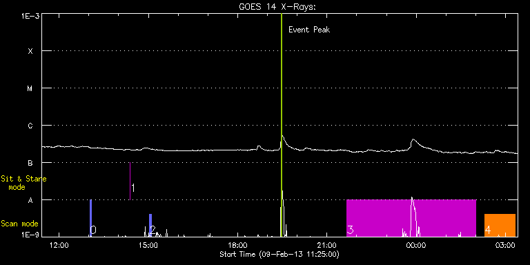 EIS Observation timeline overlay to GOES-Xray curve Code 1" 2" 40" 266" EIS Observations list for this event: STUDY ACRONYM ID DATE OBSERVED DESCRIPTION NOAA# TARGET 0 PRY_slot_context_v3 | 31961 | 2013/02/09 13:02:20 | Context raster | 1665 | Active Region TIMELINE ID DATE OBSERVED FITS FILE XCEN (+W/-E) YCEN (+N/-S) DUR ----------------------------------------------------------------------------------------------------------------- 31961 | 2013/02/09 13:02:20.000 | eis_l0_20130209_130220.fits.gz | 919.68 | -26.35 | 2m56s 1 regcal076 | 31992 | 2013/02/09 14:23:12 | Flatfield, 1 exposure, led 100ms, ccd | | Engineering TIMELINE ID DATE OBSERVED FITS FILE XCEN (+W/-E) YCEN (+N/-S) DUR ----------------------------------------------------------------------------------------------------------------- 31992 | 2013/02/09 14:23:12.000 | eis_l0_20130209_142312.fits.gz | 917.46 | 168.26 | 1s 2 PRY_slot_context_v3 | 31987 | 2013/02/09 15:02:34 | Context raster | 1669 | Active Region TIMELINE ID DATE OBSERVED FITS FILE XCEN (+W/-E) YCEN (+N/-S) DUR ----------------------------------------------------------------------------------------------------------------- 31987 | 2013/02/09 15:02:34.000 | eis_l0_20130209_150234.fits.gz | -94.09 | 390.86 | 2m57s 3 PRY_loop_velocity | 31986 | 2013/02/09 21:40:35 | Active region fan loop study | | Active Region TIMELINE ID DATE OBSERVED FITS FILE XCEN (+W/-E) YCEN (+N/-S) DUR ----------------------------------------------------------------------------------------------------------------- 31986 | 2013/02/09 21:40:35.000 | eis_l0_20130209_214035.fits.gz | 17.30 | 101.55 | 4h19m27s 4 Atlas_60 | 31990 | 2013/02/10 02:17:55 | Spectral atlas of fan loops/outflow re | | Quiet Sun TIMELINE ID DATE OBSERVED FITS FILE XCEN (+W/-E) YCEN (+N/-S) DUR ----------------------------------------------------------------------------------------------------------------- 31990 | 2013/02/10 02:17:55.000 | eis_l0_20130210_021755.fits.gz | 41.58 | 194.63 | 1h1m39s : Check study information : Download file : View thumbnails For this event, also check for: