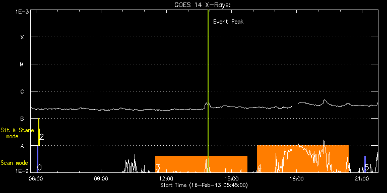 EIS Observation timeline overlay to GOES-Xray curve Code 1" 2" 40" 266" EIS Observations list for this event: STUDY ACRONYM ID DATE OBSERVED DESCRIPTION NOAA# TARGET 0 PRY_slot_contextLITE | 32041 | 2013/02/16 06:03:26 | EIS-AIA alignment study | | Active Region TIMELINE ID DATE OBSERVED FITS FILE XCEN (+W/-E) YCEN (+N/-S) DUR ----------------------------------------------------------------------------------------------------------------- 32041 | 2013/02/16 06:03:26.000 | eis_l0_20130216_060326.fits.gz | -15.21 | -0.19 | 2m56s 1 Alignment_266 | 32042 | 2013/02/16 06:06:41 | EIS-AIA alignment study | | Quiet Sun TIMELINE ID DATE OBSERVED FITS FILE XCEN (+W/-E) YCEN (+N/-S) DUR ----------------------------------------------------------------------------------------------------------------- 32042 | 2013/02/16 06:06:41.000 | eis_l0_20130216_060641.fits.gz | -132.49 | -0.42 | 1m22s 2 XRT_synop_AIA | 32043 | 2013/02/16 06:09:15 | EIS-AIA alignment study | | Quiet Sun TIMELINE ID DATE OBSERVED FITS FILE XCEN (+W/-E) YCEN (+N/-S) DUR ----------------------------------------------------------------------------------------------------------------- 32043 | 2013/02/16 06:09:15.000 | eis_l0_20130216_060915.fits.gz | -132.49 | -0.50 | 10s 3 YKK_EqCHab_01W | 32057 | 2013/02/16 11:30:20 | HOP217 Formation of photospheric netwo | | Coronal Hole TIMELINE ID DATE OBSERVED FITS FILE XCEN (+W/-E) YCEN (+N/-S) DUR ----------------------------------------------------------------------------------------------------------------- 32057 | 2013/02/16 11:30:20.000 | eis_l0_20130216_113020.fits.gz | 50.43 | 9.70 | 4h12m46s 4 YKK_EqCHab_01W | 32058 | 2013/02/16 16:10:41 | HOP217 Formation of photospheric netwo | | Coronal Hole TIMELINE ID DATE OBSERVED FITS FILE XCEN (+W/-E) YCEN (+N/-S) DUR ----------------------------------------------------------------------------------------------------------------- 32058 | 2013/02/16 16:10:41.000 | eis_l0_20130216_161041.fits.gz | 94.23 | 9.54 | 4h12m46s 5 PRY_slot_context_v3 | 32059 | 2013/02/16 21:07:07 | HOP217 Formation of photospheric netwo | 1672 | Active Region TIMELINE ID DATE OBSERVED FITS FILE XCEN (+W/-E) YCEN (+N/-S) DUR ----------------------------------------------------------------------------------------------------------------- 32059 | 2013/02/16 21:07:07.000 | eis_l0_20130216_210707.fits.gz | 125.53 | 8.85 | 2m56s : Check study information : Download file : View thumbnails For this event, also check for: