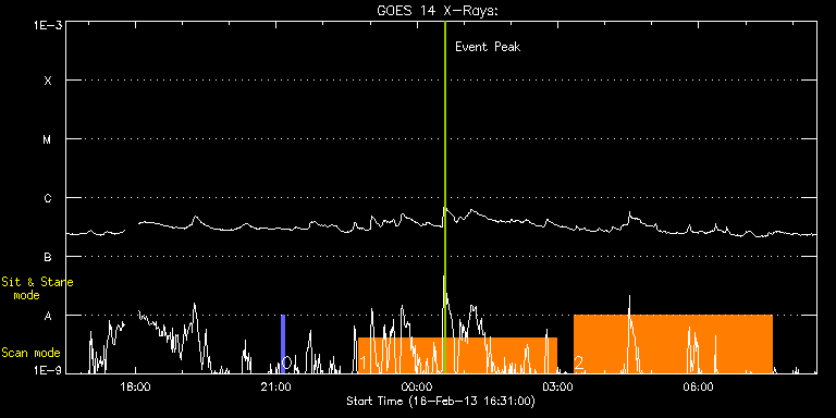 EIS Observation timeline overlay to GOES-Xray curve Code 1" 2" 40" 266" EIS Observations list for this event: STUDY ACRONYM ID DATE OBSERVED DESCRIPTION NOAA# TARGET 0 PRY_slot_context_v3 | 32059 | 2013/02/16 21:07:07 | HOP217 Formation of photospheric netwo | 1672 | Active Region TIMELINE ID DATE OBSERVED FITS FILE XCEN (+W/-E) YCEN (+N/-S) DUR ----------------------------------------------------------------------------------------------------------------- 32059 | 2013/02/16 21:07:07.000 | eis_l0_20130216_210707.fits.gz | 125.53 | 8.85 | 2m56s 1 YKK_EqCHab_01W | 32060 | 2013/02/16 22:45:05 | HOP217 Formation of photospheric netwo | | Coronal Hole TIMELINE ID DATE OBSERVED FITS FILE XCEN (+W/-E) YCEN (+N/-S) DUR ----------------------------------------------------------------------------------------------------------------- 32060 | 2013/02/16 22:45:05.000 | eis_l0_20130216_224505.fits.gz | 155.49 | 8.62 | 4h12m48s 2 YKK_EqCHab_01W | 32061 | 2013/02/17 03:20:34 | HOP217 Formation of photospheric netwo | | Coronal Hole TIMELINE ID DATE OBSERVED FITS FILE XCEN (+W/-E) YCEN (+N/-S) DUR ----------------------------------------------------------------------------------------------------------------- 32061 | 2013/02/17 03:20:34.000 | eis_l0_20130217_032034.fits.gz | 197.82 | 7.92 | 4h12m45s : Check study information : Download file : View thumbnails For this event, also check for: