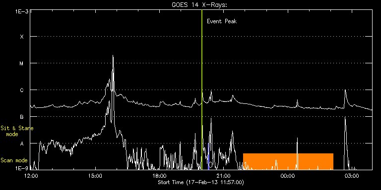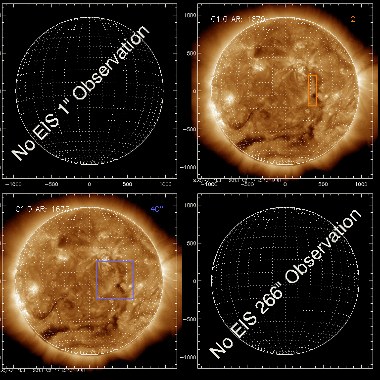 EIS Observation timeline overlay to GOES-Xray curve Code 1" 2" 40" 266" EIS Observations list for this event: STUDY ACRONYM ID DATE OBSERVED DESCRIPTION NOAA# TARGET 0 PRY_slot_context_v3 | 32063 | 2013/02/17 20:16:36 | HOP217 Formation of photospheric netwo | 1672 | Active Region TIMELINE ID DATE OBSERVED FITS FILE XCEN (+W/-E) YCEN (+N/-S) DUR ----------------------------------------------------------------------------------------------------------------- 32063 | 2013/02/17 20:16:36.000 | eis_l0_20130217_201636.fits.gz | 335.18 | 2.74 | 2m56s 1 YKK_EqCHab_01W | 32064 | 2013/02/17 21:54:35 | HOP217 Formation of photospheric netwo | | Coronal Hole TIMELINE ID DATE OBSERVED FITS FILE XCEN (+W/-E) YCEN (+N/-S) DUR ----------------------------------------------------------------------------------------------------------------- 32064 | 2013/02/17 21:54:35.000 | eis_l0_20130217_215435.fits.gz | 364.21 | 2.28 | 4h12m46s : Check study information : Download file : View thumbnails For this event, also check for: