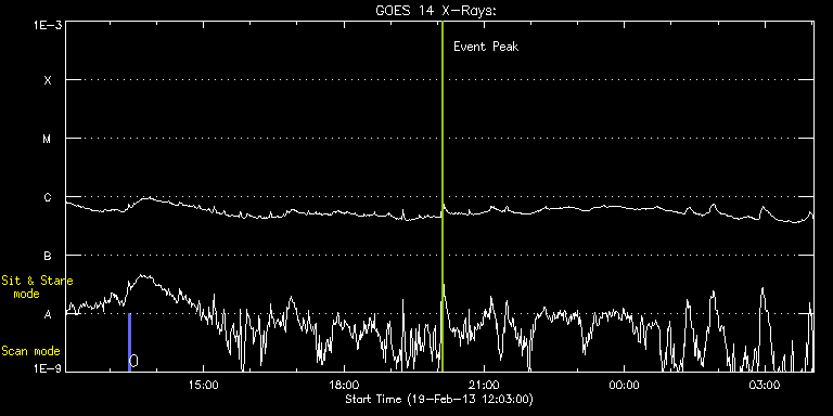 EIS Observation timeline overlay to GOES-Xray curve Code 1" 2" 40" 266" EIS Observations list for this event: STUDY ACRONYM ID DATE OBSERVED DESCRIPTION NOAA# TARGET 0 PRY_slot_context_v3 | 32131 | 2013/02/19 13:24:04 | Flare watch AR 11675 | 1675 | Active Region TIMELINE ID DATE OBSERVED FITS FILE XCEN (+W/-E) YCEN (+N/-S) DUR ----------------------------------------------------------------------------------------------------------------- 32131 | 2013/02/19 13:24:04.000 | eis_l0_20130219_132404.fits.gz | 2.55 | 303.78 | 2m56s : Check study information : Download file : View thumbnails For this event, also check for: