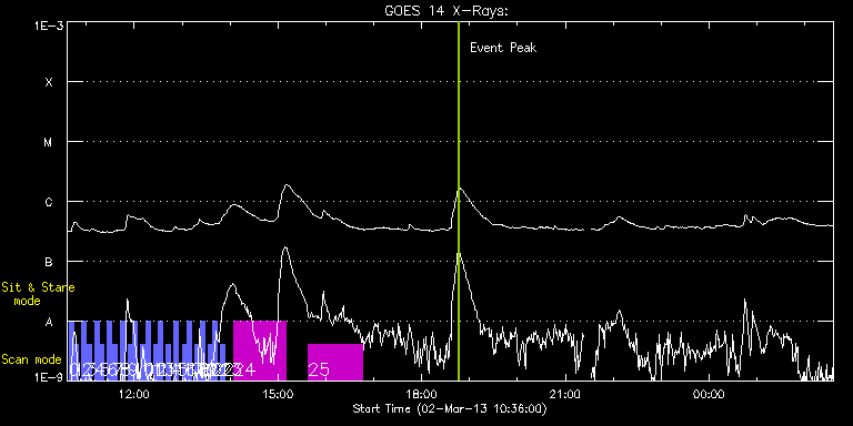 EIS Observation timeline overlay to GOES-Xray curve Code 1" 2" 40" 266" EIS Observations list for this event: STUDY ACRONYM ID DATE OBSERVED DESCRIPTION NOAA# TARGET 0 full_sun_slot_scan_1 | 32272 | 2013/03/02 10:38:14 | HOP130 2/15t | | Quiet Sun TIMELINE ID DATE OBSERVED FITS FILE XCEN (+W/-E) YCEN (+N/-S) DUR ----------------------------------------------------------------------------------------------------------------- 32272 | 2013/03/02 10:38:14.000 | eis_l0_20130302_103814.fits.gz | 452.68 | 185.50 | 5m27s 1 full_sun_slot_scan_1 | 32273 | 2013/03/02 10:44:29 | HOP130 2/15b | 1682 | Quiet Sun TIMELINE ID DATE OBSERVED FITS FILE XCEN (+W/-E) YCEN (+N/-S) DUR ----------------------------------------------------------------------------------------------------------------- 32273 | 2013/03/02 10:44:29.000 | eis_l0_20130302_104429.fits.gz | 452.60 | -286.27 | 5m27s 2 full_sun_slot_scan_1 | 32274 | 2013/03/02 10:54:14 | HOP130 3/15t | 1681 | Quiet Sun TIMELINE ID DATE OBSERVED FITS FILE XCEN (+W/-E) YCEN (+N/-S) DUR ----------------------------------------------------------------------------------------------------------------- 32274 | 2013/03/02 10:54:14.000 | eis_l0_20130302_105414.fits.gz | -15.29 | 185.50 | 5m27s 3 full_sun_slot_scan_1 | 32275 | 2013/03/02 11:00:29 | HOP130 3/15b | 1680 | Quiet Sun TIMELINE ID DATE OBSERVED FITS FILE XCEN (+W/-E) YCEN (+N/-S) DUR ----------------------------------------------------------------------------------------------------------------- 32275 | 2013/03/02 11:00:29.000 | eis_l0_20130302_110029.fits.gz | -15.29 | -286.42 | 5m27s 4 full_sun_slot_scan_1 | 32276 | 2013/03/02 11:10:14 | HOP130 4/15t | | Quiet Sun TIMELINE ID DATE OBSERVED FITS FILE XCEN (+W/-E) YCEN (+N/-S) DUR ----------------------------------------------------------------------------------------------------------------- 32276 | 2013/03/02 11:10:14.000 | eis_l0_20130302_111014.fits.gz | -483.26 | 185.42 | 5m27s 5 full_sun_slot_scan_1 | 32277 | 2013/03/02 11:16:29 | HOP130 4/15b | 1683 | Quiet Sun TIMELINE ID DATE OBSERVED FITS FILE XCEN (+W/-E) YCEN (+N/-S) DUR ----------------------------------------------------------------------------------------------------------------- 32277 | 2013/03/02 11:16:29.000 | eis_l0_20130302_111629.fits.gz | -483.26 | -286.50 | 5m26s 6 full_sun_slot_scan_1 | 32278 | 2013/03/02 11:26:14 | HOP130 5/15t | | Quiet Sun TIMELINE ID DATE OBSERVED FITS FILE XCEN (+W/-E) YCEN (+N/-S) DUR ----------------------------------------------------------------------------------------------------------------- 32278 | 2013/03/02 11:26:14.000 | eis_l0_20130302_112614.fits.gz | -9884.69 | -9777.20 | 5m27s 7 full_sun_slot_scan_1 | 32279 | 2013/03/02 11:32:29 | HOP130 5/15b | | Quiet Sun TIMELINE ID DATE OBSERVED FITS FILE XCEN (+W/-E) YCEN (+N/-S) DUR ----------------------------------------------------------------------------------------------------------------- 32279 | 2013/03/02 11:32:29.000 | eis_l0_20130302_113229.fits.gz | -9884.69 | -10249.20 | 5m26s 8 full_sun_slot_scan_1 | 32280 | 2013/03/02 11:42:14 | HOP130 6/15 | | Quiet Sun TIMELINE ID DATE OBSERVED FITS FILE XCEN (+W/-E) YCEN (+N/-S) DUR ----------------------------------------------------------------------------------------------------------------- 32280 | 2013/03/02 11:42:14.000 | eis_l0_20130302_114214.fits.gz | 751.08 | 655.55 | 5m27s 9 full_sun_slot_scan_1 | 32281 | 2013/03/02 11:52:14 | HOP130 7/15t | | Quiet Sun TIMELINE ID DATE OBSERVED FITS FILE XCEN (+W/-E) YCEN (+N/-S) DUR ----------------------------------------------------------------------------------------------------------------- 32281 | 2013/03/02 11:52:14.000 | eis_l0_20130302_115214.fits.gz | 395.90 | 1032.60 | 5m27s 10 full_sun_slot_scan_1 | 32282 | 2013/03/02 11:58:29 | HOP130 7/15b | | Quiet Sun TIMELINE ID DATE OBSERVED FITS FILE XCEN (+W/-E) YCEN (+N/-S) DUR ----------------------------------------------------------------------------------------------------------------- 32282 | 2013/03/02 11:58:29.000 | eis_l0_20130302_115829.fits.gz | 395.90 | 560.52 | 5m27s 11 full_sun_slot_scan_1 | 32283 | 2013/03/02 12:08:14 | HOP130 8/15t | | Quiet Sun TIMELINE ID DATE OBSERVED FITS FILE XCEN (+W/-E) YCEN (+N/-S) DUR ----------------------------------------------------------------------------------------------------------------- 32283 | 2013/03/02 12:08:14.000 | eis_l0_20130302_120814.fits.gz | -15.21 | 1126.61 | 5m27s 12 full_sun_slot_scan_1 | 32284 | 2013/03/02 12:14:29 | HOP130 8/15b | 1684 | Quiet Sun TIMELINE ID DATE OBSERVED FITS FILE XCEN (+W/-E) YCEN (+N/-S) DUR ----------------------------------------------------------------------------------------------------------------- 32284 | 2013/03/02 12:14:29.000 | eis_l0_20130302_121429.fits.gz | -15.21 | 654.45 | 5m26s 13 full_sun_slot_scan_1 | 32285 | 2013/03/02 12:24:14 | HOP130 9/15t | | Quiet Sun TIMELINE ID DATE OBSERVED FITS FILE XCEN (+W/-E) YCEN (+N/-S) DUR ----------------------------------------------------------------------------------------------------------------- 32285 | 2013/03/02 12:24:14.000 | eis_l0_20130302_122414.fits.gz | -426.40 | 1032.52 | 5m27s 14 full_sun_slot_scan_1 | 32286 | 2013/03/02 12:30:29 | HOP130 9/15b | 1684 | Quiet Sun TIMELINE ID DATE OBSERVED FITS FILE XCEN (+W/-E) YCEN (+N/-S) DUR ----------------------------------------------------------------------------------------------------------------- 32286 | 2013/03/02 12:30:29.000 | eis_l0_20130302_123029.fits.gz | -426.32 | 560.52 | 5m26s 15 full_sun_slot_scan_1 | 32287 | 2013/03/02 12:40:14 | HOP130 10/15 | | Quiet Sun TIMELINE ID DATE OBSERVED FITS FILE XCEN (+W/-E) YCEN (+N/-S) DUR ----------------------------------------------------------------------------------------------------------------- 32287 | 2013/03/02 12:40:14.000 | eis_l0_20130302_124014.fits.gz | -830.08 | 655.55 | 5m27s 16 full_sun_slot_scan_1 | 32288 | 2013/03/02 12:50:14 | HOP130 11/15 | | Quiet Sun TIMELINE ID DATE OBSERVED FITS FILE XCEN (+W/-E)