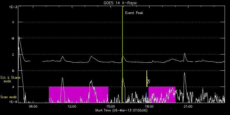 EIS Observation timeline overlay to GOES-Xray curve Code 1" 2" 40" 266" EIS Observations list for this event: STUDY ACRONYM ID DATE OBSERVED DESCRIPTION NOAA# TARGET 0 SK_CH_DIAG_320x384 | 32337 | 2013/03/05 10:13:24 | HOP81-day3 | | Coronal Hole TIMELINE ID DATE OBSERVED FITS FILE XCEN (+W/-E) YCEN (+N/-S) DUR ----------------------------------------------------------------------------------------------------------------- 32337 | 2013/03/05 10:13:24.000 | eis_l0_20130305_101324.fits.gz | -14.88 | 882.52 | 4h35m37s 1 PRY_slot_contextLITE | 32338 | 2013/03/05 17:43:34 | EIS AIA alignment | 1683 | Active Region TIMELINE ID DATE OBSERVED FITS FILE XCEN (+W/-E) YCEN (+N/-S) DUR ----------------------------------------------------------------------------------------------------------------- 32338 | 2013/03/05 17:43:34.000 | eis_l0_20130305_174334.fits.gz | -15.21 | -0.58 | 2m56s 2 Alignment_266 | 32339 | 2013/03/05 17:47:01 | EIS AIA alignment | 1683 | Quiet Sun TIMELINE ID DATE OBSERVED FITS FILE XCEN (+W/-E) YCEN (+N/-S) DUR ----------------------------------------------------------------------------------------------------------------- 32339 | 2013/03/05 17:47:01.000 | eis_l0_20130305_174701.fits.gz | -132.41 | -0.50 | 1m22s 3 XRT_synop_AIA | 32340 | 2013/03/05 17:49:28 | EIS AIA alignment | 1683 | Quiet Sun TIMELINE ID DATE OBSERVED FITS FILE XCEN (+W/-E) YCEN (+N/-S) DUR ----------------------------------------------------------------------------------------------------------------- 32340 | 2013/03/05 17:49:28.000 | eis_l0_20130305_174928.fits.gz | -132.49 | -0.50 | 10s 4 HPW021_VEL_240x512v1 | 32341 | 2013/03/05 17:56:34 | previous AR 11654 | 1687 | Active Region TIMELINE ID DATE OBSERVED FITS FILE XCEN (+W/-E) YCEN (+N/-S) DUR ----------------------------------------------------------------------------------------------------------------- 32341 | 2013/03/05 17:56:34.000 | eis_l0_20130305_175634.fits.gz | -624.03 | 241.83 | 2h3m46s : Check study information : Download file : View thumbnails For this event, also check for:
