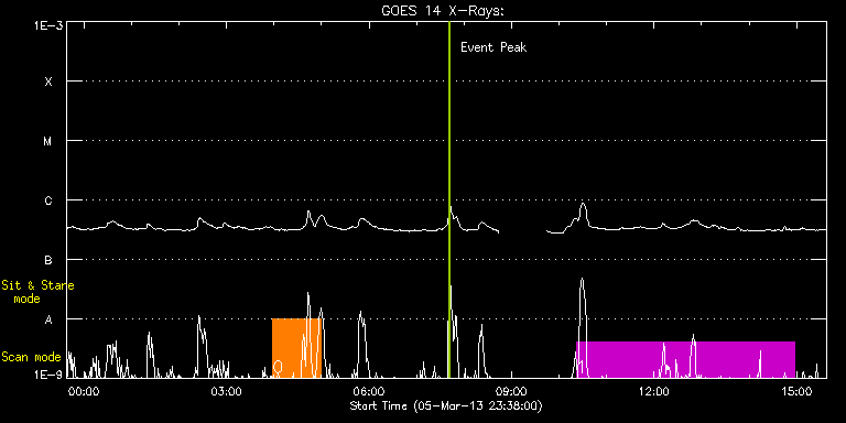EIS Observation timeline overlay to GOES-Xray curve Code 1" 2" 40" 266" EIS Observations list for this event: STUDY ACRONYM ID DATE OBSERVED DESCRIPTION NOAA# TARGET 0 Atlas_60 | 32352 | 2013/03/06 03:58:13 | EIS spectral atlas (AR) | 1683 | Quiet Sun TIMELINE ID DATE OBSERVED FITS FILE XCEN (+W/-E) YCEN (+N/-S) DUR ----------------------------------------------------------------------------------------------------------------- 32352 | 2013/03/06 03:58:13.000 | eis_l0_20130306_035813.fits.gz | -52.34 | -110.59 | 1h1m40s 1 SK_CH_DIAG_320x384 | 32342 | 2013/03/06 10:21:56 | HOP81-day1 | | Coronal Hole TIMELINE ID DATE OBSERVED FITS FILE XCEN (+W/-E) YCEN (+N/-S) DUR ----------------------------------------------------------------------------------------------------------------- 32342 | 2013/03/06 10:21:56.000 | eis_l0_20130306_102156.fits.gz | -14.88 | -957.44 | 4h35m38s : Check study information : Download file : View thumbnails For this event, also check for: