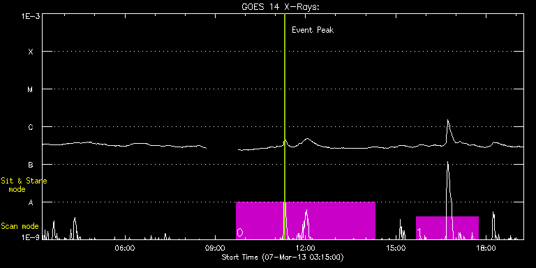 EIS Observation timeline overlay to GOES-Xray curve Code 1" 2" 40" 266" EIS Observations list for this event: STUDY ACRONYM ID DATE OBSERVED DESCRIPTION NOAA# TARGET 0 SK_CH_DIAG_320x384 | 32357 | 2013/03/07 09:42:28 | HOP206 (South Pole) | | Coronal Hole TIMELINE ID DATE OBSERVED FITS FILE XCEN (+W/-E) YCEN (+N/-S) DUR ----------------------------------------------------------------------------------------------------------------- 32357 | 2013/03/07 09:42:28.000 | eis_l0_20130307_094228.fits.gz | -14.88 | -937.59 | 4h35m37s 1 HPW021_VEL_240x512v1 | 32358 | 2013/03/07 15:40:40 | previously AR 11654 obs | 1687 | Active Region TIMELINE ID DATE OBSERVED FITS FILE XCEN (+W/-E) YCEN (+N/-S) DUR ----------------------------------------------------------------------------------------------------------------- 32358 | 2013/03/07 15:40:40.000 | eis_l0_20130307_154040.fits.gz | -251.84 | 271.80 | 2h3m48s : Check study information : Download file : View thumbnails For this event, also check for: