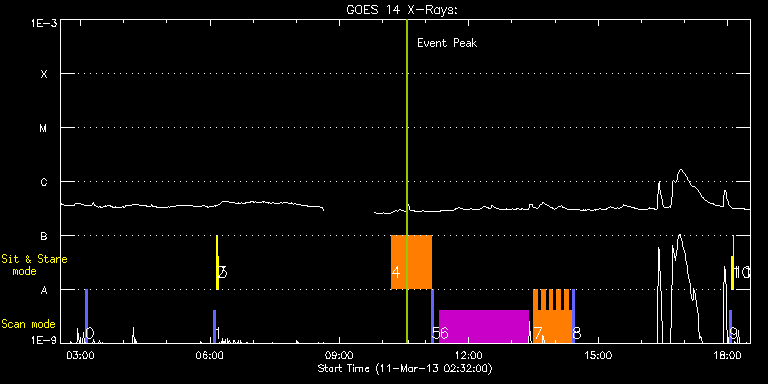 EIS Observation timeline overlay to GOES-Xray curve Code 1" 2" 40" 266" EIS Observations list for this event: STUDY ACRONYM ID DATE OBSERVED DESCRIPTION NOAA# TARGET 0 PRY_slot_contextLITE | 32410 | 2013/03/11 03:06:35 | AR Obs | 1690 | Active Region TIMELINE ID DATE OBSERVED FITS FILE XCEN (+W/-E) YCEN (+N/-S) DUR ----------------------------------------------------------------------------------------------------------------- 32410 | 2013/03/11 03:06:35.000 | eis_l0_20130311_030635.fits.gz | -300.41 | 297.44 | 2m56s 1 PRY_slot_contextLITE | 32380 | 2013/03/11 06:05:09 | Context EIS AIA alignment | 1689 | Active Region TIMELINE ID DATE OBSERVED FITS FILE XCEN (+W/-E) YCEN (+N/-S) DUR ----------------------------------------------------------------------------------------------------------------- 32380 | 2013/03/11 06:05:09.000 | eis_l0_20130311_060509.fits.gz | -15.14 | -0.42 | 2m57s 2 Alignment_266 | 32381 | 2013/03/11 06:08:36 | EIS AIA alignment | | Quiet Sun TIMELINE ID DATE OBSERVED FITS FILE XCEN (+W/-E) YCEN (+N/-S) DUR ----------------------------------------------------------------------------------------------------------------- 32381 | 2013/03/11 06:08:36.000 | eis_l0_20130311_060836.fits.gz | -132.57 | -0.50 | 1m22s 3 XRT_synop_AIA | 32382 | 2013/03/11 06:11:07 | EIS AIA alignment | | Quiet Sun TIMELINE ID DATE OBSERVED FITS FILE XCEN (+W/-E) YCEN (+N/-S) DUR ----------------------------------------------------------------------------------------------------------------- 32382 | 2013/03/11 06:11:07.000 | eis_l0_20130311_061107.fits.gz | -132.57 | -0.42 | 10s 4 FLAREDOP_EIS | 32407 | 2013/03/11 10:12:19 | AR Obs | | Flare TIMELINE ID DATE OBSERVED FITS FILE XCEN (+W/-E) YCEN (+N/-S) DUR ----------------------------------------------------------------------------------------------------------------- 32407 | 2013/03/11 10:12:19.000 | eis_l0_20130311_101219.fits.gz | -222.95 | 299.53 | 55m51s 5 PRY_slot_contextLITE | 32408 | 2013/03/11 11:08:21 | AR Obs | 1690 | Active Region TIMELINE ID DATE OBSERVED FITS FILE XCEN (+W/-E) YCEN (+N/-S) DUR ----------------------------------------------------------------------------------------------------------------- 32408 | 2013/03/11 11:08:21.000 | eis_l0_20130311_110821.fits.gz | -229.27 | 299.61 | 2m56s 6 HPW021_VEL_240x512v1 | 32418 | 2013/03/11 11:19:19 | limb to limb AR Obs | 1690 | Active Region TIMELINE ID DATE OBSERVED FITS FILE XCEN (+W/-E) YCEN (+N/-S) DUR ----------------------------------------------------------------------------------------------------------------- 32418 | 2013/03/11 11:19:19.000 | eis_l0_20130311_111919.fits.gz | -212.59 | 299.68 | 2h3m47s 7 HH_Flare+AR_180x152 | 32427 | 2013/03/11 13:30:25 | AR Obs | 1691 | Flare TIMELINE ID DATE OBSERVED FITS FILE XCEN (+W/-E) YCEN (+N/-S) DUR ----------------------------------------------------------------------------------------------------------------- 32427 | 2013/03/11 13:30:25.000 | eis_l0_20130311_133025.fits.gz | -195.03 | 300.38 | 5m18s 32427 | 2013/03/11 13:35:46.000 | eis_l0_20130311_133546.fits.gz | -194.26 | 300.46 | 5m18s 32427 | 2013/03/11 13:41:07.000 | eis_l0_20130311_134107.fits.gz | -193.41 | 300.38 | 5m18s 32427 | 2013/03/11 13:46:28.000 | eis_l0_20130311_134628.fits.gz | -192.56 | 300.30 | 5m17s 32427 | 2013/03/11 13:51:48.000 | eis_l0_20130311_135148.fits.gz | -191.86 | 300.53 | 5m18s 32427 | 2013/03/11 13:57:09.000 | eis_l0_20130311_135709.fits.gz | -191.01 | 300.46 | 5m18s 32427 | 2013/03/11 14:02:30.000 | eis_l0_20130311_140230.fits.gz | -190.16 | 300.46 | 5m18s 32427 | 2013/03/11 14:07:51.000 | eis_l0_20130311_140751.fits.gz | -189.47 | 300.46 | 5m18s 32427 | 2013/03/11 14:13:12.000 | eis_l0_20130311_141312.fits.gz | -188.54 | 300.53 | 5m18s 32427 | 2013/03/11 14:18:33.000 | eis_l0_20130311_141833.fits.gz | -187.85 | 300.61 | 5m18s 8 PRY_slot_contextLITE | 32428 | 2013/03/11 14:24:02 | AR Obs | 1690 | Active Region TIMELINE ID DATE OBSERVED FITS FILE XCEN (+W/-E) YCEN (+N/-S) DUR ----------------------------------------------------------------------------------------------------------------- 32428 | 2013/03/11 14:24:02.000 | eis_l0_20130311_142402.fits.gz | -199.99 | 300.53 | 2m57s 9 PRY_slot_contextLITE | 32383 | 2013/03/11 18:02:12 | Context EIS AIA alignment | 1689 | Active Region TIMELINE ID DATE OBSERVED FITS FILE XCEN (+W/-E) YCEN (+N/-S) DUR ----------------------------------------------------------------------------------------------------------------- 32383 | 2013/03/11 18:02:12.000 | eis_l0_20130311_180212.fits.gz | -15.14 | -0.50 | 2m56s 10 Alignment_266 | 32384 | 2013/03/11 18:06:05 | EIS AIA alignment | | Quiet Sun TIMELINE ID DATE OBSERVED FITS FILE XCEN (+W/-E) YCEN (+N/-S) DUR ----------------------------------------------------------------------------------------------------------------- 32384 | 2013/03/11 18:06:05.000 | eis_l0_20130311_180605.fits.gz | -132.49 | -0.50 | 1m22s 11 XRT_synop_AIA | 32385 | 2013/03/11 18:08:37 | EIS AIA alignment | | Quiet Sun TIMELINE ID DATE OBSERVED FITS FILE XCEN (+W/-E) YCEN (+N/-S) DUR ----------------------------------------------------------------------------------------------------------------- 32385 | 2013/03/11 18:08:37.000 | eis_l0_20130311_180837.fits.gz | -132.49 | -0.42 | 10s : Check study information : Download file : View thumbnails For this event, also check for: