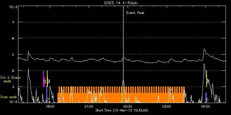 EIS Observation timeline overlay to GOES-Xray curve Code 1" 2" 40" 266" EIS Observations list for this event: STUDY ACRONYM ID DATE OBSERVED DESCRIPTION NOAA# TARGET 0 regcal071 | 32454 | 2013/03/13 17:28:14 | Dark exposures, CCD bottom rows (100s | | Engineering TIMELINE ID DATE OBSERVED FITS FILE XCEN (+W/-E) YCEN (+N/-S) DUR ----------------------------------------------------------------------------------------------------------------- 32454 | 2013/03/13 17:28:14.000 | eis_l0_20130313_172814.fits.gz | 317.09 | 4.96 | 3m22s 1 regcal072 | 32455 | 2013/03/13 17:32:03 | Dark exposures, top CCD rows (100s exp | | Engineering TIMELINE ID DATE OBSERVED FITS FILE XCEN (+W/-E) YCEN (+N/-S) DUR ----------------------------------------------------------------------------------------------------------------- 32455 | 2013/03/13 17:32:03.000 | eis_l0_20130313_173203.fits.gz | 317.71 | 515.80 | 3m22s 2 PRY_slot_contextLITE | 32448 | 2013/03/13 17:43:40 | EIS/AIA alignment studies | 1696 | Active Region TIMELINE ID DATE OBSERVED FITS FILE XCEN (+W/-E) YCEN (+N/-S) DUR ----------------------------------------------------------------------------------------------------------------- 32448 | 2013/03/13 17:43:40.000 | eis_l0_20130313_174340.fits.gz | -15.14 | -0.42 | 2m56s 3 Alignment_266 | 32449 | 2013/03/13 17:46:54 | EIS/AIA alignment studies | 1696 | Quiet Sun TIMELINE ID DATE OBSERVED FITS FILE XCEN (+W/-E) YCEN (+N/-S) DUR ----------------------------------------------------------------------------------------------------------------- 32449 | 2013/03/13 17:46:54.000 | eis_l0_20130313_174654.fits.gz | -132.41 | -0.42 | 1m22s 4 XRT_synop_AIA | 32450 | 2013/03/13 17:49:01 | EIS/AIA alignment studies | 1696 | Quiet Sun TIMELINE ID DATE OBSERVED FITS FILE XCEN (+W/-E) YCEN (+N/-S) DUR ----------------------------------------------------------------------------------------------------------------- 32450 | 2013/03/13 17:49:01.000 | eis_l0_20130313_174901.fits.gz | -132.41 | -0.50 | 10s 5 HH_Flare+AR_180x152 | 32458 | 2013/03/13 18:34:55 | AR 11691 observations | 1691 | Flare TIMELINE ID DATE OBSERVED FITS FILE XCEN (+W/-E) YCEN (+N/-S) DUR ----------------------------------------------------------------------------------------------------------------- 32458 | 2013/03/13 18:34:55.000 | eis_l0_20130313_183455.fits.gz | 309.94 | 309.42 | 5m18s 32458 | 2013/03/13 18:40:16.000 | eis_l0_20130313_184016.fits.gz | 310.63 | 309.26 | 5m17s 32458 | 2013/03/13 18:45:36.000 | eis_l0_20130313_184536.fits.gz | 311.40 | 309.42 | 5m18s 32458 | 2013/03/13 18:50:57.000 | eis_l0_20130313_185057.fits.gz | 312.25 | 309.26 | 5m17s 32458 | 2013/03/13 18:56:17.000 | eis_l0_20130313_185617.fits.gz | 313.03 | 309.34 | 5m18s 32458 | 2013/03/13 19:01:38.000 | eis_l0_20130313_190138.fits.gz | 313.72 | 309.19 | 5m18s 32458 | 2013/03/13 19:06:59.000 | eis_l0_20130313_190659.fits.gz | 314.49 | 309.19 | 5m18s 32458 | 2013/03/13 19:12:20.000 | eis_l0_20130313_191220.fits.gz | 315.34 | 309.26 | 5m18s 32458 | 2013/03/13 19:17:41.000 | eis_l0_20130313_191741.fits.gz | 316.04 | 309.26 | 5m18s 32458 | 2013/03/13 19:23:02.000 | eis_l0_20130313_192302.fits.gz | 316.89 | 308.95 | 5m17s 32458 | 2013/03/13 19:28:22.000 | eis_l0_20130313_192822.fits.gz | 317.58 | 309.11 | 5m18s 32458 | 2013/03/13 19:33:43.000 | eis_l0_20130313_193343.fits.gz | 318.36 | 309.11 | 5m17s 32458 | 2013/03/13 19:39:03.000 | eis_l0_20130313_193903.fits.gz | 319.05 | 309.11 | 5m19s 32458 | 2013/03/13 19:44:24.000 | eis_l0_20130313_194424.fits.gz | 319.90 | 309.03 | 5m18s 32458 | 2013/03/13 19:49:45.000 | eis_l0_20130313_194945.fits.gz | 320.67 | 308.95 | 5m18s 32458 | 2013/03/13 19:55:06.000 | eis_l0_20130313_195506.fits.gz | 321.45 | 308.95 | 5m18s 32458 | 2013/03/13 20:00:27.000 | eis_l0_20130313_200027.fits.gz | 322.14 | 308.95 | 5m17s 32458 | 2013/03/13 20:05:47.000 | eis_l0_20130313_200547.fits.gz | 322.99 | 308.88 | 5m18s 32458 | 2013/03/13 20:11:07.000 | eis_l0_20130313_201107.fits.gz | 323.69 | 308.88 | 5m18s 32458 | 2013/03/13 20:16:28.000 | eis_l0_20130313_201628.fits.gz | 324.46 | 308.80 | 5m17s 32458 | 2013/03/13 20:21:48.000 | eis_l0_20130313_202148.fits.gz | 325.23 | 308.72 | 5m18s 32458 | 2013/03/13 20:27:08.000 | eis_l0_20130313_202708.fits.gz | 326.00 | 308.64 | 5m18s 32458 | 2013/03/13 20:32:29.000 | eis_l0_20130313_203229.fits.gz | 326.85 | 308.72 | 5m18s 32458 | 2013/03/13 20:37:50.000 | eis_l0_20130313_203750.fits.gz | 327.47 | 308.57 | 5m19s 32458 | 2013/03/13 20:43:12.000 | eis_l0_20130313_204312.fits.gz | 328.32 | 308.57 | 5m18s 32458 | 2013/03/13 20:48:33.000 | eis_l0_20130313_204833.fits.gz | 329.09 | 308.49 | 5m18s 32458 | 2013/03/13 20:53:53.000 | eis_l0_20130313_205353.fits.gz | 329.87 | 308.41 | 5m18s 32458 | 2013/03/13 20:59:14.000 | eis_l0_20130313_205914.fits.gz | 330.56 | 308.49 | 5m18s 32458 | 2013/03/13 21:04:35.000 | eis_l0_20130313_210435.fits.gz | 331.33 | 308.34 | 5m17s 32458 | 2013/03/13 21:09:55.000 | eis_l0_20130313_210955.fits.gz | 332.18 | 308.26 | 5m18s 32458 | 2013/03/13 21:15:15.000 | eis_l0_20130313_211515.fits.gz | 332.88 | 308.34 | 5m19s 32458 | 2013/03/13 21:20:37.000 | eis_l0_20130313_212037.fits.gz | 333.65 | 308.34 | 5m17s 32458 | 2013/03/13 21:25:57.000 | eis_l0_20130313_212557.fits.gz | 334.42 | 308.26 | 5m18s 32458 | 2013/03/13 21:31:18.000 | eis_l0_20130313_213118.fits.gz | 335.20 | 308.26 | 5m18s 32458 | 2013/03/13 21:36:39.000 | eis_l0_20130313_213639.fits.gz | 335.89 | 308.26 | 5m17s 32458 | 2013/03/13 21:41:59.000 | eis_l0_20130313_214159.fits.gz | 336.67 | 308.10 | 5m18s 32458 | 2013/03/13 21:47:20.000 | eis_l0_20130313_214720.fits.gz | 337.44 | 308.26 | 5m18s 32458 | 2013/03/13 21:52:41.000 | eis_l0_20130313_215241.fits.gz | 338.21 | 308.03 | 5m18s 32458 | 2013/03/13 21:58:02.000 | eis_l0_20130313_215802.fits.gz | 338.90 | 308.10 | 5m18s 32458 | 2013/03/13 22:03:23.000 | eis_l0_20130313_220323.fits.gz | 339.76 | 308.03 | 5m18s 32458 | 2013/03/13 22:08:44.000 | eis_l0_20130313_220844.fits.gz | 340.45 | 308.03 | 5