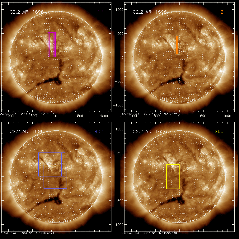 EIS Observation timeline overlay to GOES-Xray curve Code 1" 2" 40" 266" EIS Observations list for this event: STUDY ACRONYM ID DATE OBSERVED DESCRIPTION NOAA# TARGET 0 PRY_slot_contextLITE | 32467 | 2013/03/15 06:21:40 | EIS/AIA alignment synoptic obs | 1696 | Active Region TIMELINE ID DATE OBSERVED FITS FILE XCEN (+W/-E) YCEN (+N/-S) DUR ----------------------------------------------------------------------------------------------------------------- 32467 | 2013/03/15 06:21:40.000 | eis_l0_20130315_062140.fits.gz | -15.14 | -0.42 | 2m56s 1 Alignment_266 | 32468 | 2013/03/15 06:24:55 | EIS/AIA synoptic obs | | Quiet Sun TIMELINE ID DATE OBSERVED FITS FILE XCEN (+W/-E) YCEN (+N/-S) DUR ----------------------------------------------------------------------------------------------------------------- 32468 | 2013/03/15 06:24:55.000 | eis_l0_20130315_062455.fits.gz | -132.49 | -0.50 | 1m22s 2 XRT_synop_AIA | 32469 | 2013/03/15 06:27:02 | EIS/AIA synoptic obs | | Quiet Sun TIMELINE ID DATE OBSERVED FITS FILE XCEN (+W/-E) YCEN (+N/-S) DUR ----------------------------------------------------------------------------------------------------------------- 32469 | 2013/03/15 06:27:02.000 | eis_l0_20130315_062702.fits.gz | -132.49 | -0.50 | 10s 3 PRY_slot_contextLITE | 32485 | 2013/03/15 09:30:55 | Obs of returning AR complex (AR11692) | 1692 | Active Region TIMELINE ID DATE OBSERVED FITS FILE XCEN (+W/-E) YCEN (+N/-S) DUR ----------------------------------------------------------------------------------------------------------------- 32485 | 2013/03/15 09:30:55.000 | eis_l0_20130315_093055.fits.gz | -126.60 | 255.11 | 2m56s 4 HPW021_VEL_240x512v1 | 32486 | 2013/03/15 09:34:02 | Obs of returning AR complex (AR11692) | 1692 | Active Region TIMELINE ID DATE OBSERVED FITS FILE XCEN (+W/-E) YCEN (+N/-S) DUR ----------------------------------------------------------------------------------------------------------------- 32486 | 2013/03/15 09:34:02.000 | eis_l0_20130315_093402.fits.gz | -111.16 | 255.04 | 2h3m48s 32486 | 2013/03/15 11:37:57.000 | eis_l0_20130315_113757.fits.gz | -91.93 | 255.19 | 2h3m47s 32486 | 2013/03/15 13:41:50.000 | eis_l0_20130315_134150.fits.gz | -72.93 | 255.34 | 2h3m47s 5 IUU_SCAN_STEPS_002 | 32487 | 2013/03/15 16:34:33 | Obs of returning AR complex (AR11692) | | Active Region TIMELINE ID DATE OBSERVED FITS FILE XCEN (+W/-E) YCEN (+N/-S) DUR ----------------------------------------------------------------------------------------------------------------- 32487 | 2013/03/15 16:34:33.000 | eis_l0_20130315_163433.fits.gz | -47.51 | 255.65 | 5m24s 32487 | 2013/03/15 16:40:00.000 | eis_l0_20130315_164000.fits.gz | -46.66 | 255.65 | 5m24s 32487 | 2013/03/15 16:45:27.000 | eis_l0_20130315_164527.fits.gz | -45.81 | 255.42 | 5m23s 32487 | 2013/03/15 16:50:54.000 | eis_l0_20130315_165054.fits.gz | -44.96 | 255.50 | 5m23s 32487 | 2013/03/15 16:56:20.000 | eis_l0_20130315_165620.fits.gz | -44.11 | 255.42 | 5m24s 32487 | 2013/03/15 17:01:47.000 | eis_l0_20130315_170147.fits.gz | -43.34 | 255.50 | 5m23s 32487 | 2013/03/15 17:07:14.000 | eis_l0_20130315_170714.fits.gz | -42.49 | 255.58 | 5m23s 32487 | 2013/03/15 17:12:40.000 | eis_l0_20130315_171240.fits.gz | -41.56 | 255.50 | 5m24s 32487 | 2013/03/15 17:18:07.000 | eis_l0_20130315_171807.fits.gz | -40.87 | 255.50 | 5m24s 6 PRY_slot_contextLITE | 32488 | 2013/03/15 17:23:42 | Obs of returning AR complex (AR11692) | 1692 | Active Region TIMELINE ID DATE OBSERVED FITS FILE XCEN (+W/-E) YCEN (+N/-S) DUR ----------------------------------------------------------------------------------------------------------------- 32488 | 2013/03/15 17:23:42.000 | eis_l0_20130315_172342.fits.gz | -53.68 | 255.42 | 2m56s 7 PRY_slot_contextLITE | 32470 | 2013/03/15 18:08:40 | EIS/AIA alignment synoptic obs | 1696 | Active Region TIMELINE ID DATE OBSERVED FITS FILE XCEN (+W/-E) YCEN (+N/-S) DUR ----------------------------------------------------------------------------------------------------------------- 32470 | 2013/03/15 18:08:40.000 | eis_l0_20130315_180840.fits.gz | -15.21 | -0.58 | 2m56s 8 Alignment_266 | 32471 | 2013/03/15 18:11:55 | EIS/AIA synoptic obs | | Quiet Sun TIMELINE ID DATE OBSERVED FITS FILE XCEN (+W/-E) YCEN (+N/-S) DUR ----------------------------------------------------------------------------------------------------------------- 32471 | 2013/03/15 18:11:55.000 | eis_l0_20130315_181155.fits.gz | -132.49 | -0.58 | 1m22s 9 XRT_synop_AIA | 32472 | 2013/03/15 18:14:02 | EIS/AIA synoptic obs | | Quiet Sun TIMELINE ID DATE OBSERVED FITS FILE XCEN (+W/-E) YCEN (+N/-S) DUR ----------------------------------------------------------------------------------------------------------------- 32472 | 2013/03/15 18:14:02.000 | eis_l0_20130315_181402.fits.gz | -132.57 | -0.42 | 10s : Check study information : Download file : View thumbnails For this event, also check for: