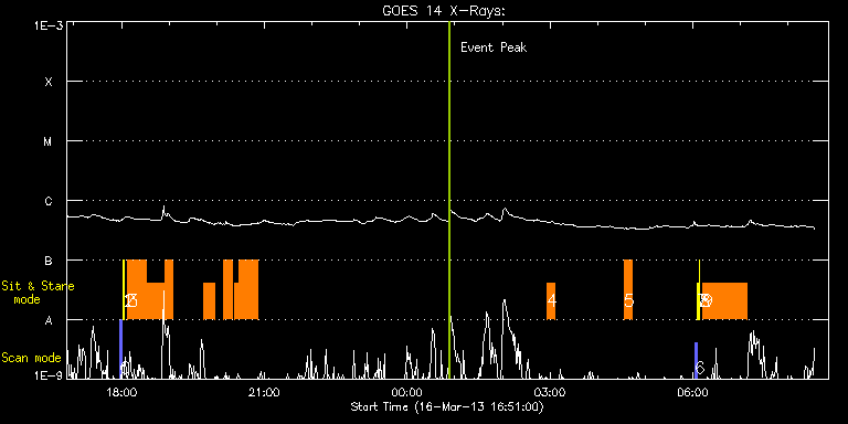 EIS Observation timeline overlay to GOES-Xray curve Code 1" 2" 40" 266" EIS Observations list for this event: STUDY ACRONYM ID DATE OBSERVED DESCRIPTION NOAA# TARGET 0 PRY_slot_contextLITE | 32492 | 2013/03/16 17:57:50 | EIS/AIA alignment synoptic obs | | Active Region TIMELINE ID DATE OBSERVED FITS FILE XCEN (+W/-E) YCEN (+N/-S) DUR ----------------------------------------------------------------------------------------------------------------- 32492 | 2013/03/16 17:57:50.000 | eis_l0_20130316_175750.fits.gz | -15.06 | -0.50 | 2m56s 1 Alignment_266 | 32493 | 2013/03/16 18:01:27 | EIS/AIA synoptic obs | | Quiet Sun TIMELINE ID DATE OBSERVED FITS FILE XCEN (+W/-E) YCEN (+N/-S) DUR ----------------------------------------------------------------------------------------------------------------- 32493 | 2013/03/16 18:01:27.000 | eis_l0_20130316_180127.fits.gz | -132.64 | -0.35 | 1m22s 2 XRT_synop_AIA | 32494 | 2013/03/16 18:03:48 | EIS/AIA synoptic obs | | Quiet Sun TIMELINE ID DATE OBSERVED FITS FILE XCEN (+W/-E) YCEN (+N/-S) DUR ----------------------------------------------------------------------------------------------------------------- 32494 | 2013/03/16 18:03:48.000 | eis_l0_20130316_180348.fits.gz | -132.49 | -0.42 | 10s 3 arm_loop_ne_slit | 32511 | 2013/03/16 18:07:50 | HOP 228 AR 11689/CH west limb observat | | Polar region TIMELINE ID DATE OBSERVED FITS FILE XCEN (+W/-E) YCEN (+N/-S) DUR ----------------------------------------------------------------------------------------------------------------- 32511 | 2013/03/16 18:07:50.000 | eis_l0_20130316_180750.fits.gz | 949.52 | -400.81 | 23m19s 32511 | 2013/03/16 18:31:12.000 | eis_l0_20130316_183112.fits.gz | 949.52 | -400.66 | 23m19s 32511 | 2013/03/16 18:54:35.000 | eis_l0_20130316_185435.fits.gz | 949.52 | -400.66 | 10m5s 32511 | 2013/03/16 19:42:54.000 | eis_l0_20130316_194254.fits.gz | 949.44 | -400.58 | 13m58s 32511 | 2013/03/16 20:08:36.000 | eis_l0_20130316_200836.fits.gz | 949.52 | -400.66 | 11m39s 32511 | 2013/03/16 20:22:36.000 | eis_l0_20130316_202236.fits.gz | 949.52 | -400.66 | 5m25s 32511 | 2013/03/16 20:28:05.000 | eis_l0_20130316_202805.fits.gz | 949.52 | -400.66 | 23m19s 4 EL_WHI_CH_limb | 32519 | 2013/03/17 02:55:47 | HOP 201 - CME watch | | Coronal Hole TIMELINE ID DATE OBSERVED FITS FILE XCEN (+W/-E) YCEN (+N/-S) DUR ----------------------------------------------------------------------------------------------------------------- 32519 | 2013/03/17 02:55:47.000 | eis_l0_20130317_025547.fits.gz | 969.40 | 449.45 | 10m 5 EL_WHI_CH_limb | 32520 | 2013/03/17 04:33:17 | HOP 201 - CME watch | | Coronal Hole TIMELINE ID DATE OBSERVED FITS FILE XCEN (+W/-E) YCEN (+N/-S) DUR ----------------------------------------------------------------------------------------------------------------- 32520 | 2013/03/17 04:33:17.000 | eis_l0_20130317_043317.fits.gz | 969.40 | 449.53 | 10m 6 PRY_slot_contextLITE | 32495 | 2013/03/17 06:02:20 | EIS/AIA alignment synoptic obs | | Active Region TIMELINE ID DATE OBSERVED FITS FILE XCEN (+W/-E) YCEN (+N/-S) DUR ----------------------------------------------------------------------------------------------------------------- 32495 | 2013/03/17 06:02:20.000 | eis_l0_20130317_060220.fits.gz | -15.37 | -0.65 | 2m56s 7 Alignment_266 | 32496 | 2013/03/17 06:05:57 | EIS/AIA synoptic obs | | Quiet Sun TIMELINE ID DATE OBSERVED FITS FILE XCEN (+W/-E) YCEN (+N/-S) DUR ----------------------------------------------------------------------------------------------------------------- 32496 | 2013/03/17 06:05:57.000 | eis_l0_20130317_060557.fits.gz | -132.57 | -0.42 | 1m22s 8 XRT_synop_AIA | 32497 | 2013/03/17 06:08:19 | EIS/AIA synoptic obs | | Quiet Sun TIMELINE ID DATE OBSERVED FITS FILE XCEN (+W/-E) YCEN (+N/-S) DUR ----------------------------------------------------------------------------------------------------------------- 32497 | 2013/03/17 06:08:19.000 | eis_l0_20130317_060819.fits.gz | -132.57 | -0.58 | 10s 9 FLAREDOP_EIS | 32515 | 2013/03/17 06:12:20 | Flare study for AR 11692 | | Flare TIMELINE ID DATE OBSERVED FITS FILE XCEN (+W/-E) YCEN (+N/-S) DUR ----------------------------------------------------------------------------------------------------------------- 32515 | 2013/03/17 06:12:20.000 | eis_l0_20130317_061220.fits.gz | 242.60 | 222.46 | 55m47s : Check study information : Download file : View thumbnails For this event, also check for: