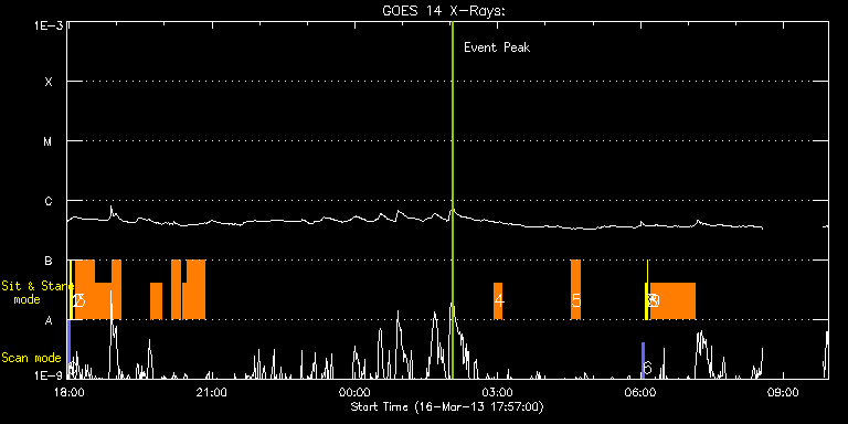EIS Observation timeline overlay to GOES-Xray curve Code 1" 2" 40" 266" EIS Observations list for this event: STUDY ACRONYM ID DATE OBSERVED DESCRIPTION NOAA# TARGET 0 PRY_slot_contextLITE | 32492 | 2013/03/16 17:57:50 | EIS/AIA alignment synoptic obs | | Active Region TIMELINE ID DATE OBSERVED FITS FILE XCEN (+W/-E) YCEN (+N/-S) DUR ----------------------------------------------------------------------------------------------------------------- 32492 | 2013/03/16 17:57:50.000 | eis_l0_20130316_175750.fits.gz | -15.06 | -0.50 | 2m56s 1 Alignment_266 | 32493 | 2013/03/16 18:01:27 | EIS/AIA synoptic obs | | Quiet Sun TIMELINE ID DATE OBSERVED FITS FILE XCEN (+W/-E) YCEN (+N/-S) DUR ----------------------------------------------------------------------------------------------------------------- 32493 | 2013/03/16 18:01:27.000 | eis_l0_20130316_180127.fits.gz | -132.64 | -0.35 | 1m22s 2 XRT_synop_AIA | 32494 | 2013/03/16 18:03:48 | EIS/AIA synoptic obs | | Quiet Sun TIMELINE ID DATE OBSERVED FITS FILE XCEN (+W/-E) YCEN (+N/-S) DUR ----------------------------------------------------------------------------------------------------------------- 32494 | 2013/03/16 18:03:48.000 | eis_l0_20130316_180348.fits.gz | -132.49 | -0.42 | 10s 3 arm_loop_ne_slit | 32511 | 2013/03/16 18:07:50 | HOP 228 AR 11689/CH west limb observat | | Polar region TIMELINE ID DATE OBSERVED FITS FILE XCEN (+W/-E) YCEN (+N/-S) DUR ----------------------------------------------------------------------------------------------------------------- 32511 | 2013/03/16 18:07:50.000 | eis_l0_20130316_180750.fits.gz | 949.52 | -400.81 | 23m19s 32511 | 2013/03/16 18:31:12.000 | eis_l0_20130316_183112.fits.gz | 949.52 | -400.66 | 23m19s 32511 | 2013/03/16 18:54:35.000 | eis_l0_20130316_185435.fits.gz | 949.52 | -400.66 | 10m5s 32511 | 2013/03/16 19:42:54.000 | eis_l0_20130316_194254.fits.gz | 949.44 | -400.58 | 13m58s 32511 | 2013/03/16 20:08:36.000 | eis_l0_20130316_200836.fits.gz | 949.52 | -400.66 | 11m39s 32511 | 2013/03/16 20:22:36.000 | eis_l0_20130316_202236.fits.gz | 949.52 | -400.66 | 5m25s 32511 | 2013/03/16 20:28:05.000 | eis_l0_20130316_202805.fits.gz | 949.52 | -400.66 | 23m19s 4 EL_WHI_CH_limb | 32519 | 2013/03/17 02:55:47 | HOP 201 - CME watch | | Coronal Hole TIMELINE ID DATE OBSERVED FITS FILE XCEN (+W/-E) YCEN (+N/-S) DUR ----------------------------------------------------------------------------------------------------------------- 32519 | 2013/03/17 02:55:47.000 | eis_l0_20130317_025547.fits.gz | 969.40 | 449.45 | 10m 5 EL_WHI_CH_limb | 32520 | 2013/03/17 04:33:17 | HOP 201 - CME watch | | Coronal Hole TIMELINE ID DATE OBSERVED FITS FILE XCEN (+W/-E) YCEN (+N/-S) DUR ----------------------------------------------------------------------------------------------------------------- 32520 | 2013/03/17 04:33:17.000 | eis_l0_20130317_043317.fits.gz | 969.40 | 449.53 | 10m 6 PRY_slot_contextLITE | 32495 | 2013/03/17 06:02:20 | EIS/AIA alignment synoptic obs | | Active Region TIMELINE ID DATE OBSERVED FITS FILE XCEN (+W/-E) YCEN (+N/-S) DUR ----------------------------------------------------------------------------------------------------------------- 32495 | 2013/03/17 06:02:20.000 | eis_l0_20130317_060220.fits.gz | -15.37 | -0.65 | 2m56s 7 Alignment_266 | 32496 | 2013/03/17 06:05:57 | EIS/AIA synoptic obs | | Quiet Sun TIMELINE ID DATE OBSERVED FITS FILE XCEN (+W/-E) YCEN (+N/-S) DUR ----------------------------------------------------------------------------------------------------------------- 32496 | 2013/03/17 06:05:57.000 | eis_l0_20130317_060557.fits.gz | -132.57 | -0.42 | 1m22s 8 XRT_synop_AIA | 32497 | 2013/03/17 06:08:19 | EIS/AIA synoptic obs | | Quiet Sun TIMELINE ID DATE OBSERVED FITS FILE XCEN (+W/-E) YCEN (+N/-S) DUR ----------------------------------------------------------------------------------------------------------------- 32497 | 2013/03/17 06:08:19.000 | eis_l0_20130317_060819.fits.gz | -132.57 | -0.58 | 10s 9 FLAREDOP_EIS | 32515 | 2013/03/17 06:12:20 | Flare study for AR 11692 | | Flare TIMELINE ID DATE OBSERVED FITS FILE XCEN (+W/-E) YCEN (+N/-S) DUR ----------------------------------------------------------------------------------------------------------------- 32515 | 2013/03/17 06:12:20.000 | eis_l0_20130317_061220.fits.gz | 242.60 | 222.46 | 55m47s : Check study information : Download file : View thumbnails For this event, also check for: