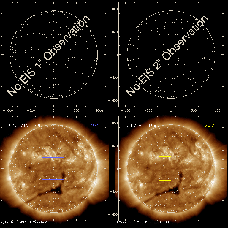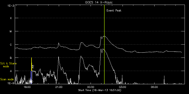 EIS Observation timeline overlay to GOES-Xray curve Code 1" 2" 40" 266" EIS Observations list for this event: STUDY ACRONYM ID DATE OBSERVED DESCRIPTION NOAA# TARGET 0 PRY_slot_contextLITE | 32504 | 2013/03/18 18:20:49 | EIS/AIA alignment synoptic obs | | Active Region TIMELINE ID DATE OBSERVED FITS FILE XCEN (+W/-E) YCEN (+N/-S) DUR ----------------------------------------------------------------------------------------------------------------- 32504 | 2013/03/18 18:20:49.000 | eis_l0_20130318_182049.fits.gz | -15.29 | -0.58 | 2m56s 1 Alignment_266 | 32505 | 2013/03/18 18:24:27 | EIS/AIA synoptic obs | | Quiet Sun TIMELINE ID DATE OBSERVED FITS FILE XCEN (+W/-E) YCEN (+N/-S) DUR ----------------------------------------------------------------------------------------------------------------- 32505 | 2013/03/18 18:24:27.000 | eis_l0_20130318_182427.fits.gz | -132.57 | -0.50 | 1m21s 2 XRT_synop_AIA | 32506 | 2013/03/18 18:27:15 | EIS/AIA synoptic obs | | Quiet Sun TIMELINE ID DATE OBSERVED FITS FILE XCEN (+W/-E) YCEN (+N/-S) DUR ----------------------------------------------------------------------------------------------------------------- 32506 | 2013/03/18 18:27:15.000 | eis_l0_20130318_182715.fits.gz | -132.49 | -0.50 | 10s : Check study information : Download file : View thumbnails For this event, also check for: