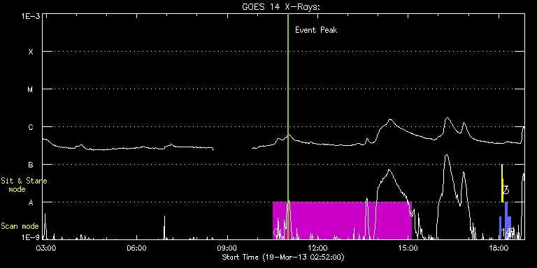 EIS Observation timeline overlay to GOES-Xray curve Code 1" 2" 40" 266" EIS Observations list for this event: STUDY ACRONYM ID DATE OBSERVED DESCRIPTION NOAA# TARGET 0 SK_CH_DIAG_320x384 | 32579 | 2013/03/19 10:31:34 | HOP 206 | | Coronal Hole TIMELINE ID DATE OBSERVED FITS FILE XCEN (+W/-E) YCEN (+N/-S) DUR ----------------------------------------------------------------------------------------------------------------- 32579 | 2013/03/19 10:31:34.000 | eis_l0_20130319_103134.fits.gz | 0.12 | -920.67 | 4h35m37s 1 PRY_slot_contextLITE | 32541 | 2013/03/19 18:02:34 | EIS/AIA alignment synoptic obs | | Active Region TIMELINE ID DATE OBSERVED FITS FILE XCEN (+W/-E) YCEN (+N/-S) DUR ----------------------------------------------------------------------------------------------------------------- 32541 | 2013/03/19 18:02:34.000 | eis_l0_20130319_180234.fits.gz | -15.06 | -0.27 | 2m45s 2 Alignment_266 | 32542 | 2013/03/19 18:05:58 | EIS/AIA synoptic obs | | Quiet Sun TIMELINE ID DATE OBSERVED FITS FILE XCEN (+W/-E) YCEN (+N/-S) DUR ----------------------------------------------------------------------------------------------------------------- 32542 | 2013/03/19 18:05:58.000 | eis_l0_20130319_180558.fits.gz | -132.64 | -0.42 | 1m22s 3 XRT_synop_AIA | 32543 | 2013/03/19 18:08:20 | EIS/AIA synoptic obs | | Quiet Sun TIMELINE ID DATE OBSERVED FITS FILE XCEN (+W/-E) YCEN (+N/-S) DUR ----------------------------------------------------------------------------------------------------------------- 32543 | 2013/03/19 18:08:20.000 | eis_l0_20130319_180820.fits.gz | -132.57 | -0.50 | 10s 4 full_sun_slot_scan_2 | 32553 | 2013/03/19 18:12:27 | HOP 130 | 1696 | Quiet Sun TIMELINE ID DATE OBSERVED FITS FILE XCEN (+W/-E) YCEN (+N/-S) DUR ----------------------------------------------------------------------------------------------------------------- 32553 | 2013/03/19 18:12:27.000 | eis_l0_20130319_181227.fits.gz | 920.80 | 185.58 | 5m27s 5 full_sun_slot_scan_2 | 32554 | 2013/03/19 18:18:49 | HOP 130 | 1698 | Quiet Sun TIMELINE ID DATE OBSERVED FITS FILE XCEN (+W/-E) YCEN (+N/-S) DUR ----------------------------------------------------------------------------------------------------------------- 32554 | 2013/03/19 18:18:49.000 | eis_l0_20130319_181849.fits.gz | 920.72 | -286.50 | 5m26s : Check study information : Download file : View thumbnails For this event, also check for: