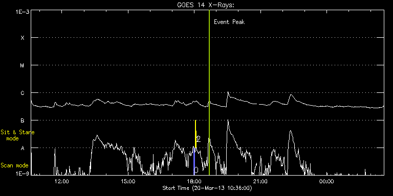 EIS Observation timeline overlay to GOES-Xray curve Code 1" 2" 40" 266" EIS Observations list for this event: STUDY ACRONYM ID DATE OBSERVED DESCRIPTION NOAA# TARGET 0 PRY_slot_contextLITE | 32547 | 2013/03/20 17:58:57 | EIS/AIA alignment synoptic obs | 1700 | Active Region TIMELINE ID DATE OBSERVED FITS FILE XCEN (+W/-E) YCEN (+N/-S) DUR ----------------------------------------------------------------------------------------------------------------- 32547 | 2013/03/20 17:58:57.000 | eis_l0_20130320_175857.fits.gz | -15.06 | -0.35 | 2m56s 1 Alignment_266 | 32548 | 2013/03/20 18:02:28 | EIS/AIA synoptic obs | 1700 | Quiet Sun TIMELINE ID DATE OBSERVED FITS FILE XCEN (+W/-E) YCEN (+N/-S) DUR ----------------------------------------------------------------------------------------------------------------- 32548 | 2013/03/20 18:02:28.000 | eis_l0_20130320_180228.fits.gz | -132.57 | -0.42 | 1m22s 2 XRT_synop_AIA | 32549 | 2013/03/20 18:05:16 | EIS/AIA synoptic obs | 1700 | Quiet Sun TIMELINE ID DATE OBSERVED FITS FILE XCEN (+W/-E) YCEN (+N/-S) DUR ----------------------------------------------------------------------------------------------------------------- 32549 | 2013/03/20 18:05:16.000 | eis_l0_20130320_180516.fits.gz | -132.57 | -0.42 | 11s : Check study information : Download file : View thumbnails For this event, also check for: