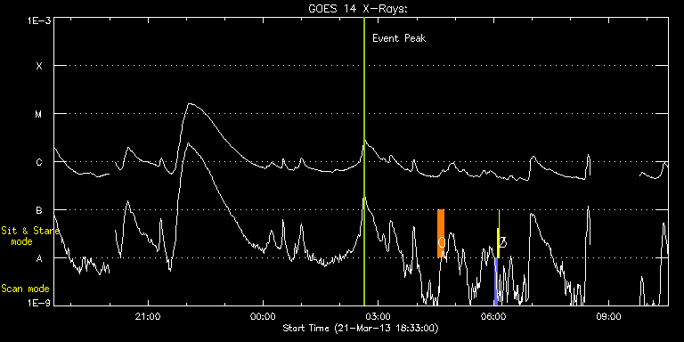 EIS Observation timeline overlay to GOES-Xray curve Code 1" 2" 40" 266" EIS Observations list for this event: STUDY ACRONYM ID DATE OBSERVED DESCRIPTION NOAA# TARGET 0 EL_WHI_CH_limb | 32615 | 2013/03/22 04:32:44 | HOP 201 - CME watch | | Coronal Hole TIMELINE ID DATE OBSERVED FITS FILE XCEN (+W/-E) YCEN (+N/-S) DUR ----------------------------------------------------------------------------------------------------------------- 32615 | 2013/03/22 04:32:44.000 | eis_l0_20130322_043244.fits.gz | 1029.23 | 269.75 | 10m 1 PRY_slot_contextLITE | 32596 | 2013/03/22 06:02:20 | EIS/AIA alignment synoptic obs | | Active Region TIMELINE ID DATE OBSERVED FITS FILE XCEN (+W/-E) YCEN (+N/-S) DUR ----------------------------------------------------------------------------------------------------------------- 32596 | 2013/03/22 06:02:20.000 | eis_l0_20130322_060220.fits.gz | -15.29 | -0.58 | 2m56s 2 Alignment_266 | 32597 | 2013/03/22 06:05:57 | EIS/AIA synoptic obs | | Quiet Sun TIMELINE ID DATE OBSERVED FITS FILE XCEN (+W/-E) YCEN (+N/-S) DUR ----------------------------------------------------------------------------------------------------------------- 32597 | 2013/03/22 06:05:57.000 | eis_l0_20130322_060557.fits.gz | -132.57 | -0.65 | 1m22s 3 XRT_synop_AIA | 32598 | 2013/03/22 06:08:19 | EIS/AIA synoptic obs | | Quiet Sun TIMELINE ID DATE OBSERVED FITS FILE XCEN (+W/-E) YCEN (+N/-S) DUR ----------------------------------------------------------------------------------------------------------------- 32598 | 2013/03/22 06:08:19.000 | eis_l0_20130322_060819.fits.gz | -132.57 | -0.42 | 10s : Check study information : Download file : View thumbnails For this event, also check for: