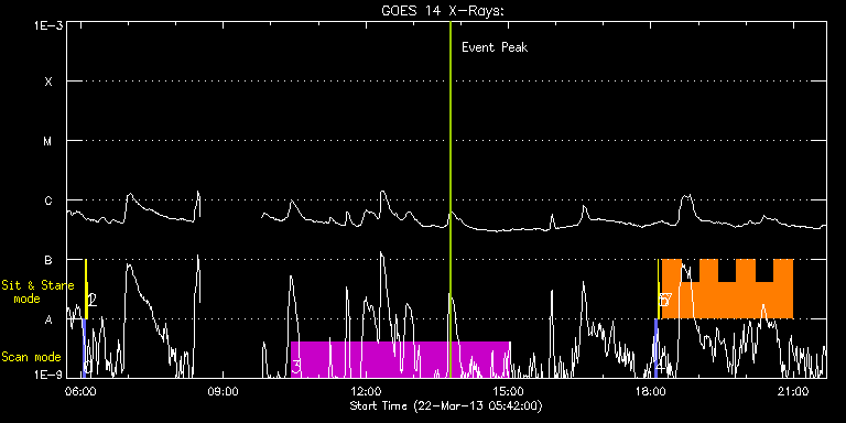 EIS Observation timeline overlay to GOES-Xray curve Code 1" 2" 40" 266" EIS Observations list for this event: STUDY ACRONYM ID DATE OBSERVED DESCRIPTION NOAA# TARGET 0 PRY_slot_contextLITE | 32596 | 2013/03/22 06:02:20 | EIS/AIA alignment synoptic obs | | Active Region TIMELINE ID DATE OBSERVED FITS FILE XCEN (+W/-E) YCEN (+N/-S) DUR ----------------------------------------------------------------------------------------------------------------- 32596 | 2013/03/22 06:02:20.000 | eis_l0_20130322_060220.fits.gz | -15.29 | -0.58 | 2m56s 1 Alignment_266 | 32597 | 2013/03/22 06:05:57 | EIS/AIA synoptic obs | | Quiet Sun TIMELINE ID DATE OBSERVED FITS FILE XCEN (+W/-E) YCEN (+N/-S) DUR ----------------------------------------------------------------------------------------------------------------- 32597 | 2013/03/22 06:05:57.000 | eis_l0_20130322_060557.fits.gz | -132.57 | -0.65 | 1m22s 2 XRT_synop_AIA | 32598 | 2013/03/22 06:08:19 | EIS/AIA synoptic obs | | Quiet Sun TIMELINE ID DATE OBSERVED FITS FILE XCEN (+W/-E) YCEN (+N/-S) DUR ----------------------------------------------------------------------------------------------------------------- 32598 | 2013/03/22 06:08:19.000 | eis_l0_20130322_060819.fits.gz | -132.57 | -0.42 | 10s 3 SK_CH_DIAG_320x384 | 32605 | 2013/03/22 10:25:33 | HOP 206 | | Coronal Hole TIMELINE ID DATE OBSERVED FITS FILE XCEN (+W/-E) YCEN (+N/-S) DUR ----------------------------------------------------------------------------------------------------------------- 32605 | 2013/03/22 10:25:33.000 | eis_l0_20130322_102533.fits.gz | 0.35 | -920.44 | 4h35m38s 4 PRY_slot_contextLITE | 32599 | 2013/03/22 18:05:03 | EIS/AIA alignment synoptic obs | | Active Region TIMELINE ID DATE OBSERVED FITS FILE XCEN (+W/-E) YCEN (+N/-S) DUR ----------------------------------------------------------------------------------------------------------------- 32599 | 2013/03/22 18:05:03.000 | eis_l0_20130322_180503.fits.gz | -15.21 | -0.35 | 2m44s 5 Alignment_266 | 32600 | 2013/03/22 18:08:27 | EIS/AIA synoptic obs | | Quiet Sun TIMELINE ID DATE OBSERVED FITS FILE XCEN (+W/-E) YCEN (+N/-S) DUR ----------------------------------------------------------------------------------------------------------------- 32600 | 2013/03/22 18:08:27.000 | eis_l0_20130322_180827.fits.gz | -132.57 | -0.50 | 1m22s 6 XRT_synop_AIA | 32601 | 2013/03/22 18:10:49 | EIS/AIA synoptic obs | | Quiet Sun TIMELINE ID DATE OBSERVED FITS FILE XCEN (+W/-E) YCEN (+N/-S) DUR ----------------------------------------------------------------------------------------------------------------- 32601 | 2013/03/22 18:10:49.000 | eis_l0_20130322_181049.fits.gz | -132.49 | -0.42 | 10s 7 arm_loop_ne_slit | 32606 | 2013/03/22 18:14:49 | HOP 228 | | Polar region TIMELINE ID DATE OBSERVED FITS FILE XCEN (+W/-E) YCEN (+N/-S) DUR ----------------------------------------------------------------------------------------------------------------- 32606 | 2013/03/22 18:14:49.000 | eis_l0_20130322_181449.fits.gz | 1004.48 | 259.99 | 23m19s 32606 | 2013/03/22 18:38:12.000 | eis_l0_20130322_183812.fits.gz | 1004.41 | 259.68 | 23m18s 32606 | 2013/03/22 19:01:34.000 | eis_l0_20130322_190134.fits.gz | 1004.41 | 259.61 | 23m19s 32606 | 2013/03/22 19:24:56.000 | eis_l0_20130322_192456.fits.gz | 1004.48 | 259.76 | 23m19s 32606 | 2013/03/22 19:48:18.000 | eis_l0_20130322_194818.fits.gz | 1004.48 | 259.68 | 23m19s 32606 | 2013/03/22 20:11:40.000 | eis_l0_20130322_201140.fits.gz | 1004.41 | 259.61 | 23m19s 32606 | 2013/03/22 20:35:02.000 | eis_l0_20130322_203502.fits.gz | 1004.48 | 259.68 | 23m19s : Check study information : Download file : View thumbnails For this event, also check for: