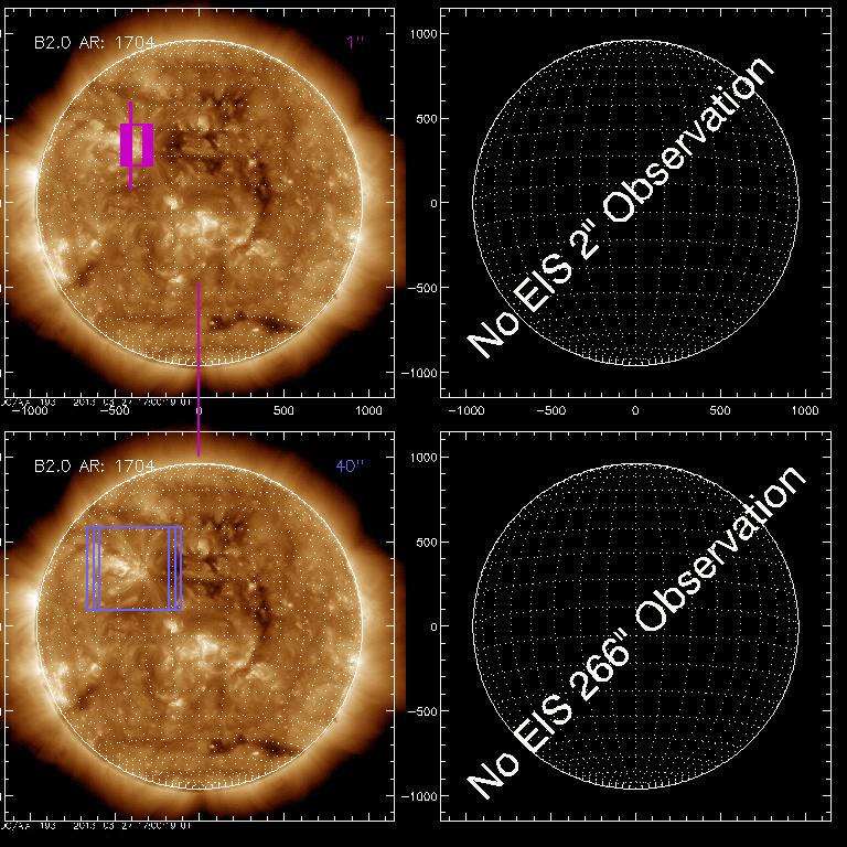 EIS Observation timeline overlay to GOES-Xray curve Code 1" 2" 40" 266" EIS Observations list for this event: STUDY ACRONYM ID DATE OBSERVED DESCRIPTION NOAA# TARGET 0 regcal071 | 32740 | 2013/03/27 11:00:11 | Dark exposures, CCD bottom rows (100s | | Engineering TIMELINE ID DATE OBSERVED FITS FILE XCEN (+W/-E) YCEN (+N/-S) DUR ----------------------------------------------------------------------------------------------------------------- 32740 | 2013/03/27 11:00:11.000 | eis_l0_20130327_110011.fits.gz | -2.02 | -1242.98 | 3m22s 1 regcal072 | 32741 | 2013/03/27 11:04:00 | Dark exposures, top CCD rows (100s exp | | Engineering TIMELINE ID DATE OBSERVED FITS FILE XCEN (+W/-E) YCEN (+N/-S) DUR ----------------------------------------------------------------------------------------------------------------- 32741 | 2013/03/27 11:04:00.000 | eis_l0_20130327_110400.fits.gz | -2.02 | -731.98 | 3m22s 2 PRY_slot_contextLITE | 32738 | 2013/03/27 16:03:33 | | 1704 | Active Region TIMELINE ID DATE OBSERVED FITS FILE XCEN (+W/-E) YCEN (+N/-S) DUR ----------------------------------------------------------------------------------------------------------------- 32738 | 2013/03/27 16:03:33.000 | eis_l0_20130327_160333.fits.gz | -420.14 | 335.14 | 2m56s 3 HPW023_FULLCCD_300s | 32739 | 2013/03/27 16:06:40 | Deep exposures with narrow slit on AR | | Quiet Sun TIMELINE ID DATE OBSERVED FITS FILE XCEN (+W/-E) YCEN (+N/-S) DUR ----------------------------------------------------------------------------------------------------------------- 32739 | 2013/03/27 16:06:40.000 | eis_l0_20130327_160640.fits.gz | -404.53 | 335.14 | 5m 32739 | 2013/03/27 16:12:08.000 | eis_l0_20130327_161208.fits.gz | -403.68 | 335.14 | 5m 32739 | 2013/03/27 16:17:35.000 | eis_l0_20130327_161735.fits.gz | -402.99 | 335.30 | 5m 32739 | 2013/03/27 16:23:02.000 | eis_l0_20130327_162302.fits.gz | -402.22 | 335.37 | 5m 32739 | 2013/03/27 16:28:30.000 | eis_l0_20130327_162830.fits.gz | -401.44 | 335.45 | 5m 32739 | 2013/03/27 16:33:57.000 | eis_l0_20130327_163357.fits.gz | -400.75 | 335.30 | 5m 32739 | 2013/03/27 16:39:24.000 | eis_l0_20130327_163924.fits.gz | -399.98 | 335.37 | 5m 32739 | 2013/03/27 16:44:51.000 | eis_l0_20130327_164451.fits.gz | -399.28 | 335.45 | 5m 4 VHH_SlowAR_1h12_V2 | 32743 | 2013/03/27 17:25:39 | Low-telemetry continous AR scanning | 1704 | Active Region TIMELINE ID DATE OBSERVED FITS FILE XCEN (+W/-E) YCEN (+N/-S) DUR ----------------------------------------------------------------------------------------------------------------- 32743 | 2013/03/27 17:25:39.000 | eis_l0_20130327_172539.fits.gz | -394.05 | 335.76 | 1h8m4s 5 VHH_SlowAR_1h12_V2 | 32730 | 2013/03/27 19:02:39 | Low-telemetry continous AR scanning | 1704 | Active Region TIMELINE ID DATE OBSERVED FITS FILE XCEN (+W/-E) YCEN (+N/-S) DUR ----------------------------------------------------------------------------------------------------------------- 32730 | 2013/03/27 19:02:39.000 | eis_l0_20130327_190239.fits.gz | -380.76 | 336.45 | 1h8m5s 6 PRY_slot_contextLITE | 32745 | 2013/03/27 20:39:32 | | 1704 | Active Region TIMELINE ID DATE OBSERVED FITS FILE XCEN (+W/-E) YCEN (+N/-S) DUR ----------------------------------------------------------------------------------------------------------------- 32745 | 2013/03/27 20:39:32.000 | eis_l0_20130327_203932.fits.gz | -382.45 | 337.15 | 2m56s 7 VHH_SlowAR_1h12_V2 | 32731 | 2013/03/27 20:44:19 | Low-telemetry continous AR scanning | 1704 | Active Region TIMELINE ID DATE OBSERVED FITS FILE XCEN (+W/-E) YCEN (+N/-S) DUR ----------------------------------------------------------------------------------------------------------------- 32731 | 2013/03/27 20:44:19.000 | eis_l0_20130327_204419.fits.gz | -366.78 | 337.07 | 1h8m5s 8 VHH_SlowAR_1h12_V2 | 32732 | 2013/03/27 22:16:09 | Low-telemetry continous AR scanning | 1704 | Active Region TIMELINE ID DATE OBSERVED FITS FILE XCEN (+W/-E) YCEN (+N/-S) DUR ----------------------------------------------------------------------------------------------------------------- 32732 | 2013/03/27 22:16:09.000 | eis_l0_20130327_221609.fits.gz | -354.03 | 337.69 | 1h8m4s 9 VHH_SlowAR_1h12_V2 | 32733 | 2013/03/27 23:43:39 | Low-telemetry continous AR scanning | 1704 | Active Region TIMELINE ID DATE OBSERVED FITS FILE XCEN (+W/-E) YCEN (+N/-S) DUR ----------------------------------------------------------------------------------------------------------------- 32733 | 2013/03/27 23:43:39.000 | eis_l0_20130327_234339.fits.gz | -341.98 | 338.23 | 1h8m4s 10 PRY_slot_contextLITE | 32746 | 2013/03/28 00:52:07 | | 1704 | Active Region TIMELINE ID DATE OBSERVED FITS FILE XCEN (+W/-E) YCEN (+N/-S) DUR ----------------------------------------------------------------------------------------------------------------- 32746 | 2013/03/28 00:52:07.000 | eis_l0_20130328_005207.fits.gz | -347.38 | 338.62 | 2m57s : Check study information : Download file : View thumbnails For this event, also check for: