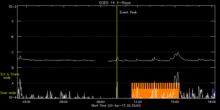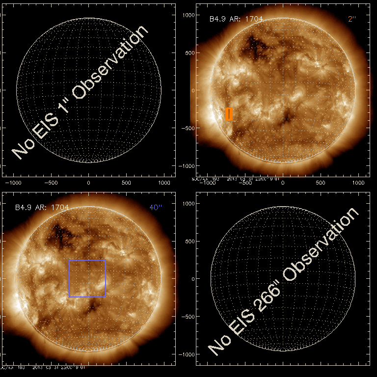EIS Observation timeline overlay to GOES-Xray curve Code 1" 2" 40" 266" EIS Observations list for this event: STUDY ACRONYM ID DATE OBSERVED DESCRIPTION NOAA# TARGET 0 HH_Flare+AR_180x152 | 32820 | 2013/04/02 11:30:14 | Flare Hunt | 1711 | Flare TIMELINE ID DATE OBSERVED FITS FILE XCEN (+W/-E) YCEN (+N/-S) DUR ----------------------------------------------------------------------------------------------------------------- 32820 | 2013/04/02 11:30:14.000 | eis_l0_20130402_113014.fits.gz | -723.51 | -320.50 | 5m17s 32820 | 2013/04/02 11:35:34.000 | eis_l0_20130402_113534.fits.gz | -723.12 | -320.27 | 5m18s 32820 | 2013/04/02 11:40:55.000 | eis_l0_20130402_114055.fits.gz | -722.51 | -320.35 | 5m18s 32820 | 2013/04/02 11:46:16.000 | eis_l0_20130402_114616.fits.gz | -721.97 | -320.27 | 5m17s 32820 | 2013/04/02 11:51:36.000 | eis_l0_20130402_115136.fits.gz | -721.43 | -320.19 | 5m18s 32820 | 2013/04/02 11:56:57.000 | eis_l0_20130402_115657.fits.gz | -720.96 | -320.12 | 5m18s 32820 | 2013/04/02 12:02:18.000 | eis_l0_20130402_120218.fits.gz | -720.50 | -320.12 | 5m18s 32820 | 2013/04/02 12:07:39.000 | eis_l0_20130402_120739.fits.gz | -719.96 | -320.04 | 5m17s 32820 | 2013/04/02 12:12:59.000 | eis_l0_20130402_121259.fits.gz | -719.42 | -319.89 | 5m18s 32820 | 2013/04/02 12:18:20.000 | eis_l0_20130402_121820.fits.gz | -718.88 | -319.96 | 5m18s 32820 | 2013/04/02 12:23:41.000 | eis_l0_20130402_122341.fits.gz | -718.49 | -319.73 | 5m19s 32820 | 2013/04/02 12:29:02.000 | eis_l0_20130402_122902.fits.gz | -717.87 | -319.81 | 5m18s 32820 | 2013/04/02 12:34:23.000 | eis_l0_20130402_123423.fits.gz | -717.41 | -319.73 | 5m17s 32820 | 2013/04/02 12:39:43.000 | eis_l0_20130402_123943.fits.gz | -716.95 | -319.65 | 5m18s 32820 | 2013/04/02 12:45:04.000 | eis_l0_20130402_124504.fits.gz | -716.25 | -319.58 | 5m18s 32820 | 2013/04/02 12:50:24.000 | eis_l0_20130402_125024.fits.gz | -715.71 | -319.42 | 5m18s 32820 | 2013/04/02 12:55:45.000 | eis_l0_20130402_125545.fits.gz | -715.25 | -319.58 | 5m17s 32820 | 2013/04/02 13:01:05.000 | eis_l0_20130402_130105.fits.gz | -714.78 | -319.42 | 5m18s 32820 | 2013/04/02 13:06:26.000 | eis_l0_20130402_130626.fits.gz | -714.32 | -319.34 | 5m17s 32820 | 2013/04/02 13:11:46.000 | eis_l0_20130402_131146.fits.gz | -713.78 | -319.27 | 5m18s 32820 | 2013/04/02 13:17:06.000 | eis_l0_20130402_131706.fits.gz | -713.24 | -319.19 | 5m19s 32820 | 2013/04/02 13:22:27.000 | eis_l0_20130402_132227.fits.gz | -712.70 | -319.19 | 5m19s 32820 | 2013/04/02 13:27:48.000 | eis_l0_20130402_132748.fits.gz | -712.16 | -318.96 | 5m19s 32820 | 2013/04/02 13:33:09.000 | eis_l0_20130402_133309.fits.gz | -711.61 | -319.04 | 5m18s 32820 | 2013/04/02 13:38:30.000 | eis_l0_20130402_133830.fits.gz | -711.15 | -318.88 | 5m18s 32820 | 2013/04/02 13:43:50.000 | eis_l0_20130402_134350.fits.gz | -710.61 | -319.04 | 5m18s 32820 | 2013/04/02 13:49:11.000 | eis_l0_20130402_134911.fits.gz | -710.15 | -318.80 | 5m18s 32820 | 2013/04/02 13:54:32.000 | eis_l0_20130402_135432.fits.gz | -709.61 | -318.73 | 5m19s 32820 | 2013/04/02 13:59:54.000 | eis_l0_20130402_135954.fits.gz | -709.07 | -318.73 | 5m17s 32820 | 2013/04/02 14:05:14.000 | eis_l0_20130402_140514.fits.gz | -708.53 | -318.73 | 5m18s 32820 | 2013/04/02 14:10:34.000 | eis_l0_20130402_141034.fits.gz | -707.98 | -318.57 | 5m19s 32820 | 2013/04/02 14:15:55.000 | eis_l0_20130402_141555.fits.gz | -707.52 | -318.42 | 5m18s 32820 | 2013/04/02 14:21:16.000 | eis_l0_20130402_142116.fits.gz | -706.98 | -318.34 | 5m19s 32820 | 2013/04/02 14:26:38.000 | eis_l0_20130402_142638.fits.gz | -706.44 | -318.57 | 5m18s 32820 | 2013/04/02 14:31:58.000 | eis_l0_20130402_143158.fits.gz | -705.82 | -318.57 | 5m18s 32820 | 2013/04/02 14:37:19.000 | eis_l0_20130402_143719.fits.gz | -705.36 | -318.34 | 5m17s 32820 | 2013/04/02 14:42:38.000 | eis_l0_20130402_144238.fits.gz | -704.90 | -318.11 | 5m19s 32820 | 2013/04/02 14:48:00.000 | eis_l0_20130402_144800.fits.gz | -704.35 | -318.18 | 5m17s 32820 | 2013/04/02 14:53:20.000 | eis_l0_20130402_145320.fits.gz | -703.81 | -318.11 | 5m18s 32820 | 2013/04/02 14:58:41.000 | eis_l0_20130402_145841.fits.gz | -703.27 | -318.11 | 5m18s 32820 | 2013/04/02 15:04:01.000 | eis_l0_20130402_150401.fits.gz | -702.73 | -317.95 | 5m18s 32820 | 2013/04/02 15:09:21.000 | eis_l0_20130402_150921.fits.gz | -702.11 | -317.88 | 5m19s 32820 | 2013/04/02 15:14:43.000 | eis_l0_20130402_151443.fits.gz | -701.65 | -317.88 | 5m17s 1 PRY_slot_contextLITE | 32821 | 2013/04/02 18:04:20 | SYNOP | 1710 | Active Region TIMELINE ID DATE OBSERVED FITS FILE XCEN (+W/-E) YCEN (+N/-S) DUR ----------------------------------------------------------------------------------------------------------------- 32821 | 2013/04/02 18:04:20.000 | eis_l0_20130402_180420.fits.gz | -15.21 | -0.27 | 2m57s : Check study information : Download file : View thumbnails For this event, also check for: