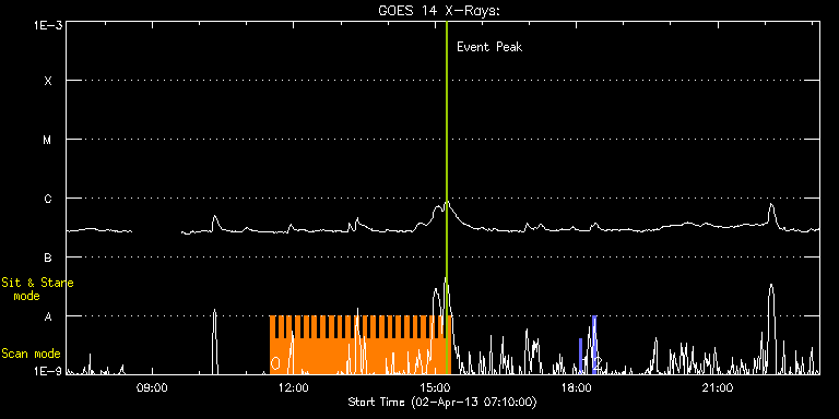 EIS Observation timeline overlay to GOES-Xray curve Code 1" 2" 40" 266" EIS Observations list for this event: STUDY ACRONYM ID DATE OBSERVED DESCRIPTION NOAA# TARGET 0 HH_Flare+AR_180x152 | 32820 | 2013/04/02 11:30:14 | Flare Hunt | 1711 | Flare TIMELINE ID DATE OBSERVED FITS FILE XCEN (+W/-E) YCEN (+N/-S) DUR ----------------------------------------------------------------------------------------------------------------- 32820 | 2013/04/02 11:30:14.000 | eis_l0_20130402_113014.fits.gz | -723.51 | -320.50 | 5m17s 32820 | 2013/04/02 11:35:34.000 | eis_l0_20130402_113534.fits.gz | -723.12 | -320.27 | 5m18s 32820 | 2013/04/02 11:40:55.000 | eis_l0_20130402_114055.fits.gz | -722.51 | -320.35 | 5m18s 32820 | 2013/04/02 11:46:16.000 | eis_l0_20130402_114616.fits.gz | -721.97 | -320.27 | 5m17s 32820 | 2013/04/02 11:51:36.000 | eis_l0_20130402_115136.fits.gz | -721.43 | -320.19 | 5m18s 32820 | 2013/04/02 11:56:57.000 | eis_l0_20130402_115657.fits.gz | -720.96 | -320.12 | 5m18s 32820 | 2013/04/02 12:02:18.000 | eis_l0_20130402_120218.fits.gz | -720.50 | -320.12 | 5m18s 32820 | 2013/04/02 12:07:39.000 | eis_l0_20130402_120739.fits.gz | -719.96 | -320.04 | 5m17s 32820 | 2013/04/02 12:12:59.000 | eis_l0_20130402_121259.fits.gz | -719.42 | -319.89 | 5m18s 32820 | 2013/04/02 12:18:20.000 | eis_l0_20130402_121820.fits.gz | -718.88 | -319.96 | 5m18s 32820 | 2013/04/02 12:23:41.000 | eis_l0_20130402_122341.fits.gz | -718.49 | -319.73 | 5m19s 32820 | 2013/04/02 12:29:02.000 | eis_l0_20130402_122902.fits.gz | -717.87 | -319.81 | 5m18s 32820 | 2013/04/02 12:34:23.000 | eis_l0_20130402_123423.fits.gz | -717.41 | -319.73 | 5m17s 32820 | 2013/04/02 12:39:43.000 | eis_l0_20130402_123943.fits.gz | -716.95 | -319.65 | 5m18s 32820 | 2013/04/02 12:45:04.000 | eis_l0_20130402_124504.fits.gz | -716.25 | -319.58 | 5m18s 32820 | 2013/04/02 12:50:24.000 | eis_l0_20130402_125024.fits.gz | -715.71 | -319.42 | 5m18s 32820 | 2013/04/02 12:55:45.000 | eis_l0_20130402_125545.fits.gz | -715.25 | -319.58 | 5m17s 32820 | 2013/04/02 13:01:05.000 | eis_l0_20130402_130105.fits.gz | -714.78 | -319.42 | 5m18s 32820 | 2013/04/02 13:06:26.000 | eis_l0_20130402_130626.fits.gz | -714.32 | -319.34 | 5m17s 32820 | 2013/04/02 13:11:46.000 | eis_l0_20130402_131146.fits.gz | -713.78 | -319.27 | 5m18s 32820 | 2013/04/02 13:17:06.000 | eis_l0_20130402_131706.fits.gz | -713.24 | -319.19 | 5m19s 32820 | 2013/04/02 13:22:27.000 | eis_l0_20130402_132227.fits.gz | -712.70 | -319.19 | 5m19s 32820 | 2013/04/02 13:27:48.000 | eis_l0_20130402_132748.fits.gz | -712.16 | -318.96 | 5m19s 32820 | 2013/04/02 13:33:09.000 | eis_l0_20130402_133309.fits.gz | -711.61 | -319.04 | 5m18s 32820 | 2013/04/02 13:38:30.000 | eis_l0_20130402_133830.fits.gz | -711.15 | -318.88 | 5m18s 32820 | 2013/04/02 13:43:50.000 | eis_l0_20130402_134350.fits.gz | -710.61 | -319.04 | 5m18s 32820 | 2013/04/02 13:49:11.000 | eis_l0_20130402_134911.fits.gz | -710.15 | -318.80 | 5m18s 32820 | 2013/04/02 13:54:32.000 | eis_l0_20130402_135432.fits.gz | -709.61 | -318.73 | 5m19s 32820 | 2013/04/02 13:59:54.000 | eis_l0_20130402_135954.fits.gz | -709.07 | -318.73 | 5m17s 32820 | 2013/04/02 14:05:14.000 | eis_l0_20130402_140514.fits.gz | -708.53 | -318.73 | 5m18s 32820 | 2013/04/02 14:10:34.000 | eis_l0_20130402_141034.fits.gz | -707.98 | -318.57 | 5m19s 32820 | 2013/04/02 14:15:55.000 | eis_l0_20130402_141555.fits.gz | -707.52 | -318.42 | 5m18s 32820 | 2013/04/02 14:21:16.000 | eis_l0_20130402_142116.fits.gz | -706.98 | -318.34 | 5m19s 32820 | 2013/04/02 14:26:38.000 | eis_l0_20130402_142638.fits.gz | -706.44 | -318.57 | 5m18s 32820 | 2013/04/02 14:31:58.000 | eis_l0_20130402_143158.fits.gz | -705.82 | -318.57 | 5m18s 32820 | 2013/04/02 14:37:19.000 | eis_l0_20130402_143719.fits.gz | -705.36 | -318.34 | 5m17s 32820 | 2013/04/02 14:42:38.000 | eis_l0_20130402_144238.fits.gz | -704.90 | -318.11 | 5m19s 32820 | 2013/04/02 14:48:00.000 | eis_l0_20130402_144800.fits.gz | -704.35 | -318.18 | 5m17s 32820 | 2013/04/02 14:53:20.000 | eis_l0_20130402_145320.fits.gz | -703.81 | -318.11 | 5m18s 32820 | 2013/04/02 14:58:41.000 | eis_l0_20130402_145841.fits.gz | -703.27 | -318.11 | 5m18s 32820 | 2013/04/02 15:04:01.000 | eis_l0_20130402_150401.fits.gz | -702.73 | -317.95 | 5m18s 32820 | 2013/04/02 15:09:21.000 | eis_l0_20130402_150921.fits.gz | -702.11 | -317.88 | 5m19s 32820 | 2013/04/02 15:14:43.000 | eis_l0_20130402_151443.fits.gz | -701.65 | -317.88 | 5m17s 1 PRY_slot_contextLITE | 32821 | 2013/04/02 18:04:20 | SYNOP | 1710 | Active Region TIMELINE ID DATE OBSERVED FITS FILE XCEN (+W/-E) YCEN (+N/-S) DUR ----------------------------------------------------------------------------------------------------------------- 32821 | 2013/04/02 18:04:20.000 | eis_l0_20130402_180420.fits.gz | -15.21 | -0.27 | 2m57s 2 eis:eitwave_context | 32822 | 2013/04/02 18:20:40 | HOP 180 EIT wave | | Quiet Sun TIMELINE ID DATE OBSERVED FITS FILE XCEN (+W/-E) YCEN (+N/-S) DUR ----------------------------------------------------------------------------------------------------------------- 32822 | 2013/04/02 18:20:40.000 | eis_l0_20130402_182040.fits.gz | -146.91 | 29.94 | 1m32s 32822 | 2013/04/02 18:22:16.000 | eis_l0_20130402_182216.fits.gz | -146.76 | 30.10 | 1m32s 32822 | 2013/04/02 18:23:52.000 | eis_l0_20130402_182352.fits.gz | -146.53 | 30.18 | 1m32s : Check study information : Download file : View thumbnails For this event, also check for: