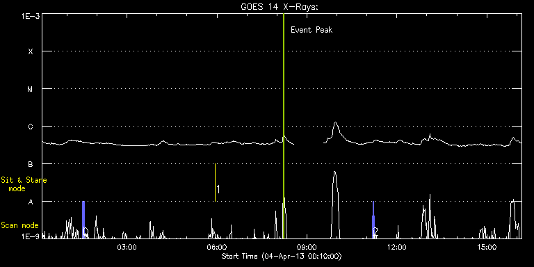 EIS Observation timeline overlay to GOES-Xray curve Code 1" 2" 40" 266" EIS Observations list for this event: STUDY ACRONYM ID DATE OBSERVED DESCRIPTION NOAA# TARGET 0 eis:eitwave_context | 32833 | 2013/04/04 01:30:19 | HOP 180 EIT wave | | Quiet Sun TIMELINE ID DATE OBSERVED FITS FILE XCEN (+W/-E) YCEN (+N/-S) DUR ----------------------------------------------------------------------------------------------------------------- 32833 | 2013/04/04 01:30:19.000 | eis_l0_20130404_013019.fits.gz | -435.74 | -40.26 | 1m32s 32833 | 2013/04/04 01:31:55.000 | eis_l0_20130404_013155.fits.gz | -435.51 | -40.26 | 1m32s 32833 | 2013/04/04 01:33:31.000 | eis_l0_20130404_013331.fits.gz | -435.28 | -40.26 | 1m32s 1 XRT_synop_AIA | 32834 | 2013/04/04 05:56:26 | SYNOP | 1711 | Quiet Sun TIMELINE ID DATE OBSERVED FITS FILE XCEN (+W/-E) YCEN (+N/-S) DUR ----------------------------------------------------------------------------------------------------------------- 32834 | 2013/04/04 05:56:26.000 | eis_l0_20130404_055626.fits.gz | -132.49 | -0.35 | 10s 2 eis:eitwave_context | 32837 | 2013/04/04 11:10:27 | HOP 180 EIT Wave | 1711 | Quiet Sun TIMELINE ID DATE OBSERVED FITS FILE XCEN (+W/-E) YCEN (+N/-S) DUR ----------------------------------------------------------------------------------------------------------------- 32837 | 2013/04/04 11:10:27.000 | eis_l0_20130404_111027.fits.gz | -340.96 | -22.87 | 1m32s 32837 | 2013/04/04 11:12:03.000 | eis_l0_20130404_111203.fits.gz | -340.73 | -22.71 | 1m32s 32837 | 2013/04/04 11:13:38.000 | eis_l0_20130404_111338.fits.gz | -340.50 | -22.79 | 1m33s : Check study information : Download file : View thumbnails For this event, also check for: