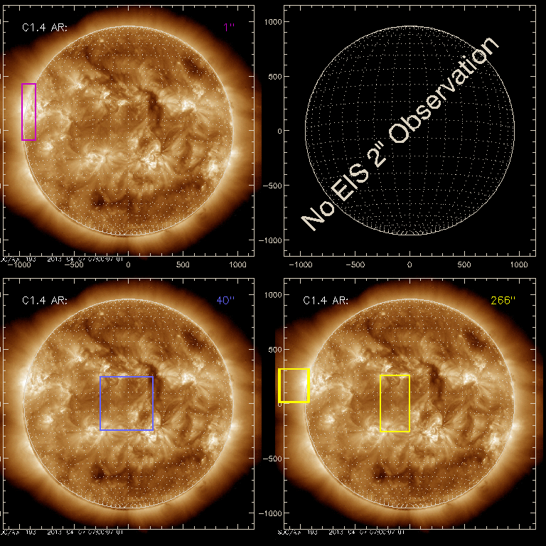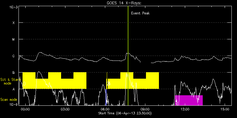 EIS Observation timeline overlay to GOES-Xray curve Code 1" 2" 40" 266" EIS Observations list for this event: STUDY ACRONYM ID DATE OBSERVED DESCRIPTION NOAA# TARGET 0 Flare266_Hunter03 | 32876 | 2013/04/06 23:48:27 | Flare Hunting... | | Flare TIMELINE ID DATE OBSERVED FITS FILE XCEN (+W/-E) YCEN (+N/-S) DUR ----------------------------------------------------------------------------------------------------------------- 32876 | 2013/04/06 23:48:27.000 | eis_l0_20130406_234827.fits.gz | -10064.40 | -9963.20 | 56m53s 32876 | 2013/04/07 00:45:47.000 | eis_l0_20130407_004547.fits.gz | -10064.40 | -9963.20 | 56m53s 32876 | 2013/04/07 01:43:07.000 | eis_l0_20130407_014307.fits.gz | -10064.40 | -9963.20 | 56m54s 32876 | 2013/04/07 02:40:28.000 | eis_l0_20130407_024028.fits.gz | -10064.40 | -9963.20 | 56m53s 32876 | 2013/04/07 03:37:48.000 | eis_l0_20130407_033748.fits.gz | -10064.40 | -9963.20 | 56m53s 1 PRY_slot_contextLITE | 32850 | 2013/04/07 06:02:27 | EIS/AIA Alignment Check | 1716 | Active Region TIMELINE ID DATE OBSERVED FITS FILE XCEN (+W/-E) YCEN (+N/-S) DUR ----------------------------------------------------------------------------------------------------------------- 32850 | 2013/04/07 06:02:27.000 | eis_l0_20130407_060227.fits.gz | -15.14 | -0.58 | 2m56s 2 Alignment_266 | 32851 | 2013/04/07 06:05:41 | EIS/AIA Alignment Check | 1716 | Quiet Sun TIMELINE ID DATE OBSERVED FITS FILE XCEN (+W/-E) YCEN (+N/-S) DUR ----------------------------------------------------------------------------------------------------------------- 32851 | 2013/04/07 06:05:41.000 | eis_l0_20130407_060541.fits.gz | -132.49 | -0.42 | 1m22s 3 XRT_synop_AIA | 32852 | 2013/04/07 06:08:15 | EIS/AIA Alignment Check | 1716 | Quiet Sun TIMELINE ID DATE OBSERVED FITS FILE XCEN (+W/-E) YCEN (+N/-S) DUR ----------------------------------------------------------------------------------------------------------------- 32852 | 2013/04/07 06:08:15.000 | eis_l0_20130407_060815.fits.gz | -132.41 | -0.50 | 10s 4 Flare266_Hunter03 | 32877 | 2013/04/07 06:12:13 | Flare Hunting... | | Flare TIMELINE ID DATE OBSERVED FITS FILE XCEN (+W/-E) YCEN (+N/-S) DUR ----------------------------------------------------------------------------------------------------------------- 32877 | 2013/04/07 06:12:13.000 | eis_l0_20130407_061213.fits.gz | -1064.70 | 162.03 | 56m54s 32877 | 2013/04/07 07:09:34.000 | eis_l0_20130407_070934.fits.gz | -1061.14 | 162.88 | 56m53s 32877 | 2013/04/07 08:06:54.000 | eis_l0_20130407_080654.fits.gz | -1057.51 | 163.57 | 56m54s 32877 | 2013/04/07 09:04:15.000 | eis_l0_20130407_090415.fits.gz | -1053.73 | 164.73 | 56m53s 5 HPW021_VEL_240x512v1 | 32874 | 2013/04/07 11:15:33 | Detailed Scans of AR 11719 | 1719 | Active Region TIMELINE ID DATE OBSERVED FITS FILE XCEN (+W/-E) YCEN (+N/-S) DUR ----------------------------------------------------------------------------------------------------------------- 32874 | 2013/04/07 11:15:33.000 | eis_l0_20130407_111533.fits.gz | -912.59 | 166.43 | 2h3m48s : Check study information : Download file : View thumbnails For this event, also check for: