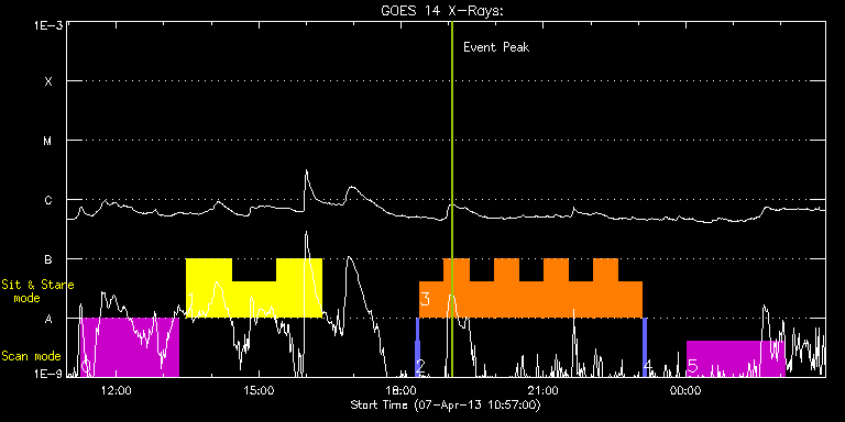 EIS Observation timeline overlay to GOES-Xray curve Code 1" 2" 40" 266" EIS Observations list for this event: STUDY ACRONYM ID DATE OBSERVED DESCRIPTION NOAA# TARGET 0 HPW021_VEL_240x512v1 | 32874 | 2013/04/07 11:15:33 | Detailed Scans of AR 11719 | 1719 | Active Region TIMELINE ID DATE OBSERVED FITS FILE XCEN (+W/-E) YCEN (+N/-S) DUR ----------------------------------------------------------------------------------------------------------------- 32874 | 2013/04/07 11:15:33.000 | eis_l0_20130407_111533.fits.gz | -912.59 | 166.43 | 2h3m48s 1 Flare266_Hunter03 | 32878 | 2013/04/07 13:28:19 | Flare Hunting... | | Flare TIMELINE ID DATE OBSERVED FITS FILE XCEN (+W/-E) YCEN (+N/-S) DUR ----------------------------------------------------------------------------------------------------------------- 32878 | 2013/04/07 13:28:19.000 | eis_l0_20130407_132819.fits.gz | -1035.42 | 168.36 | 56m54s 32878 | 2013/04/07 14:25:40.000 | eis_l0_20130407_142540.fits.gz | -1031.25 | 169.06 | 56m54s 32878 | 2013/04/07 15:23:01.000 | eis_l0_20130407_152301.fits.gz | -1027.00 | 170.06 | 56m53s 2 eis_eitwave_context | 32862 | 2013/04/07 18:18:26 | Dynamics and physical properties of la | 1719 | Quiet Sun TIMELINE ID DATE OBSERVED FITS FILE XCEN (+W/-E) YCEN (+N/-S) DUR ----------------------------------------------------------------------------------------------------------------- 32862 | 2013/04/07 18:18:26.000 | eis_l0_20130407_181826.fits.gz | -838.28 | 377.61 | 1m32s 32862 | 2013/04/07 18:20:02.000 | eis_l0_20130407_182002.fits.gz | -838.13 | 377.61 | 1m32s 32862 | 2013/04/07 18:21:38.000 | eis_l0_20130407_182138.fits.gz | -837.97 | 377.54 | 1m32s 3 eis_eitwave_obssns | 32863 | 2013/04/07 18:23:35 | Dynamics and physical properties of la | | Quiet Sun TIMELINE ID DATE OBSERVED FITS FILE XCEN (+W/-E) YCEN (+N/-S) DUR ----------------------------------------------------------------------------------------------------------------- 32863 | 2013/04/07 18:23:35.000 | eis_l0_20130407_182335.fits.gz | -818.76 | 377.46 | 31m15s 32863 | 2013/04/07 18:54:53.000 | eis_l0_20130407_185453.fits.gz | -816.29 | 378.00 | 31m16s 32863 | 2013/04/07 19:26:12.000 | eis_l0_20130407_192612.fits.gz | -813.89 | 378.46 | 31m15s 32863 | 2013/04/07 19:57:31.000 | eis_l0_20130407_195731.fits.gz | -811.34 | 378.92 | 31m15s 32863 | 2013/04/07 20:28:50.000 | eis_l0_20130407_202850.fits.gz | -808.79 | 379.39 | 31m15s 32863 | 2013/04/07 21:00:09.000 | eis_l0_20130407_210009.fits.gz | -806.32 | 379.77 | 31m15s 32863 | 2013/04/07 21:31:27.000 | eis_l0_20130407_213127.fits.gz | -803.62 | 380.16 | 31m16s 32863 | 2013/04/07 22:02:46.000 | eis_l0_20130407_220246.fits.gz | -801.07 | 380.62 | 31m15s 32863 | 2013/04/07 22:34:05.000 | eis_l0_20130407_223405.fits.gz | -798.52 | 381.09 | 31m15s 4 eis_eitwave_context | 32864 | 2013/04/07 23:05:32 | Dynamics and physical properties of la | | Quiet Sun TIMELINE ID DATE OBSERVED FITS FILE XCEN (+W/-E) YCEN (+N/-S) DUR ----------------------------------------------------------------------------------------------------------------- 32864 | 2013/04/07 23:05:32.000 | eis_l0_20130407_230532.fits.gz | -814.80 | 381.40 | 1m32s 32864 | 2013/04/07 23:07:08.000 | eis_l0_20130407_230708.fits.gz | -814.64 | 381.32 | 1m32s 32864 | 2013/04/07 23:08:43.000 | eis_l0_20130407_230843.fits.gz | -814.57 | 381.40 | 1m32s 5 HPW021_VEL_240x512v1 | 32868 | 2013/04/08 00:02:19 | Diagnostic scan of returning AR. | 1719 | Active Region TIMELINE ID DATE OBSERVED FITS FILE XCEN (+W/-E) YCEN (+N/-S) DUR ----------------------------------------------------------------------------------------------------------------- 32868 | 2013/04/08 00:02:19.000 | eis_l0_20130408_000219.fits.gz | -790.87 | 177.32 | 2h3m47s : Check study information : Download file : View thumbnails For this event, also check for: