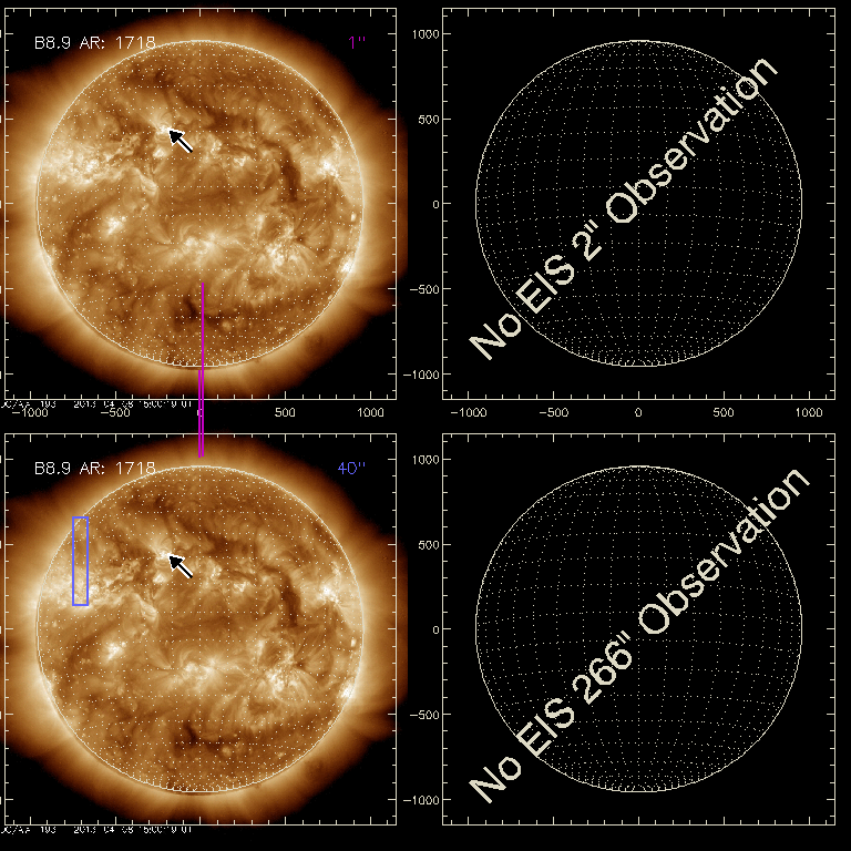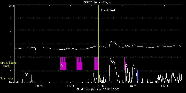 EIS Observation timeline overlay to GOES-Xray curve Code 1" 2" 40" 266" EIS Observations list for this event: STUDY ACRONYM ID DATE OBSERVED DESCRIPTION NOAA# TARGET 0 HPW023_FULLCCD_300s | 32870 | 2013/04/08 11:02:26 | Test of off-limb calibration study | | Quiet Sun TIMELINE ID DATE OBSERVED FITS FILE XCEN (+W/-E) YCEN (+N/-S) DUR ----------------------------------------------------------------------------------------------------------------- 32870 | 2013/04/08 11:02:26.000 | eis_l0_20130408_110226.fits.gz | -3.70 | -1236.02 | 5m 32870 | 2013/04/08 11:07:53.000 | eis_l0_20130408_110753.fits.gz | -3.62 | -1235.87 | 5m 32870 | 2013/04/08 11:13:20.000 | eis_l0_20130408_111320.fits.gz | -3.54 | -1235.95 | 5m1s 32870 | 2013/04/08 11:18:48.000 | eis_l0_20130408_111848.fits.gz | -3.46 | -1235.87 | 5m 32870 | 2013/04/08 11:24:15.000 | eis_l0_20130408_112415.fits.gz | -3.46 | -1235.95 | 5m 32870 | 2013/04/08 11:29:42.000 | eis_l0_20130408_112942.fits.gz | -3.31 | -1236.10 | 5m 32870 | 2013/04/08 12:35:09.000 | eis_l0_20130408_123509.fits.gz | -2.31 | -1235.87 | 5m 32870 | 2013/04/08 12:40:37.000 | eis_l0_20130408_124037.fits.gz | -2.23 | -1235.95 | 5m 32870 | 2013/04/08 12:46:04.000 | eis_l0_20130408_124604.fits.gz | -2.23 | -1235.87 | 5m 32870 | 2013/04/08 12:51:31.000 | eis_l0_20130408_125131.fits.gz | -2.23 | -1235.87 | 5m 32870 | 2013/04/08 12:56:58.000 | eis_l0_20130408_125658.fits.gz | -2.00 | -1235.87 | 5m 32870 | 2013/04/08 13:02:25.000 | eis_l0_20130408_130225.fits.gz | -1.92 | -1235.95 | 5m 32870 | 2013/04/08 14:18:47.000 | eis_l0_20130408_141847.fits.gz | -0.76 | -1236.02 | 5m 32870 | 2013/04/08 14:24:14.000 | eis_l0_20130408_142414.fits.gz | -0.68 | -1235.87 | 5m 32870 | 2013/04/08 14:29:41.000 | eis_l0_20130408_142941.fits.gz | -0.68 | -1235.72 | 5m 32870 | 2013/04/08 14:35:08.000 | eis_l0_20130408_143508.fits.gz | -0.61 | -1235.87 | 5m 1 regcal071 | 32871 | 2013/04/08 17:09:11 | Dark exposures, CCD bottom rows (100s | | Engineering TIMELINE ID DATE OBSERVED FITS FILE XCEN (+W/-E) YCEN (+N/-S) DUR ----------------------------------------------------------------------------------------------------------------- 32871 | 2013/04/08 17:09:11.000 | eis_l0_20130408_170911.fits.gz | 16.44 | -1235.95 | 3m21s 2 regcal072 | 32872 | 2013/04/08 17:15:31 | Dark exposures, top CCD rows (100s exp | | Engineering TIMELINE ID DATE OBSERVED FITS FILE XCEN (+W/-E) YCEN (+N/-S) DUR ----------------------------------------------------------------------------------------------------------------- 32872 | 2013/04/08 17:15:31.000 | eis_l0_20130408_171531.fits.gz | 16.52 | -724.95 | 3m21s 3 eis_eitwave_context | 32865 | 2013/04/08 18:23:33 | Dynamics and physical properties of la | | Quiet Sun TIMELINE ID DATE OBSERVED FITS FILE XCEN (+W/-E) YCEN (+N/-S) DUR ----------------------------------------------------------------------------------------------------------------- 32865 | 2013/04/08 18:23:33.000 | eis_l0_20130408_182333.fits.gz | -703.79 | 395.92 | 1m32s 32865 | 2013/04/08 18:25:09.000 | eis_l0_20130408_182509.fits.gz | -703.64 | 395.84 | 1m32s 32865 | 2013/04/08 18:26:44.000 | eis_l0_20130408_182644.fits.gz | -703.48 | 395.92 | 1m32s : Check study information : Download file : View thumbnails For this event, also check for: