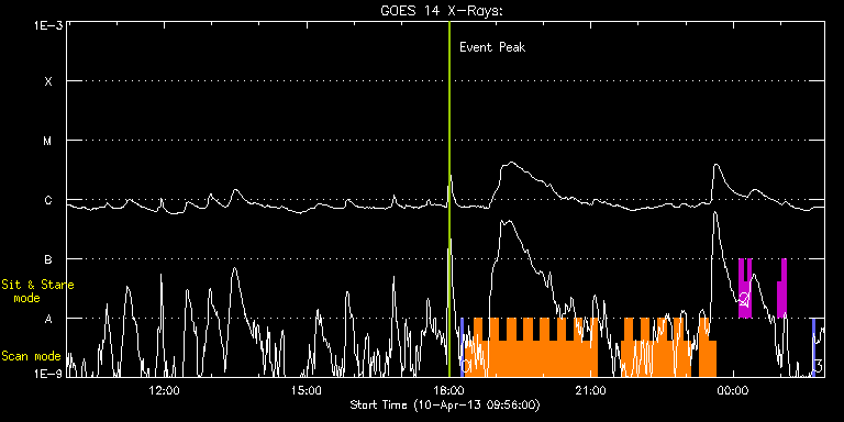 EIS Observation timeline overlay to GOES-Xray curve Code 1" 2" 40" 266" EIS Observations list for this event: STUDY ACRONYM ID DATE OBSERVED DESCRIPTION NOAA# TARGET 0 PRY_slot_contextLITE | 32895 | 2013/04/10 18:15:20 | EIS/AIA Alignment Check | | Active Region TIMELINE ID DATE OBSERVED FITS FILE XCEN (+W/-E) YCEN (+N/-S) DUR ----------------------------------------------------------------------------------------------------------------- 32895 | 2013/04/10 18:15:20.000 | eis_l0_20130410_181520.fits.gz | -243.17 | -630.69 | 2m56s 1 XBP_OBS_SI006 | 32896 | 2013/04/10 18:21:03 | Moderate cadence/FOV slit scans for HO | | Quiet Sun TIMELINE ID DATE OBSERVED FITS FILE XCEN (+W/-E) YCEN (+N/-S) DUR ----------------------------------------------------------------------------------------------------------------- 32896 | 2013/04/10 18:21:03.000 | eis_l0_20130410_182103.fits.gz | -227.81 | -630.53 | 10m32s 32896 | 2013/04/10 18:31:38.000 | eis_l0_20130410_183138.fits.gz | -226.89 | -630.38 | 10m32s 32896 | 2013/04/10 18:42:13.000 | eis_l0_20130410_184213.fits.gz | -225.96 | -630.45 | 10m32s 32896 | 2013/04/10 18:52:48.000 | eis_l0_20130410_185248.fits.gz | -225.03 | -630.30 | 10m32s 32896 | 2013/04/10 19:03:23.000 | eis_l0_20130410_190323.fits.gz | -224.18 | -630.30 | 10m32s 32896 | 2013/04/10 19:13:59.000 | eis_l0_20130410_191359.fits.gz | -223.26 | -630.38 | 10m31s 32896 | 2013/04/10 19:24:33.000 | eis_l0_20130410_192433.fits.gz | -222.25 | -630.30 | 10m33s 32896 | 2013/04/10 19:35:09.000 | eis_l0_20130410_193509.fits.gz | -221.25 | -630.22 | 10m32s 32896 | 2013/04/10 19:45:44.000 | eis_l0_20130410_194544.fits.gz | -220.40 | -630.22 | 10m32s 32896 | 2013/04/10 19:56:19.000 | eis_l0_20130410_195619.fits.gz | -219.47 | -630.22 | 10m32s 32896 | 2013/04/10 20:06:54.000 | eis_l0_20130410_200654.fits.gz | -218.47 | -630.22 | 10m32s 32896 | 2013/04/10 20:17:29.000 | eis_l0_20130410_201729.fits.gz | -217.62 | -630.22 | 10m32s 32896 | 2013/04/10 20:28:04.000 | eis_l0_20130410_202804.fits.gz | -216.61 | -630.07 | 10m32s 32896 | 2013/04/10 20:38:40.000 | eis_l0_20130410_203840.fits.gz | -215.76 | -629.91 | 10m32s 32896 | 2013/04/10 20:49:15.000 | eis_l0_20130410_204915.fits.gz | -214.76 | -630.15 | 10m32s 32896 | 2013/04/10 20:59:50.000 | eis_l0_20130410_205950.fits.gz | -213.75 | -629.99 | 7m54s 32896 | 2013/04/10 21:37:56.000 | eis_l0_20130410_213756.fits.gz | -210.43 | -629.91 | 4m12s 32896 | 2013/04/10 21:42:11.000 | eis_l0_20130410_214211.fits.gz | -210.12 | -629.84 | 10m32s 32896 | 2013/04/10 21:52:46.000 | eis_l0_20130410_215246.fits.gz | -209.12 | -629.76 | 10m32s 32896 | 2013/04/10 22:03:21.000 | eis_l0_20130410_220321.fits.gz | -208.19 | -629.84 | 10m32s 32896 | 2013/04/10 22:13:56.000 | eis_l0_20130410_221356.fits.gz | -207.26 | -629.76 | 10m33s 32896 | 2013/04/10 22:24:32.000 | eis_l0_20130410_222432.fits.gz | -206.26 | -629.84 | 10m32s 32896 | 2013/04/10 22:35:07.000 | eis_l0_20130410_223507.fits.gz | -205.33 | -629.76 | 10m32s 32896 | 2013/04/10 22:45:42.000 | eis_l0_20130410_224542.fits.gz | -204.41 | -629.76 | 10m32s 32896 | 2013/04/10 22:56:17.000 | eis_l0_20130410_225617.fits.gz | -203.48 | -629.68 | 10m1s 32896 | 2013/04/10 23:17:28.000 | eis_l0_20130410_231728.fits.gz | -201.63 | -629.68 | 10m32s 32896 | 2013/04/10 23:28:03.000 | eis_l0_20130410_232803.fits.gz | -200.62 | -629.60 | 10m32s 2 HPW023_FULLCCD_300s | 32897 | 2013/04/11 00:07:26 | Test of Off-limb Calibration & Long Ex | | Quiet Sun TIMELINE ID DATE OBSERVED FITS FILE XCEN (+W/-E) YCEN (+N/-S) DUR ----------------------------------------------------------------------------------------------------------------- 32897 | 2013/04/11 00:07:26.000 | eis_l0_20130411_000726.fits.gz | 982.90 | -0.42 | 5m 32897 | 2013/04/11 00:12:54.000 | eis_l0_20130411_001254.fits.gz | 982.90 | -0.42 | 5m 32897 | 2013/04/11 00:18:21.000 | eis_l0_20130411_001821.fits.gz | 982.90 | -0.42 | 5m 32897 | 2013/04/11 00:56:32.000 | eis_l0_20130411_005632.fits.gz | 982.98 | -0.42 | 5m 32897 | 2013/04/11 01:01:59.000 | eis_l0_20130411_010159.fits.gz | 982.98 | -0.42 | 5m 3 PRY_slot_context_v3 | 32898 | 2013/04/11 01:41:03 | Context Image for Spectral Atlas | 1714 | Active Region TIMELINE ID DATE OBSERVED FITS FILE XCEN (+W/-E) YCEN (+N/-S) DUR ----------------------------------------------------------------------------------------------------------------- 32898 | 2013/04/11 01:41:03.000 | eis_l0_20130411_014103.fits.gz | 413.51 | 185.13 | 2m56s : Check study information : Download file : View thumbnails For this event, also check for: