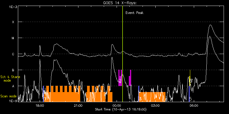 EIS Observation timeline overlay to GOES-Xray curve Code 1" 2" 40" 266" EIS Observations list for this event: STUDY ACRONYM ID DATE OBSERVED DESCRIPTION NOAA# TARGET 0 PRY_slot_contextLITE | 32895 | 2013/04/10 18:15:20 | EIS/AIA Alignment Check | | Active Region TIMELINE ID DATE OBSERVED FITS FILE XCEN (+W/-E) YCEN (+N/-S) DUR ----------------------------------------------------------------------------------------------------------------- 32895 | 2013/04/10 18:15:20.000 | eis_l0_20130410_181520.fits.gz | -243.17 | -630.69 | 2m56s 1 XBP_OBS_SI006 | 32896 | 2013/04/10 18:21:03 | Moderate cadence/FOV slit scans for HO | | Quiet Sun TIMELINE ID DATE OBSERVED FITS FILE XCEN (+W/-E) YCEN (+N/-S) DUR ----------------------------------------------------------------------------------------------------------------- 32896 | 2013/04/10 18:21:03.000 | eis_l0_20130410_182103.fits.gz | -227.81 | -630.53 | 10m32s 32896 | 2013/04/10 18:31:38.000 | eis_l0_20130410_183138.fits.gz | -226.89 | -630.38 | 10m32s 32896 | 2013/04/10 18:42:13.000 | eis_l0_20130410_184213.fits.gz | -225.96 | -630.45 | 10m32s 32896 | 2013/04/10 18:52:48.000 | eis_l0_20130410_185248.fits.gz | -225.03 | -630.30 | 10m32s 32896 | 2013/04/10 19:03:23.000 | eis_l0_20130410_190323.fits.gz | -224.18 | -630.30 | 10m32s 32896 | 2013/04/10 19:13:59.000 | eis_l0_20130410_191359.fits.gz | -223.26 | -630.38 | 10m31s 32896 | 2013/04/10 19:24:33.000 | eis_l0_20130410_192433.fits.gz | -222.25 | -630.30 | 10m33s 32896 | 2013/04/10 19:35:09.000 | eis_l0_20130410_193509.fits.gz | -221.25 | -630.22 | 10m32s 32896 | 2013/04/10 19:45:44.000 | eis_l0_20130410_194544.fits.gz | -220.40 | -630.22 | 10m32s 32896 | 2013/04/10 19:56:19.000 | eis_l0_20130410_195619.fits.gz | -219.47 | -630.22 | 10m32s 32896 | 2013/04/10 20:06:54.000 | eis_l0_20130410_200654.fits.gz | -218.47 | -630.22 | 10m32s 32896 | 2013/04/10 20:17:29.000 | eis_l0_20130410_201729.fits.gz | -217.62 | -630.22 | 10m32s 32896 | 2013/04/10 20:28:04.000 | eis_l0_20130410_202804.fits.gz | -216.61 | -630.07 | 10m32s 32896 | 2013/04/10 20:38:40.000 | eis_l0_20130410_203840.fits.gz | -215.76 | -629.91 | 10m32s 32896 | 2013/04/10 20:49:15.000 | eis_l0_20130410_204915.fits.gz | -214.76 | -630.15 | 10m32s 32896 | 2013/04/10 20:59:50.000 | eis_l0_20130410_205950.fits.gz | -213.75 | -629.99 | 7m54s 32896 | 2013/04/10 21:37:56.000 | eis_l0_20130410_213756.fits.gz | -210.43 | -629.91 | 4m12s 32896 | 2013/04/10 21:42:11.000 | eis_l0_20130410_214211.fits.gz | -210.12 | -629.84 | 10m32s 32896 | 2013/04/10 21:52:46.000 | eis_l0_20130410_215246.fits.gz | -209.12 | -629.76 | 10m32s 32896 | 2013/04/10 22:03:21.000 | eis_l0_20130410_220321.fits.gz | -208.19 | -629.84 | 10m32s 32896 | 2013/04/10 22:13:56.000 | eis_l0_20130410_221356.fits.gz | -207.26 | -629.76 | 10m33s 32896 | 2013/04/10 22:24:32.000 | eis_l0_20130410_222432.fits.gz | -206.26 | -629.84 | 10m32s 32896 | 2013/04/10 22:35:07.000 | eis_l0_20130410_223507.fits.gz | -205.33 | -629.76 | 10m32s 32896 | 2013/04/10 22:45:42.000 | eis_l0_20130410_224542.fits.gz | -204.41 | -629.76 | 10m32s 32896 | 2013/04/10 22:56:17.000 | eis_l0_20130410_225617.fits.gz | -203.48 | -629.68 | 10m1s 32896 | 2013/04/10 23:17:28.000 | eis_l0_20130410_231728.fits.gz | -201.63 | -629.68 | 10m32s 32896 | 2013/04/10 23:28:03.000 | eis_l0_20130410_232803.fits.gz | -200.62 | -629.60 | 10m32s 2 HPW023_FULLCCD_300s | 32897 | 2013/04/11 00:07:26 | Test of Off-limb Calibration & Long Ex | | Quiet Sun TIMELINE ID DATE OBSERVED FITS FILE XCEN (+W/-E) YCEN (+N/-S) DUR ----------------------------------------------------------------------------------------------------------------- 32897 | 2013/04/11 00:07:26.000 | eis_l0_20130411_000726.fits.gz | 982.90 | -0.42 | 5m 32897 | 2013/04/11 00:12:54.000 | eis_l0_20130411_001254.fits.gz | 982.90 | -0.42 | 5m 32897 | 2013/04/11 00:18:21.000 | eis_l0_20130411_001821.fits.gz | 982.90 | -0.42 | 5m 32897 | 2013/04/11 00:56:32.000 | eis_l0_20130411_005632.fits.gz | 982.98 | -0.42 | 5m 32897 | 2013/04/11 01:01:59.000 | eis_l0_20130411_010159.fits.gz | 982.98 | -0.42 | 5m 3 PRY_slot_context_v3 | 32898 | 2013/04/11 01:41:03 | Context Image for Spectral Atlas | 1714 | Active Region TIMELINE ID DATE OBSERVED FITS FILE XCEN (+W/-E) YCEN (+N/-S) DUR ----------------------------------------------------------------------------------------------------------------- 32898 | 2013/04/11 01:41:03.000 | eis_l0_20130411_014103.fits.gz | 413.51 | 185.13 | 2m56s 4 Atlas_120 | 32899 | 2013/04/11 01:44:25 | Spectral Atlas Synoptic Programme | | Quiet Sun TIMELINE ID DATE OBSERVED FITS FILE XCEN (+W/-E) YCEN (+N/-S) DUR ----------------------------------------------------------------------------------------------------------------- 32899 | 2013/04/11 01:44:25.000 | eis_l0_20130411_014425.fits.gz | 428.64 | 185.20 | 2h1m39s 5 PRY_slot_contextLITE | 32888 | 2013/04/11 05:36:19 | EIS/AIA Alignment Check | 1717 | Active Region TIMELINE ID DATE OBSERVED FITS FILE XCEN (+W/-E) YCEN (+N/-S) DUR ----------------------------------------------------------------------------------------------------------------- 32888 | 2013/04/11 05:36:19.000 | eis_l0_20130411_053619.fits.gz | -15.37 | -0.58 | 2m56s 6 Alignment_266 | 32889 | 2013/04/11 05:39:33 | EIS/AIA Alignment Check | | Quiet Sun TIMELINE ID DATE OBSERVED FITS FILE XCEN (+W/-E) YCEN (+N/-S) DUR ----------------------------------------------------------------------------------------------------------------- 32889 | 2013/04/11 05:39:33.000 | eis_l0_20130411_053933.fits.gz | -132.57 | -0.42 | 1m22s 7 XRT_synop_AIA | 32890 | 2013/04/11 05:41:41 | EIS/AIA Alignment Check | | Quiet Sun TIMELINE ID DATE OBSERVED FITS FILE XCEN (+W/-E) YCEN (+N/-S) DUR ----------------------------------------------------------------------------------------------------------------- 32890 | 2013/04/11 05:41:41.000 | eis_l0_20130411_054141.fits.gz | -132.49 | -0.58 | 10s : Check study information : Download file : View thumbnails For this event, also check for: