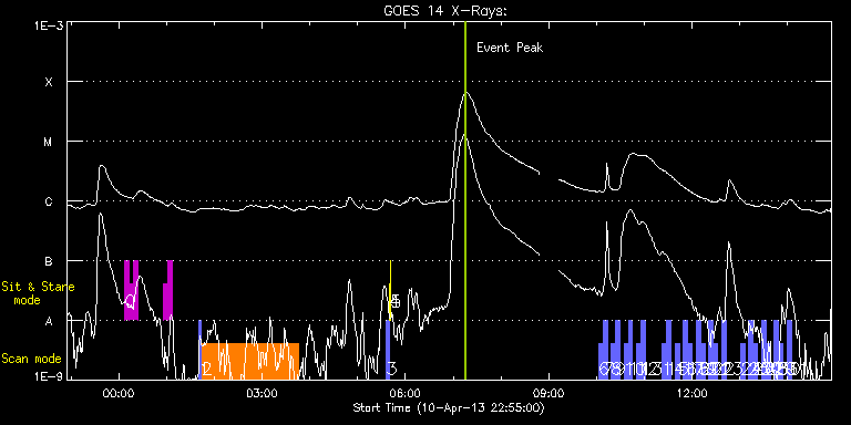 EIS Observation timeline overlay to GOES-Xray curve Code 1" 2" 40" 266" EIS Observations list for this event: STUDY ACRONYM ID DATE OBSERVED DESCRIPTION NOAA# TARGET 0 HPW023_FULLCCD_300s | 32897 | 2013/04/11 00:07:26 | Test of Off-limb Calibration & Long Ex | | Quiet Sun TIMELINE ID DATE OBSERVED FITS FILE XCEN (+W/-E) YCEN (+N/-S) DUR ----------------------------------------------------------------------------------------------------------------- 32897 | 2013/04/11 00:07:26.000 | eis_l0_20130411_000726.fits.gz | 982.90 | -0.42 | 5m 32897 | 2013/04/11 00:12:54.000 | eis_l0_20130411_001254.fits.gz | 982.90 | -0.42 | 5m 32897 | 2013/04/11 00:18:21.000 | eis_l0_20130411_001821.fits.gz | 982.90 | -0.42 | 5m 32897 | 2013/04/11 00:56:32.000 | eis_l0_20130411_005632.fits.gz | 982.98 | -0.42 | 5m 32897 | 2013/04/11 01:01:59.000 | eis_l0_20130411_010159.fits.gz | 982.98 | -0.42 | 5m 1 PRY_slot_context_v3 | 32898 | 2013/04/11 01:41:03 | Context Image for Spectral Atlas | 1714 | Active Region TIMELINE ID DATE OBSERVED FITS FILE XCEN (+W/-E) YCEN (+N/-S) DUR ----------------------------------------------------------------------------------------------------------------- 32898 | 2013/04/11 01:41:03.000 | eis_l0_20130411_014103.fits.gz | 413.51 | 185.13 | 2m56s 2 Atlas_120 | 32899 | 2013/04/11 01:44:25 | Spectral Atlas Synoptic Programme | | Quiet Sun TIMELINE ID DATE OBSERVED FITS FILE XCEN (+W/-E) YCEN (+N/-S) DUR ----------------------------------------------------------------------------------------------------------------- 32899 | 2013/04/11 01:44:25.000 | eis_l0_20130411_014425.fits.gz | 428.64 | 185.20 | 2h1m39s 3 PRY_slot_contextLITE | 32888 | 2013/04/11 05:36:19 | EIS/AIA Alignment Check | 1717 | Active Region TIMELINE ID DATE OBSERVED FITS FILE XCEN (+W/-E) YCEN (+N/-S) DUR ----------------------------------------------------------------------------------------------------------------- 32888 | 2013/04/11 05:36:19.000 | eis_l0_20130411_053619.fits.gz | -15.37 | -0.58 | 2m56s 4 Alignment_266 | 32889 | 2013/04/11 05:39:33 | EIS/AIA Alignment Check | | Quiet Sun TIMELINE ID DATE OBSERVED FITS FILE XCEN (+W/-E) YCEN (+N/-S) DUR ----------------------------------------------------------------------------------------------------------------- 32889 | 2013/04/11 05:39:33.000 | eis_l0_20130411_053933.fits.gz | -132.57 | -0.42 | 1m22s 5 XRT_synop_AIA | 32890 | 2013/04/11 05:41:41 | EIS/AIA Alignment Check | | Quiet Sun TIMELINE ID DATE OBSERVED FITS FILE XCEN (+W/-E) YCEN (+N/-S) DUR ----------------------------------------------------------------------------------------------------------------- 32890 | 2013/04/11 05:41:41.000 | eis_l0_20130411_054141.fits.gz | -132.49 | -0.58 | 10s 6 full_sun_slot_scan_2 | 32936 | 2013/04/11 10:02:27 | Full Sun Scan | 1713 | Quiet Sun TIMELINE ID DATE OBSERVED FITS FILE XCEN (+W/-E) YCEN (+N/-S) DUR ----------------------------------------------------------------------------------------------------------------- 32936 | 2013/04/11 10:02:27.000 | eis_l0_20130411_100227.fits.gz | 920.72 | 185.58 | 5m27s 7 full_sun_slot_scan_2 | 32937 | 2013/04/11 10:08:27 | Full Sun Scan | 1711 | Quiet Sun TIMELINE ID DATE OBSERVED FITS FILE XCEN (+W/-E) YCEN (+N/-S) DUR ----------------------------------------------------------------------------------------------------------------- 32937 | 2013/04/11 10:08:27.000 | eis_l0_20130411_100827.fits.gz | 920.80 | -286.58 | 5m26s 8 full_sun_slot_scan_2 | 32938 | 2013/04/11 10:18:14 | Full Sun Scan | 1714 | Quiet Sun TIMELINE ID DATE OBSERVED FITS FILE XCEN (+W/-E) YCEN (+N/-S) DUR ----------------------------------------------------------------------------------------------------------------- 32938 | 2013/04/11 10:18:14.000 | eis_l0_20130411_101814.fits.gz | 452.68 | 185.50 | 5m27s 9 full_sun_slot_scan_2 | 32939 | 2013/04/11 10:23:46 | Full Sun Scan | 1716 | Quiet Sun TIMELINE ID DATE OBSERVED FITS FILE XCEN (+W/-E) YCEN (+N/-S) DUR ----------------------------------------------------------------------------------------------------------------- 32939 | 2013/04/11 10:23:46.000 | eis_l0_20130411_102346.fits.gz | 452.83 | -286.50 | 5m27s 10 full_sun_slot_scan_2 | 32940 | 2013/04/11 10:34:14 | Full Sun Scan | 1717 | Quiet Sun TIMELINE ID DATE OBSERVED FITS FILE XCEN (+W/-E) YCEN (+N/-S) DUR ----------------------------------------------------------------------------------------------------------------- 32940 | 2013/04/11 10:34:14.000 | eis_l0_20130411_103414.fits.gz | -15.37 | 185.58 | 5m27s 11 full_sun_slot_scan_2 | 32941 | 2013/04/11 10:39:46 | Full Sun Scan | 1717 | Quiet Sun TIMELINE ID DATE OBSERVED FITS FILE XCEN (+W/-E) YCEN (+N/-S) DUR ----------------------------------------------------------------------------------------------------------------- 32941 | 2013/04/11 10:39:46.000 | eis_l0_20130411_103946.fits.gz | -15.29 | -286.50 | 5m26s 12 full_sun_slot_scan_2 | 32942 | 2013/04/11 10:50:14 | Full Sun Scan | | Quiet Sun TIMELINE ID DATE OBSERVED FITS FILE XCEN (+W/-E) YCEN (+N/-S) DUR ----------------------------------------------------------------------------------------------------------------- 32942 | 2013/04/11 10:50:14.000 | eis_l0_20130411_105014.fits.gz | -483.33 | 185.58 | 5m27s 13 full_sun_slot_scan_2 | 32943 | 2013/04/11 10:55:46 | Full Sun Scan | 1721 | Quiet Sun TIMELINE ID DATE OBSERVED FITS FILE XCEN (+W/-E) YCEN (+N/-S) DUR ----------------------------------------------------------------------------------------------------------------- 32943 | 2013/04/11 10:55:46.000 | eis_l0_20130411_105546.fits.gz | -483.18 | -286.50 | 5m26s 14 full_sun_slot_scan_2 | 32944 | 2013/04/11 11:22:44 | Full Sun Scan | | Quiet Sun TIMELINE ID DATE OBSERVED FITS FILE XCEN (+W/-E) YCEN (+N/-S) DUR ----------------------------------------------------------------------------------------------------------------- 32944 | 2013/04/11 11:22:44.000 | eis_l0_20130411_112244.fits.gz | -9884.69 | -9777.20 | 5m26s 15 full_sun_slot_scan_2 | 32945 | 2013/04/11 1