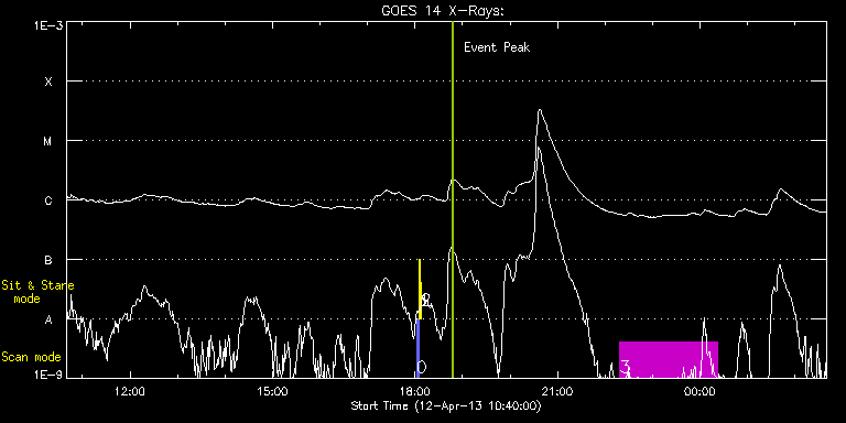 EIS Observation timeline overlay to GOES-Xray curve Code 1" 2" 40" 266" EIS Observations list for this event: STUDY ACRONYM ID DATE OBSERVED DESCRIPTION NOAA# TARGET 0 PRY_slot_contextLITE | 32930 | 2013/04/12 18:02:19 | EIS/AIA Alignment Check | 1721 | Active Region TIMELINE ID DATE OBSERVED FITS FILE XCEN (+W/-E) YCEN (+N/-S) DUR ----------------------------------------------------------------------------------------------------------------- 32930 | 2013/04/12 18:02:19.000 | eis_l0_20130412_180219.fits.gz | -15.29 | -0.58 | 2m57s 1 Alignment_266 | 32931 | 2013/04/12 18:05:34 | EIS/AIA Alignment Check | 1721 | Quiet Sun TIMELINE ID DATE OBSERVED FITS FILE XCEN (+W/-E) YCEN (+N/-S) DUR ----------------------------------------------------------------------------------------------------------------- 32931 | 2013/04/12 18:05:34.000 | eis_l0_20130412_180534.fits.gz | -132.49 | -0.42 | 1m22s 2 XRT_synop_AIA | 32932 | 2013/04/12 18:07:41 | EIS/AIA Alignment Check | 1721 | Quiet Sun TIMELINE ID DATE OBSERVED FITS FILE XCEN (+W/-E) YCEN (+N/-S) DUR ----------------------------------------------------------------------------------------------------------------- 32932 | 2013/04/12 18:07:41.000 | eis_l0_20130412_180741.fits.gz | -132.49 | -0.58 | 10s 3 HPW021_VEL_240x512v1 | 32962 | 2013/04/12 22:19:03 | Scan of Active Region | 1718 | Active Region TIMELINE ID DATE OBSERVED FITS FILE XCEN (+W/-E) YCEN (+N/-S) DUR ----------------------------------------------------------------------------------------------------------------- 32962 | 2013/04/12 22:19:03.000 | eis_l0_20130412_221903.fits.gz | 610.64 | 399.72 | 2h3m47s : Check study information : Download file : View thumbnails For this event, also check for:
