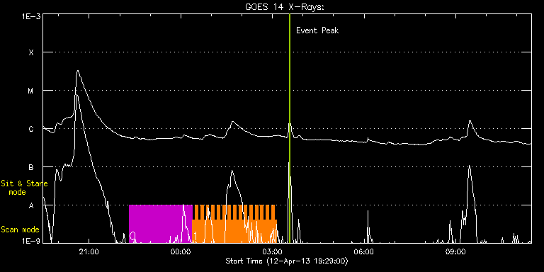 EIS Observation timeline overlay to GOES-Xray curve Code 1" 2" 40" 266" EIS Observations list for this event: STUDY ACRONYM ID DATE OBSERVED DESCRIPTION NOAA# TARGET 0 HPW021_VEL_240x512v1 | 32962 | 2013/04/12 22:19:03 | Scan of Active Region | 1718 | Active Region TIMELINE ID DATE OBSERVED FITS FILE XCEN (+W/-E) YCEN (+N/-S) DUR ----------------------------------------------------------------------------------------------------------------- 32962 | 2013/04/12 22:19:03.000 | eis_l0_20130412_221903.fits.gz | 610.64 | 399.72 | 2h3m47s 1 HH_Flare+AR_180x152 | 32963 | 2013/04/13 00:23:09 | Flare Observations | 1718 | Flare TIMELINE ID DATE OBSERVED FITS FILE XCEN (+W/-E) YCEN (+N/-S) DUR ----------------------------------------------------------------------------------------------------------------- 32963 | 2013/04/13 00:23:09.000 | eis_l0_20130413_002309.fits.gz | 621.48 | 398.17 | 5m18s 32963 | 2013/04/13 00:28:30.000 | eis_l0_20130413_002830.fits.gz | 621.94 | 398.33 | 5m18s 32963 | 2013/04/13 00:33:51.000 | eis_l0_20130413_003351.fits.gz | 622.56 | 398.25 | 5m18s 32963 | 2013/04/13 00:39:12.000 | eis_l0_20130413_003912.fits.gz | 623.10 | 398.17 | 5m18s 32963 | 2013/04/13 00:44:32.000 | eis_l0_20130413_004432.fits.gz | 623.72 | 398.10 | 5m18s 32963 | 2013/04/13 00:49:53.000 | eis_l0_20130413_004953.fits.gz | 624.18 | 398.02 | 5m18s 32963 | 2013/04/13 00:55:14.000 | eis_l0_20130413_005514.fits.gz | 624.72 | 397.94 | 5m17s 32963 | 2013/04/13 01:00:34.000 | eis_l0_20130413_010034.fits.gz | 625.18 | 397.87 | 5m18s 32963 | 2013/04/13 01:05:55.000 | eis_l0_20130413_010555.fits.gz | 625.72 | 397.94 | 5m18s 32963 | 2013/04/13 01:11:16.000 | eis_l0_20130413_011116.fits.gz | 626.27 | 397.94 | 5m17s 32963 | 2013/04/13 01:16:36.000 | eis_l0_20130413_011636.fits.gz | 626.88 | 397.71 | 5m18s 32963 | 2013/04/13 01:21:57.000 | eis_l0_20130413_012157.fits.gz | 627.35 | 397.71 | 5m19s 32963 | 2013/04/13 01:27:18.000 | eis_l0_20130413_012718.fits.gz | 627.97 | 397.56 | 5m17s 32963 | 2013/04/13 01:32:38.000 | eis_l0_20130413_013238.fits.gz | 628.51 | 397.63 | 5m19s 32963 | 2013/04/13 01:38:00.000 | eis_l0_20130413_013800.fits.gz | 629.05 | 397.56 | 5m18s 32963 | 2013/04/13 01:43:20.000 | eis_l0_20130413_014320.fits.gz | 629.59 | 397.48 | 5m19s 32963 | 2013/04/13 01:48:41.000 | eis_l0_20130413_014841.fits.gz | 630.13 | 397.40 | 5m19s 32963 | 2013/04/13 01:54:03.000 | eis_l0_20130413_015403.fits.gz | 630.59 | 397.33 | 5m17s 32963 | 2013/04/13 01:59:23.000 | eis_l0_20130413_015923.fits.gz | 631.21 | 397.17 | 5m18s 32963 | 2013/04/13 02:04:43.000 | eis_l0_20130413_020443.fits.gz | 631.67 | 397.25 | 5m19s 32963 | 2013/04/13 02:10:05.000 | eis_l0_20130413_021005.fits.gz | 632.29 | 397.09 | 5m17s 32963 | 2013/04/13 02:15:25.000 | eis_l0_20130413_021525.fits.gz | 632.83 | 397.02 | 5m18s 32963 | 2013/04/13 02:20:45.000 | eis_l0_20130413_022045.fits.gz | 633.29 | 397.17 | 5m19s 32963 | 2013/04/13 02:26:07.000 | eis_l0_20130413_022607.fits.gz | 633.91 | 396.86 | 5m17s 32963 | 2013/04/13 02:31:27.000 | eis_l0_20130413_023127.fits.gz | 634.30 | 396.86 | 5m19s 32963 | 2013/04/13 02:36:49.000 | eis_l0_20130413_023649.fits.gz | 634.99 | 396.79 | 5m17s 32963 | 2013/04/13 02:42:09.000 | eis_l0_20130413_024209.fits.gz | 635.46 | 396.94 | 5m17s 32963 | 2013/04/13 02:47:29.000 | eis_l0_20130413_024729.fits.gz | 636.00 | 396.71 | 5m18s 32963 | 2013/04/13 02:52:50.000 | eis_l0_20130413_025250.fits.gz | 636.62 | 396.71 | 5m17s 32963 | 2013/04/13 02:58:10.000 | eis_l0_20130413_025810.fits.gz | 637.16 | 396.71 | 5m17s 32963 | 2013/04/13 03:03:30.000 | eis_l0_20130413_030330.fits.gz | 637.62 | 396.63 | 5m18s : Check study information : Download file : View thumbnails For this event, also check for: