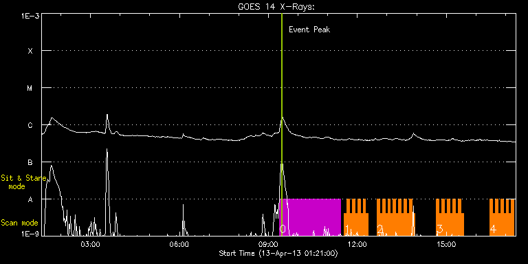 EIS Observation timeline overlay to GOES-Xray curve Code 1" 2" 40" 266" EIS Observations list for this event: STUDY ACRONYM ID DATE OBSERVED DESCRIPTION NOAA# TARGET 0 HPW021_VEL_240x512v1 | 32967 | 2013/04/13 09:22:42 | emerging AR 11721 raster scan obs. | 1721 | Active Region TIMELINE ID DATE OBSERVED FITS FILE XCEN (+W/-E) YCEN (+N/-S) DUR ----------------------------------------------------------------------------------------------------------------- 32967 | 2013/04/13 09:22:42.000 | eis_l0_20130413_092242.fits.gz | -122.92 | -249.32 | 2h3m47s 1 IUU_SCAN_STEPS_002 | 32968 | 2013/04/13 11:33:27 | emerging AR 11721 obs | 1722 | Active Region TIMELINE ID DATE OBSERVED FITS FILE XCEN (+W/-E) YCEN (+N/-S) DUR ----------------------------------------------------------------------------------------------------------------- 32968 | 2013/04/13 11:33:27.000 | eis_l0_20130413_113327.fits.gz | -25.42 | -249.24 | 5m23s 32968 | 2013/04/13 11:38:54.000 | eis_l0_20130413_113854.fits.gz | -24.65 | -249.39 | 5m23s 32968 | 2013/04/13 11:44:20.000 | eis_l0_20130413_114420.fits.gz | -23.95 | -249.24 | 5m24s 32968 | 2013/04/13 11:49:47.000 | eis_l0_20130413_114947.fits.gz | -23.18 | -249.24 | 5m24s 32968 | 2013/04/13 11:55:14.000 | eis_l0_20130413_115514.fits.gz | -22.25 | -249.39 | 5m23s 32968 | 2013/04/13 12:00:41.000 | eis_l0_20130413_120041.fits.gz | -21.48 | -249.24 | 5m23s 32968 | 2013/04/13 12:06:07.000 | eis_l0_20130413_120607.fits.gz | -20.86 | -249.32 | 5m24s 32968 | 2013/04/13 12:11:34.000 | eis_l0_20130413_121134.fits.gz | -20.01 | -249.32 | 5m24s 32968 | 2013/04/13 12:17:01.000 | eis_l0_20130413_121701.fits.gz | -19.24 | -249.24 | 5m24s 2 IUU_SCAN_STEPS_002 | 32969 | 2013/04/13 12:39:50 | emerging AR 11721 obs | | Active Region TIMELINE ID DATE OBSERVED FITS FILE XCEN (+W/-E) YCEN (+N/-S) DUR ----------------------------------------------------------------------------------------------------------------- 32969 | 2013/04/13 12:39:50.000 | eis_l0_20130413_123950.fits.gz | -15.92 | -249.08 | 5m24s 32969 | 2013/04/13 12:45:18.000 | eis_l0_20130413_124518.fits.gz | -15.30 | -249.16 | 5m23s 32969 | 2013/04/13 12:50:44.000 | eis_l0_20130413_125044.fits.gz | -14.53 | -249.08 | 5m24s 32969 | 2013/04/13 12:56:11.000 | eis_l0_20130413_125611.fits.gz | -13.68 | -249.24 | 5m24s 32969 | 2013/04/13 13:01:39.000 | eis_l0_20130413_130139.fits.gz | -12.75 | -249.24 | 5m23s 32969 | 2013/04/13 13:07:05.000 | eis_l0_20130413_130705.fits.gz | -12.13 | -249.16 | 5m24s 32969 | 2013/04/13 13:12:32.000 | eis_l0_20130413_131232.fits.gz | -11.36 | -249.16 | 5m24s 32969 | 2013/04/13 13:17:59.000 | eis_l0_20130413_131759.fits.gz | -10.59 | -249.32 | 5m23s 32969 | 2013/04/13 13:23:26.000 | eis_l0_20130413_132326.fits.gz | -9.74 | -249.32 | 5m23s 32969 | 2013/04/13 13:28:52.000 | eis_l0_20130413_132852.fits.gz | -9.04 | -249.32 | 5m24s 32969 | 2013/04/13 13:34:19.000 | eis_l0_20130413_133419.fits.gz | -8.27 | -249.39 | 5m24s 32969 | 2013/04/13 13:39:46.000 | eis_l0_20130413_133946.fits.gz | -7.42 | -249.24 | 5m23s 32969 | 2013/04/13 13:45:13.000 | eis_l0_20130413_134513.fits.gz | -6.72 | -249.32 | 5m23s 32969 | 2013/04/13 13:50:39.000 | eis_l0_20130413_135039.fits.gz | -5.95 | -249.39 | 5m24s 3 IUU_SCAN_STEPS_002 | 32970 | 2013/04/13 14:40:13 | emerging AR 11721 obs | | Active Region TIMELINE ID DATE OBSERVED FITS FILE XCEN (+W/-E) YCEN (+N/-S) DUR ----------------------------------------------------------------------------------------------------------------- 32970 | 2013/04/13 14:40:13.000 | eis_l0_20130413_144013.fits.gz | 1.08 | -249.39 | 5m24s 32970 | 2013/04/13 14:45:41.000 | eis_l0_20130413_144541.fits.gz | 1.93 | -249.32 | 5m23s 32970 | 2013/04/13 14:51:07.000 | eis_l0_20130413_145107.fits.gz | 2.62 | -249.32 | 5m24s 32970 | 2013/04/13 14:56:34.000 | eis_l0_20130413_145634.fits.gz | 3.39 | -249.24 | 5m24s 32970 | 2013/04/13 15:02:01.000 | eis_l0_20130413_150201.fits.gz | 4.09 | -249.39 | 5m23s 32970 | 2013/04/13 15:07:28.000 | eis_l0_20130413_150728.fits.gz | 4.94 | -249.32 | 5m23s 32970 | 2013/04/13 15:12:54.000 | eis_l0_20130413_151254.fits.gz | 5.71 | -249.55 | 5m24s 32970 | 2013/04/13 15:18:21.000 | eis_l0_20130413_151821.fits.gz | 6.48 | -249.39 | 5m24s 32970 | 2013/04/13 15:23:48.000 | eis_l0_20130413_152348.fits.gz | 7.33 | -249.39 | 5m23s 32970 | 2013/04/13 15:29:15.000 | eis_l0_20130413_152915.fits.gz | 8.11 | -249.24 | 5m23s 4 IUU_SCAN_STEPS_002 | 32971 | 2013/04/13 16:28:13 | emerging AR 11721 obs | | Active Region TIMELINE ID DATE OBSERVED FITS FILE XCEN (+W/-E) YCEN (+N/-S) DUR ----------------------------------------------------------------------------------------------------------------- 32971 | 2013/04/13 16:28:13.000 | eis_l0_20130413_162813.fits.gz | 16.45 | -249.39 | 5m24s 32971 | 2013/04/13 16:33:40.000 | eis_l0_20130413_163340.fits.gz | 17.22 | -249.62 | 5m24s 32971 | 2013/04/13 16:39:07.000 | eis_l0_20130413_163907.fits.gz | 17.99 | -249.39 | 5m24s 32971 | 2013/04/13 16:44:34.000 | eis_l0_20130413_164434.fits.gz | 18.69 | -249.55 | 5m24s 32971 | 2013/04/13 16:50:01.000 | eis_l0_20130413_165001.fits.gz | 19.54 | -249.70 | 5m24s 32971 | 2013/04/13 16:55:28.000 | eis_l0_20130413_165528.fits.gz | 20.39 | -249.55 | 5m24s 32971 | 2013/04/13 17:00:55.000 | eis_l0_20130413_170055.fits.gz | 21.16 | -249.55 | 5m23s 32971 | 2013/04/13 17:06:22.000 | eis_l0_20130413_170622.fits.gz | 21.86 | -249.47 | 5m23s 32971 | 2013/04/13 17:11:48.000 | eis_l0_20130413_171148.fits.gz | 22.63 | -249.55 | 5m24s : Check study information : Download file : View thumbnails For this event, also check for: