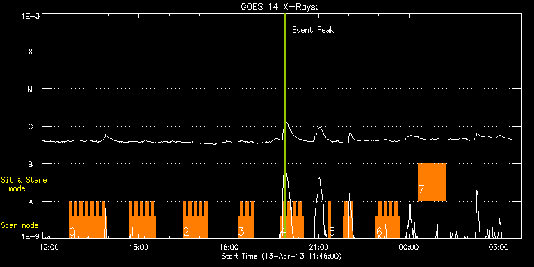EIS Observation timeline overlay to GOES-Xray curve Code 1" 2" 40" 266" EIS Observations list for this event: STUDY ACRONYM ID DATE OBSERVED DESCRIPTION NOAA# TARGET 0 IUU_SCAN_STEPS_002 | 32969 | 2013/04/13 12:39:50 | emerging AR 11721 obs | | Active Region TIMELINE ID DATE OBSERVED FITS FILE XCEN (+W/-E) YCEN (+N/-S) DUR ----------------------------------------------------------------------------------------------------------------- 32969 | 2013/04/13 12:39:50.000 | eis_l0_20130413_123950.fits.gz | -15.92 | -249.08 | 5m24s 32969 | 2013/04/13 12:45:18.000 | eis_l0_20130413_124518.fits.gz | -15.30 | -249.16 | 5m23s 32969 | 2013/04/13 12:50:44.000 | eis_l0_20130413_125044.fits.gz | -14.53 | -249.08 | 5m24s 32969 | 2013/04/13 12:56:11.000 | eis_l0_20130413_125611.fits.gz | -13.68 | -249.24 | 5m24s 32969 | 2013/04/13 13:01:39.000 | eis_l0_20130413_130139.fits.gz | -12.75 | -249.24 | 5m23s 32969 | 2013/04/13 13:07:05.000 | eis_l0_20130413_130705.fits.gz | -12.13 | -249.16 | 5m24s 32969 | 2013/04/13 13:12:32.000 | eis_l0_20130413_131232.fits.gz | -11.36 | -249.16 | 5m24s 32969 | 2013/04/13 13:17:59.000 | eis_l0_20130413_131759.fits.gz | -10.59 | -249.32 | 5m23s 32969 | 2013/04/13 13:23:26.000 | eis_l0_20130413_132326.fits.gz | -9.74 | -249.32 | 5m23s 32969 | 2013/04/13 13:28:52.000 | eis_l0_20130413_132852.fits.gz | -9.04 | -249.32 | 5m24s 32969 | 2013/04/13 13:34:19.000 | eis_l0_20130413_133419.fits.gz | -8.27 | -249.39 | 5m24s 32969 | 2013/04/13 13:39:46.000 | eis_l0_20130413_133946.fits.gz | -7.42 | -249.24 | 5m23s 32969 | 2013/04/13 13:45:13.000 | eis_l0_20130413_134513.fits.gz | -6.72 | -249.32 | 5m23s 32969 | 2013/04/13 13:50:39.000 | eis_l0_20130413_135039.fits.gz | -5.95 | -249.39 | 5m24s 1 IUU_SCAN_STEPS_002 | 32970 | 2013/04/13 14:40:13 | emerging AR 11721 obs | | Active Region TIMELINE ID DATE OBSERVED FITS FILE XCEN (+W/-E) YCEN (+N/-S) DUR ----------------------------------------------------------------------------------------------------------------- 32970 | 2013/04/13 14:40:13.000 | eis_l0_20130413_144013.fits.gz | 1.08 | -249.39 | 5m24s 32970 | 2013/04/13 14:45:41.000 | eis_l0_20130413_144541.fits.gz | 1.93 | -249.32 | 5m23s 32970 | 2013/04/13 14:51:07.000 | eis_l0_20130413_145107.fits.gz | 2.62 | -249.32 | 5m24s 32970 | 2013/04/13 14:56:34.000 | eis_l0_20130413_145634.fits.gz | 3.39 | -249.24 | 5m24s 32970 | 2013/04/13 15:02:01.000 | eis_l0_20130413_150201.fits.gz | 4.09 | -249.39 | 5m23s 32970 | 2013/04/13 15:07:28.000 | eis_l0_20130413_150728.fits.gz | 4.94 | -249.32 | 5m23s 32970 | 2013/04/13 15:12:54.000 | eis_l0_20130413_151254.fits.gz | 5.71 | -249.55 | 5m24s 32970 | 2013/04/13 15:18:21.000 | eis_l0_20130413_151821.fits.gz | 6.48 | -249.39 | 5m24s 32970 | 2013/04/13 15:23:48.000 | eis_l0_20130413_152348.fits.gz | 7.33 | -249.39 | 5m23s 32970 | 2013/04/13 15:29:15.000 | eis_l0_20130413_152915.fits.gz | 8.11 | -249.24 | 5m23s 2 IUU_SCAN_STEPS_002 | 32971 | 2013/04/13 16:28:13 | emerging AR 11721 obs | | Active Region TIMELINE ID DATE OBSERVED FITS FILE XCEN (+W/-E) YCEN (+N/-S) DUR ----------------------------------------------------------------------------------------------------------------- 32971 | 2013/04/13 16:28:13.000 | eis_l0_20130413_162813.fits.gz | 16.45 | -249.39 | 5m24s 32971 | 2013/04/13 16:33:40.000 | eis_l0_20130413_163340.fits.gz | 17.22 | -249.62 | 5m24s 32971 | 2013/04/13 16:39:07.000 | eis_l0_20130413_163907.fits.gz | 17.99 | -249.39 | 5m24s 32971 | 2013/04/13 16:44:34.000 | eis_l0_20130413_164434.fits.gz | 18.69 | -249.55 | 5m24s 32971 | 2013/04/13 16:50:01.000 | eis_l0_20130413_165001.fits.gz | 19.54 | -249.70 | 5m24s 32971 | 2013/04/13 16:55:28.000 | eis_l0_20130413_165528.fits.gz | 20.39 | -249.55 | 5m24s 32971 | 2013/04/13 17:00:55.000 | eis_l0_20130413_170055.fits.gz | 21.16 | -249.55 | 5m23s 32971 | 2013/04/13 17:06:22.000 | eis_l0_20130413_170622.fits.gz | 21.86 | -249.47 | 5m23s 32971 | 2013/04/13 17:11:48.000 | eis_l0_20130413_171148.fits.gz | 22.63 | -249.55 | 5m24s 3 HH_Flare+AR_180x152 | 32984 | 2013/04/13 18:17:46 | AR 11718 obs | 1718 | Flare TIMELINE ID DATE OBSERVED FITS FILE XCEN (+W/-E) YCEN (+N/-S) DUR ----------------------------------------------------------------------------------------------------------------- 32984 | 2013/04/13 18:17:46.000 | eis_l0_20130413_181746.fits.gz | 721.59 | 385.97 | 5m19s 32984 | 2013/04/13 18:23:07.000 | eis_l0_20130413_182307.fits.gz | 721.98 | 385.82 | 5m18s 32984 | 2013/04/13 18:28:28.000 | eis_l0_20130413_182828.fits.gz | 722.52 | 385.74 | 5m17s 32984 | 2013/04/13 18:33:48.000 | eis_l0_20130413_183348.fits.gz | 722.90 | 385.58 | 5m18s 32984 | 2013/04/13 18:39:09.000 | eis_l0_20130413_183909.fits.gz | 723.44 | 385.66 | 5m17s 32984 | 2013/04/13 18:44:29.000 | eis_l0_20130413_184429.fits.gz | 723.83 | 385.51 | 5m18s 4 HH_Flare+AR_180x152 | 33006 | 2013/04/13 19:41:43 | AR 11718 obs | 1718 | Flare TIMELINE ID DATE OBSERVED FITS FILE XCEN (+W/-E) YCEN (+N/-S) DUR ----------------------------------------------------------------------------------------------------------------- 33006 | 2013/04/13 19:41:43.000 | eis_l0_20130413_194143.fits.gz | 728.62 | 384.89 | 5m19s 33006 | 2013/04/13 19:47:05.000 | eis_l0_20130413_194705.fits.gz | 729.01 | 384.89 | 5m17s 33006 | 2013/04/13 19:52:25.000 | eis_l0_20130413_195225.fits.gz | 729.47 | 384.81 | 5m18s 33006 | 2013/04/13 19:57:46.000 | eis_l0_20130413_195746.fits.gz | 729.93 | 384.66 | 5m18s 33006 | 2013/04/13 20:03:07.000 | eis_l0_20130413_200307.fits.gz | 730.40 | 384.42 | 5m17s 33006 | 2013/04/13 20:08:27.000 | eis_l0_20130413_200827.fits.gz | 730.71 | 384.50 | 5m18s 33006 | 2013/04/13 20:13:48.000 | eis_l0_20130413_201348.fits.gz | 731.24 | 384.42 | 5m18s 33006 | 2013/04/13 20:19:09.000 | eis_l0_20130413_201909.fits.gz | 731.63 | 384.27 | 5m17s 33006 | 2013/04/13 20:24:29.000 | eis_l0_20130413_202429.fits.gz | 732.17 | 384.35 | 5m18s 5 HH_Flare+AR_180x152 | 33007 | 2013/04/13 21:19:13 | AR 11718 obs | 1718 | Flare TIMELINE ID DATE OBSERVED FITS FILE XCEN (+
