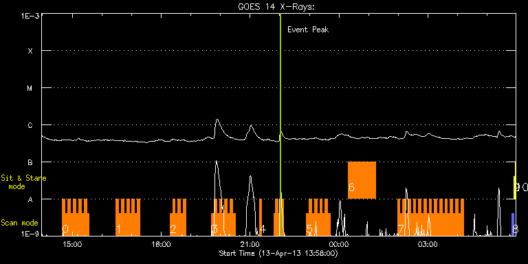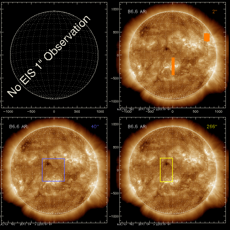 EIS Observation timeline overlay to GOES-Xray curve Code 1" 2" 40" 266" EIS Observations list for this event: STUDY ACRONYM ID DATE OBSERVED DESCRIPTION NOAA# TARGET 0 IUU_SCAN_STEPS_002 | 32970 | 2013/04/13 14:40:13 | emerging AR 11721 obs | | Active Region TIMELINE ID DATE OBSERVED FITS FILE XCEN (+W/-E) YCEN (+N/-S) DUR ----------------------------------------------------------------------------------------------------------------- 32970 | 2013/04/13 14:40:13.000 | eis_l0_20130413_144013.fits.gz | 1.08 | -249.39 | 5m24s 32970 | 2013/04/13 14:45:41.000 | eis_l0_20130413_144541.fits.gz | 1.93 | -249.32 | 5m23s 32970 | 2013/04/13 14:51:07.000 | eis_l0_20130413_145107.fits.gz | 2.62 | -249.32 | 5m24s 32970 | 2013/04/13 14:56:34.000 | eis_l0_20130413_145634.fits.gz | 3.39 | -249.24 | 5m24s 32970 | 2013/04/13 15:02:01.000 | eis_l0_20130413_150201.fits.gz | 4.09 | -249.39 | 5m23s 32970 | 2013/04/13 15:07:28.000 | eis_l0_20130413_150728.fits.gz | 4.94 | -249.32 | 5m23s 32970 | 2013/04/13 15:12:54.000 | eis_l0_20130413_151254.fits.gz | 5.71 | -249.55 | 5m24s 32970 | 2013/04/13 15:18:21.000 | eis_l0_20130413_151821.fits.gz | 6.48 | -249.39 | 5m24s 32970 | 2013/04/13 15:23:48.000 | eis_l0_20130413_152348.fits.gz | 7.33 | -249.39 | 5m23s 32970 | 2013/04/13 15:29:15.000 | eis_l0_20130413_152915.fits.gz | 8.11 | -249.24 | 5m23s 1 IUU_SCAN_STEPS_002 | 32971 | 2013/04/13 16:28:13 | emerging AR 11721 obs | | Active Region TIMELINE ID DATE OBSERVED FITS FILE XCEN (+W/-E) YCEN (+N/-S) DUR ----------------------------------------------------------------------------------------------------------------- 32971 | 2013/04/13 16:28:13.000 | eis_l0_20130413_162813.fits.gz | 16.45 | -249.39 | 5m24s 32971 | 2013/04/13 16:33:40.000 | eis_l0_20130413_163340.fits.gz | 17.22 | -249.62 | 5m24s 32971 | 2013/04/13 16:39:07.000 | eis_l0_20130413_163907.fits.gz | 17.99 | -249.39 | 5m24s 32971 | 2013/04/13 16:44:34.000 | eis_l0_20130413_164434.fits.gz | 18.69 | -249.55 | 5m24s 32971 | 2013/04/13 16:50:01.000 | eis_l0_20130413_165001.fits.gz | 19.54 | -249.70 | 5m24s 32971 | 2013/04/13 16:55:28.000 | eis_l0_20130413_165528.fits.gz | 20.39 | -249.55 | 5m24s 32971 | 2013/04/13 17:00:55.000 | eis_l0_20130413_170055.fits.gz | 21.16 | -249.55 | 5m23s 32971 | 2013/04/13 17:06:22.000 | eis_l0_20130413_170622.fits.gz | 21.86 | -249.47 | 5m23s 32971 | 2013/04/13 17:11:48.000 | eis_l0_20130413_171148.fits.gz | 22.63 | -249.55 | 5m24s 2 HH_Flare+AR_180x152 | 32984 | 2013/04/13 18:17:46 | AR 11718 obs | 1718 | Flare TIMELINE ID DATE OBSERVED FITS FILE XCEN (+W/-E) YCEN (+N/-S) DUR ----------------------------------------------------------------------------------------------------------------- 32984 | 2013/04/13 18:17:46.000 | eis_l0_20130413_181746.fits.gz | 721.59 | 385.97 | 5m19s 32984 | 2013/04/13 18:23:07.000 | eis_l0_20130413_182307.fits.gz | 721.98 | 385.82 | 5m18s 32984 | 2013/04/13 18:28:28.000 | eis_l0_20130413_182828.fits.gz | 722.52 | 385.74 | 5m17s 32984 | 2013/04/13 18:33:48.000 | eis_l0_20130413_183348.fits.gz | 722.90 | 385.58 | 5m18s 32984 | 2013/04/13 18:39:09.000 | eis_l0_20130413_183909.fits.gz | 723.44 | 385.66 | 5m17s 32984 | 2013/04/13 18:44:29.000 | eis_l0_20130413_184429.fits.gz | 723.83 | 385.51 | 5m18s 3 HH_Flare+AR_180x152 | 33006 | 2013/04/13 19:41:43 | AR 11718 obs | 1718 | Flare TIMELINE ID DATE OBSERVED FITS FILE XCEN (+W/-E) YCEN (+N/-S) DUR ----------------------------------------------------------------------------------------------------------------- 33006 | 2013/04/13 19:41:43.000 | eis_l0_20130413_194143.fits.gz | 728.62 | 384.89 | 5m19s 33006 | 2013/04/13 19:47:05.000 | eis_l0_20130413_194705.fits.gz | 729.01 | 384.89 | 5m17s 33006 | 2013/04/13 19:52:25.000 | eis_l0_20130413_195225.fits.gz | 729.47 | 384.81 | 5m18s 33006 | 2013/04/13 19:57:46.000 | eis_l0_20130413_195746.fits.gz | 729.93 | 384.66 | 5m18s 33006 | 2013/04/13 20:03:07.000 | eis_l0_20130413_200307.fits.gz | 730.40 | 384.42 | 5m17s 33006 | 2013/04/13 20:08:27.000 | eis_l0_20130413_200827.fits.gz | 730.71 | 384.50 | 5m18s 33006 | 2013/04/13 20:13:48.000 | eis_l0_20130413_201348.fits.gz | 731.24 | 384.42 | 5m18s 33006 | 2013/04/13 20:19:09.000 | eis_l0_20130413_201909.fits.gz | 731.63 | 384.27 | 5m17s 33006 | 2013/04/13 20:24:29.000 | eis_l0_20130413_202429.fits.gz | 732.17 | 384.35 | 5m18s 4 HH_Flare+AR_180x152 | 33007 | 2013/04/13 21:19:13 | AR 11718 obs | 1718 | Flare TIMELINE ID DATE OBSERVED FITS FILE XCEN (+W/-E) YCEN (+N/-S) DUR ----------------------------------------------------------------------------------------------------------------- 33007 | 2013/04/13 21:19:13.000 | eis_l0_20130413_211913.fits.gz | 736.50 | 383.58 | 4m14s 33007 | 2013/04/13 21:47:54.000 | eis_l0_20130413_214754.fits.gz | 738.82 | 383.27 | 3m20s 33007 | 2013/04/13 21:51:17.000 | eis_l0_20130413_215117.fits.gz | 739.12 | 383.19 | 5m18s 33007 | 2013/04/13 21:56:38.000 | eis_l0_20130413_215638.fits.gz | 739.51 | 383.27 | 5m18s 33007 | 2013/04/13 22:01:59.000 | eis_l0_20130413_220159.fits.gz | 739.97 | 383.19 | 5m17s 5 HH_Flare+AR_180x152 | 33008 | 2013/04/13 22:54:13 | AR 11718 obs | 1718 | Flare TIMELINE ID DATE OBSERVED FITS FILE XCEN (+W/-E) YCEN (+N/-S) DUR ----------------------------------------------------------------------------------------------------------------- 33008 | 2013/04/13 22:54:13.000 | eis_l0_20130413_225413.fits.gz | 744.15 | 382.42 | 5m17s 33008 | 2013/04/13 22:59:33.000 | eis_l0_20130413_225933.fits.gz | 744.46 | 382.42 | 5m19s 33008 | 2013/04/13 23:04:54.000 | eis_l0_20130413_230454.fits.gz | 744.92 | 382.26 | 5m18s 33008 | 2013/04/13 23:10:15.000 | eis_l0_20130413_231015.fits.gz | 745.30 | 382.34 | 5m18s 33008 | 2013/04/13 23:15:36.000 | eis_l0_20130413_231536.fits.gz | 745.69 | 382.42 | 5m18s 33008 | 2013/04/13 23:20:57.000 | eis_l0_20130413_232057.fits.gz | 746.23 | 382.18 | 5m17s 33008 | 2013/04/13 23:26:17.000 | eis_l0_20130413_232617.fits.gz | 746.62 | 382.03 | 5m19s 33008 | 2013/04/13 23:31:38.000 | eis_l0_20130413_233138.fits.gz