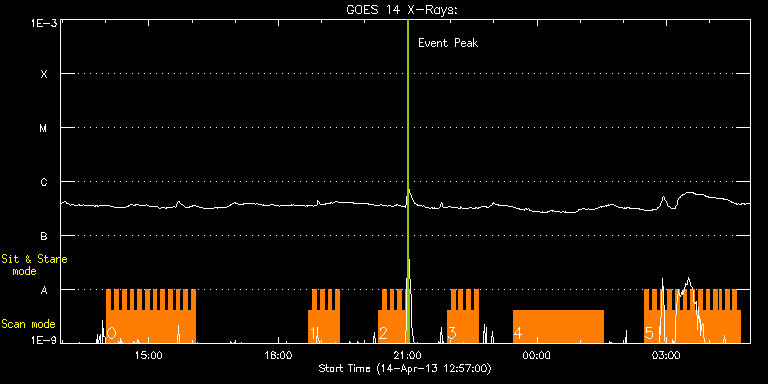 EIS Observation timeline overlay to GOES-Xray curve Code 1" 2" 40" 266" EIS Observations list for this event: STUDY ACRONYM ID DATE OBSERVED DESCRIPTION NOAA# TARGET 0 HH_Flare+AR_180x152 | 32999 | 2013/04/14 14:01:39 | AR 11718 obd | 1718 | Flare TIMELINE ID DATE OBSERVED FITS FILE XCEN (+W/-E) YCEN (+N/-S) DUR ----------------------------------------------------------------------------------------------------------------- 32999 | 2013/04/14 14:01:39.000 | eis_l0_20130414_140139.fits.gz | 807.49 | 370.60 | 5m18s 32999 | 2013/04/14 14:07:00.000 | eis_l0_20130414_140700.fits.gz | 807.80 | 370.67 | 5m18s 32999 | 2013/04/14 14:12:21.000 | eis_l0_20130414_141221.fits.gz | 808.11 | 370.52 | 5m18s 32999 | 2013/04/14 14:17:42.000 | eis_l0_20130414_141742.fits.gz | 808.42 | 370.52 | 5m18s 32999 | 2013/04/14 14:23:03.000 | eis_l0_20130414_142303.fits.gz | 808.80 | 370.37 | 5m18s 32999 | 2013/04/14 14:28:23.000 | eis_l0_20130414_142823.fits.gz | 809.11 | 370.37 | 5m18s 32999 | 2013/04/14 14:33:44.000 | eis_l0_20130414_143344.fits.gz | 809.50 | 370.29 | 5m18s 32999 | 2013/04/14 14:39:04.000 | eis_l0_20130414_143904.fits.gz | 809.73 | 370.13 | 5m18s 32999 | 2013/04/14 14:44:25.000 | eis_l0_20130414_144425.fits.gz | 810.11 | 370.13 | 5m18s 32999 | 2013/04/14 14:49:46.000 | eis_l0_20130414_144946.fits.gz | 810.42 | 369.90 | 5m18s 32999 | 2013/04/14 14:55:07.000 | eis_l0_20130414_145507.fits.gz | 810.66 | 370.06 | 5m18s 32999 | 2013/04/14 15:00:27.000 | eis_l0_20130414_150027.fits.gz | 810.97 | 370.06 | 5m18s 32999 | 2013/04/14 15:05:48.000 | eis_l0_20130414_150548.fits.gz | 811.43 | 369.83 | 5m19s 32999 | 2013/04/14 15:11:10.000 | eis_l0_20130414_151110.fits.gz | 811.66 | 369.67 | 5m18s 32999 | 2013/04/14 15:16:30.000 | eis_l0_20130414_151630.fits.gz | 811.97 | 369.75 | 5m18s 32999 | 2013/04/14 15:21:51.000 | eis_l0_20130414_152151.fits.gz | 812.28 | 369.52 | 5m18s 32999 | 2013/04/14 15:27:12.000 | eis_l0_20130414_152712.fits.gz | 812.66 | 369.44 | 5m17s 32999 | 2013/04/14 15:32:32.000 | eis_l0_20130414_153232.fits.gz | 812.97 | 369.44 | 5m18s 32999 | 2013/04/14 15:37:53.000 | eis_l0_20130414_153753.fits.gz | 813.21 | 369.44 | 5m18s 32999 | 2013/04/14 15:43:13.000 | eis_l0_20130414_154313.fits.gz | 813.51 | 369.28 | 5m18s 32999 | 2013/04/14 15:48:34.000 | eis_l0_20130414_154834.fits.gz | 813.82 | 369.28 | 5m18s 32999 | 2013/04/14 15:53:55.000 | eis_l0_20130414_155355.fits.gz | 814.13 | 369.36 | 5m17s 32999 | 2013/04/14 15:59:15.000 | eis_l0_20130414_155915.fits.gz | 814.52 | 369.13 | 5m17s 1 HH_Flare+AR_180x152 | 33000 | 2013/04/14 18:42:34 | AR 11718 obs | 1718 | Flare TIMELINE ID DATE OBSERVED FITS FILE XCEN (+W/-E) YCEN (+N/-S) DUR ----------------------------------------------------------------------------------------------------------------- 33000 | 2013/04/14 18:42:34.000 | eis_l0_20130414_184234.fits.gz | 870.73 | 359.71 | 5m17s 33000 | 2013/04/14 18:47:54.000 | eis_l0_20130414_184754.fits.gz | 870.81 | 359.63 | 5m18s 33000 | 2013/04/14 18:53:15.000 | eis_l0_20130414_185315.fits.gz | 870.81 | 359.47 | 5m18s 33000 | 2013/04/14 18:58:36.000 | eis_l0_20130414_185836.fits.gz | 870.73 | 359.47 | 5m18s 33000 | 2013/04/14 19:03:56.000 | eis_l0_20130414_190356.fits.gz | 870.81 | 359.40 | 5m19s 33000 | 2013/04/14 19:09:17.000 | eis_l0_20130414_190917.fits.gz | 870.73 | 359.63 | 5m18s 33000 | 2013/04/14 19:14:38.000 | eis_l0_20130414_191438.fits.gz | 870.81 | 359.63 | 5m18s 33000 | 2013/04/14 19:19:59.000 | eis_l0_20130414_191959.fits.gz | 870.81 | 359.71 | 5m18s 2 HH_Flare+AR_180x152 | 33004 | 2013/04/14 20:19:35 | AR 11718 obs | 1718 | Flare TIMELINE ID DATE OBSERVED FITS FILE XCEN (+W/-E) YCEN (+N/-S) DUR ----------------------------------------------------------------------------------------------------------------- 33004 | 2013/04/14 20:19:35.000 | eis_l0_20130414_201935.fits.gz | 870.73 | 359.63 | 5m17s 33004 | 2013/04/14 20:24:55.000 | eis_l0_20130414_202455.fits.gz | 870.73 | 359.47 | 5m18s 33004 | 2013/04/14 20:30:16.000 | eis_l0_20130414_203016.fits.gz | 870.66 | 359.55 | 5m18s 33004 | 2013/04/14 20:35:37.000 | eis_l0_20130414_203537.fits.gz | 870.73 | 359.55 | 5m18s 33004 | 2013/04/14 20:40:58.000 | eis_l0_20130414_204058.fits.gz | 870.73 | 359.63 | 5m18s 33004 | 2013/04/14 20:46:19.000 | eis_l0_20130414_204619.fits.gz | 870.73 | 359.40 | 5m17s 33004 | 2013/04/14 20:51:39.000 | eis_l0_20130414_205139.fits.gz | 870.73 | 359.47 | 5m18s 33004 | 2013/04/14 20:57:00.000 | eis_l0_20130414_205700.fits.gz | 870.81 | 359.71 | 5m18s 3 HH_Flare+AR_180x152 | 33005 | 2013/04/14 21:55:13 | AR 11718 obs | 1718 | Flare TIMELINE ID DATE OBSERVED FITS FILE XCEN (+W/-E) YCEN (+N/-S) DUR ----------------------------------------------------------------------------------------------------------------- 33005 | 2013/04/14 21:55:13.000 | eis_l0_20130414_215513.fits.gz | 870.81 | 359.47 | 5m18s 33005 | 2013/04/14 22:00:34.000 | eis_l0_20130414_220034.fits.gz | 870.81 | 359.55 | 5m18s 33005 | 2013/04/14 22:05:55.000 | eis_l0_20130414_220555.fits.gz | 870.81 | 359.40 | 5m18s 33005 | 2013/04/14 22:11:16.000 | eis_l0_20130414_221116.fits.gz | 870.73 | 359.63 | 5m17s 33005 | 2013/04/14 22:16:36.000 | eis_l0_20130414_221636.fits.gz | 870.73 | 359.55 | 5m18s 33005 | 2013/04/14 22:21:57.000 | eis_l0_20130414_222157.fits.gz | 870.81 | 359.47 | 5m18s 33005 | 2013/04/14 22:27:17.000 | eis_l0_20130414_222717.fits.gz | 870.73 | 359.55 | 5m18s 33005 | 2013/04/14 22:32:37.000 | eis_l0_20130414_223237.fits.gz | 870.73 | 359.63 | 5m18s 4 cam_ar_limb_lite_v2 | 32977 | 2013/04/14 23:26:43 | NW-limb AR 11718 obs (temperature) | 1714 | Active Region TIMELINE ID DATE OBSERVED FITS FILE XCEN (+W/-E) YCEN (+N/-S) DUR ----------------------------------------------------------------------------------------------------------------- 32977 | 2013/04/14 23:26:43.000 | eis_l0_20130414_232643.fits.gz | 872.81 | 359.55 | 2h6m 5 HH_Flare+AR_180x152 | 32986 | 2013/04/15 02:29:42 | AR 11718 obs | 1718 | Flare TIMELINE ID DATE OBSERVED FITS FILE XCEN (+W/