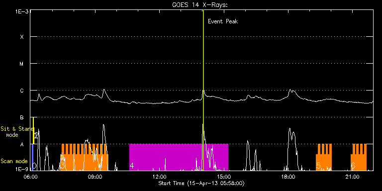 EIS Observation timeline overlay to GOES-Xray curve Code 1" 2" 40" 266" EIS Observations list for this event: STUDY ACRONYM ID DATE OBSERVED DESCRIPTION NOAA# TARGET 0 PRY_slot_contextLITE | 32993 | 2013/04/15 06:03:19 | EIS AIA alignment | | Active Region TIMELINE ID DATE OBSERVED FITS FILE XCEN (+W/-E) YCEN (+N/-S) DUR ----------------------------------------------------------------------------------------------------------------- 32993 | 2013/04/15 06:03:19.000 | eis_l0_20130415_060319.fits.gz | -15.29 | -0.50 | 2m57s 1 Alignment_266 | 32994 | 2013/04/15 06:07:01 | EIS AIA alignment | | Quiet Sun TIMELINE ID DATE OBSERVED FITS FILE XCEN (+W/-E) YCEN (+N/-S) DUR ----------------------------------------------------------------------------------------------------------------- 32994 | 2013/04/15 06:07:01.000 | eis_l0_20130415_060701.fits.gz | -132.41 | -0.58 | 1m21s 2 XRT_synop_AIA | 32995 | 2013/04/15 06:09:27 | EIS AIA alignment | | Quiet Sun TIMELINE ID DATE OBSERVED FITS FILE XCEN (+W/-E) YCEN (+N/-S) DUR ----------------------------------------------------------------------------------------------------------------- 32995 | 2013/04/15 06:09:27.000 | eis_l0_20130415_060927.fits.gz | -132.49 | -0.58 | 10s 3 HH_Flare+AR_180x152 | 32987 | 2013/04/15 07:22:19 | AR 11718 obs | 1718 | Flare TIMELINE ID DATE OBSERVED FITS FILE XCEN (+W/-E) YCEN (+N/-S) DUR ----------------------------------------------------------------------------------------------------------------- 32987 | 2013/04/15 07:22:19.000 | eis_l0_20130415_072219.fits.gz | 870.81 | 359.55 | 5m18s 32987 | 2013/04/15 07:27:40.000 | eis_l0_20130415_072740.fits.gz | 870.66 | 359.55 | 5m17s 32987 | 2013/04/15 07:33:00.000 | eis_l0_20130415_073300.fits.gz | 870.81 | 359.63 | 5m18s 32987 | 2013/04/15 07:38:21.000 | eis_l0_20130415_073821.fits.gz | 870.73 | 359.86 | 5m18s 32987 | 2013/04/15 07:43:42.000 | eis_l0_20130415_074342.fits.gz | 870.73 | 359.55 | 5m17s 32987 | 2013/04/15 07:49:02.000 | eis_l0_20130415_074902.fits.gz | 870.73 | 359.55 | 5m18s 32987 | 2013/04/15 07:54:23.000 | eis_l0_20130415_075423.fits.gz | 870.81 | 359.47 | 5m17s 32987 | 2013/04/15 07:59:43.000 | eis_l0_20130415_075943.fits.gz | 870.81 | 359.55 | 5m18s 32987 | 2013/04/15 08:05:04.000 | eis_l0_20130415_080504.fits.gz | 870.73 | 359.40 | 5m18s 32987 | 2013/04/15 08:10:24.000 | eis_l0_20130415_081024.fits.gz | 870.73 | 359.55 | 5m18s 32987 | 2013/04/15 08:15:45.000 | eis_l0_20130415_081545.fits.gz | 870.73 | 359.63 | 5m18s 32987 | 2013/04/15 08:21:06.000 | eis_l0_20130415_082106.fits.gz | 870.81 | 359.55 | 5m18s 32987 | 2013/04/15 08:26:27.000 | eis_l0_20130415_082627.fits.gz | 870.89 | 359.40 | 5m18s 32987 | 2013/04/15 08:31:48.000 | eis_l0_20130415_083148.fits.gz | 870.81 | 359.63 | 5m18s 32987 | 2013/04/15 08:37:09.000 | eis_l0_20130415_083709.fits.gz | 870.81 | 359.55 | 5m18s 32987 | 2013/04/15 08:42:29.000 | eis_l0_20130415_084229.fits.gz | 870.81 | 359.47 | 5m18s 32987 | 2013/04/15 08:47:50.000 | eis_l0_20130415_084750.fits.gz | 870.81 | 359.55 | 5m18s 32987 | 2013/04/15 08:53:11.000 | eis_l0_20130415_085311.fits.gz | 870.73 | 359.55 | 5m18s 32987 | 2013/04/15 08:58:32.000 | eis_l0_20130415_085832.fits.gz | 870.81 | 359.55 | 5m18s 32987 | 2013/04/15 09:03:53.000 | eis_l0_20130415_090353.fits.gz | 870.73 | 359.40 | 5m18s 32987 | 2013/04/15 09:09:14.000 | eis_l0_20130415_090914.fits.gz | 870.73 | 359.55 | 5m17s 32987 | 2013/04/15 09:14:34.000 | eis_l0_20130415_091434.fits.gz | 870.81 | 359.55 | 5m17s 32987 | 2013/04/15 09:19:54.000 | eis_l0_20130415_091954.fits.gz | 870.89 | 359.55 | 5m18s 32987 | 2013/04/15 09:25:15.000 | eis_l0_20130415_092515.fits.gz | 870.73 | 359.55 | 5m17s 32987 | 2013/04/15 09:30:35.000 | eis_l0_20130415_093035.fits.gz | 870.73 | 359.63 | 5m18s 4 SK_CH_DIAG_320x384 | 32972 | 2013/04/15 10:35:47 | HOP81 (S-pole) | | Coronal Hole TIMELINE ID DATE OBSERVED FITS FILE XCEN (+W/-E) YCEN (+N/-S) DUR ----------------------------------------------------------------------------------------------------------------- 32972 | 2013/04/15 10:35:47.000 | eis_l0_20130415_103547.fits.gz | -14.88 | -940.53 | 4h35m37s 5 HH_Flare+AR_180x152 | 33001 | 2013/04/15 19:18:25 | AR 11718 obs | 1718 | Flare TIMELINE ID DATE OBSERVED FITS FILE XCEN (+W/-E) YCEN (+N/-S) DUR ----------------------------------------------------------------------------------------------------------------- 33001 | 2013/04/15 19:18:25.000 | eis_l0_20130415_191825.fits.gz | 870.81 | 359.55 | 5m18s 33001 | 2013/04/15 19:23:46.000 | eis_l0_20130415_192346.fits.gz | 870.81 | 359.55 | 5m17s 33001 | 2013/04/15 19:29:06.000 | eis_l0_20130415_192906.fits.gz | 870.81 | 359.47 | 5m18s 33001 | 2013/04/15 19:34:27.000 | eis_l0_20130415_193427.fits.gz | 870.73 | 359.55 | 5m18s 33001 | 2013/04/15 19:39:48.000 | eis_l0_20130415_193948.fits.gz | 870.73 | 359.55 | 5m18s 33001 | 2013/04/15 19:45:09.000 | eis_l0_20130415_194509.fits.gz | 870.81 | 359.47 | 5m18s 33001 | 2013/04/15 19:50:30.000 | eis_l0_20130415_195030.fits.gz | 870.73 | 359.55 | 5m17s 33001 | 2013/04/15 19:55:50.000 | eis_l0_20130415_195550.fits.gz | 870.81 | 359.55 | 5m17s 6 HH_Flare+AR_180x152 | 33002 | 2013/04/15 20:55:12 | AR 11718 obs | 1718 | Flare TIMELINE ID DATE OBSERVED FITS FILE XCEN (+W/-E) YCEN (+N/-S) DUR ----------------------------------------------------------------------------------------------------------------- 33002 | 2013/04/15 20:55:12.000 | eis_l0_20130415_205512.fits.gz | 870.73 | 359.47 | 5m18s 33002 | 2013/04/15 21:00:33.000 | eis_l0_20130415_210033.fits.gz | 870.81 | 359.55 | 5m17s 33002 | 2013/04/15 21:05:53.000 | eis_l0_20130415_210553.fits.gz | 870.73 | 359.63 | 5m17s 33002 | 2013/04/15 21:11:13.000 | eis_l0_20130415_211113.fits.gz | 870.81 | 359.55 | 5m18s 33002 | 2013/04/15 21:16:34.000 | eis_l0_20130415_211634.fits.gz | 870.73 | 359.63 | 5m18s 33002 | 2013/04/15 21:21:55.000 | eis_l0_20130415_212155.fits.gz | 870.89 | 359.47 | 5m17s 33002 | 2013/04/15 21:27:15.000 | eis_l0_20130415_212715.fits.gz | 870.73 | 35