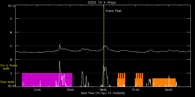 EIS Observation timeline overlay to GOES-Xray curve Code 1" 2" 40" 266" EIS Observations list for this event: STUDY ACRONYM ID DATE OBSERVED DESCRIPTION NOAA# TARGET 0 SK_CH_DIAG_320x384 | 32972 | 2013/04/15 10:35:47 | HOP81 (S-pole) | | Coronal Hole TIMELINE ID DATE OBSERVED FITS FILE XCEN (+W/-E) YCEN (+N/-S) DUR ----------------------------------------------------------------------------------------------------------------- 32972 | 2013/04/15 10:35:47.000 | eis_l0_20130415_103547.fits.gz | -14.88 | -940.53 | 4h35m37s 1 HH_Flare+AR_180x152 | 33001 | 2013/04/15 19:18:25 | AR 11718 obs | 1718 | Flare TIMELINE ID DATE OBSERVED FITS FILE XCEN (+W/-E) YCEN (+N/-S) DUR ----------------------------------------------------------------------------------------------------------------- 33001 | 2013/04/15 19:18:25.000 | eis_l0_20130415_191825.fits.gz | 870.81 | 359.55 | 5m18s 33001 | 2013/04/15 19:23:46.000 | eis_l0_20130415_192346.fits.gz | 870.81 | 359.55 | 5m17s 33001 | 2013/04/15 19:29:06.000 | eis_l0_20130415_192906.fits.gz | 870.81 | 359.47 | 5m18s 33001 | 2013/04/15 19:34:27.000 | eis_l0_20130415_193427.fits.gz | 870.73 | 359.55 | 5m18s 33001 | 2013/04/15 19:39:48.000 | eis_l0_20130415_193948.fits.gz | 870.73 | 359.55 | 5m18s 33001 | 2013/04/15 19:45:09.000 | eis_l0_20130415_194509.fits.gz | 870.81 | 359.47 | 5m18s 33001 | 2013/04/15 19:50:30.000 | eis_l0_20130415_195030.fits.gz | 870.73 | 359.55 | 5m17s 33001 | 2013/04/15 19:55:50.000 | eis_l0_20130415_195550.fits.gz | 870.81 | 359.55 | 5m17s 2 HH_Flare+AR_180x152 | 33002 | 2013/04/15 20:55:12 | AR 11718 obs | 1718 | Flare TIMELINE ID DATE OBSERVED FITS FILE XCEN (+W/-E) YCEN (+N/-S) DUR ----------------------------------------------------------------------------------------------------------------- 33002 | 2013/04/15 20:55:12.000 | eis_l0_20130415_205512.fits.gz | 870.73 | 359.47 | 5m18s 33002 | 2013/04/15 21:00:33.000 | eis_l0_20130415_210033.fits.gz | 870.81 | 359.55 | 5m17s 33002 | 2013/04/15 21:05:53.000 | eis_l0_20130415_210553.fits.gz | 870.73 | 359.63 | 5m17s 33002 | 2013/04/15 21:11:13.000 | eis_l0_20130415_211113.fits.gz | 870.81 | 359.55 | 5m18s 33002 | 2013/04/15 21:16:34.000 | eis_l0_20130415_211634.fits.gz | 870.73 | 359.63 | 5m18s 33002 | 2013/04/15 21:21:55.000 | eis_l0_20130415_212155.fits.gz | 870.89 | 359.47 | 5m17s 33002 | 2013/04/15 21:27:15.000 | eis_l0_20130415_212715.fits.gz | 870.73 | 359.55 | 5m19s 33002 | 2013/04/15 21:32:36.000 | eis_l0_20130415_213236.fits.gz | 870.73 | 359.63 | 5m18s 3 cam_ar_limb_lite_v2 | 32978 | 2013/04/15 22:31:12 | NW-limb AR 11718 obs (temperature) | 1718 | Active Region TIMELINE ID DATE OBSERVED FITS FILE XCEN (+W/-E) YCEN (+N/-S) DUR ----------------------------------------------------------------------------------------------------------------- 32978 | 2013/04/15 22:31:12.000 | eis_l0_20130415_223112.fits.gz | 872.81 | 359.47 | 2h6m1s : Check study information : Download file : View thumbnails For this event, also check for: