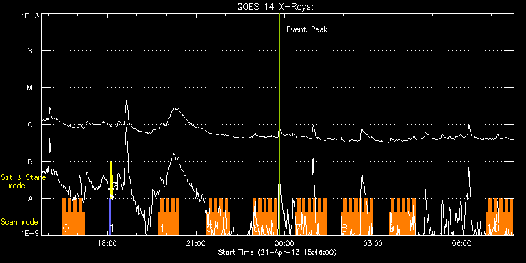 EIS Observation timeline overlay to GOES-Xray curve Code 1" 2" 40" 266" EIS Observations list for this event: STUDY ACRONYM ID DATE OBSERVED DESCRIPTION NOAA# TARGET 0 IUU_SCAN_STEPS_002 | 33098 | 2013/04/21 16:29:43 | AR 11723 Raster Scan Obs | | Active Region TIMELINE ID DATE OBSERVED FITS FILE XCEN (+W/-E) YCEN (+N/-S) DUR ----------------------------------------------------------------------------------------------------------------- 33098 | 2013/04/21 16:29:43.000 | eis_l0_20130421_162943.fits.gz | 705.60 | -263.91 | 5m24s 33098 | 2013/04/21 16:35:10.000 | eis_l0_20130421_163510.fits.gz | 705.98 | -264.15 | 5m24s 33098 | 2013/04/21 16:40:37.000 | eis_l0_20130421_164037.fits.gz | 706.45 | -263.91 | 5m23s 33098 | 2013/04/21 16:46:04.000 | eis_l0_20130421_164604.fits.gz | 706.91 | -264.07 | 5m23s 33098 | 2013/04/21 16:51:31.000 | eis_l0_20130421_165131.fits.gz | 707.37 | -264.15 | 5m23s 33098 | 2013/04/21 16:56:58.000 | eis_l0_20130421_165658.fits.gz | 707.84 | -264.22 | 5m23s 33098 | 2013/04/21 17:02:25.000 | eis_l0_20130421_170225.fits.gz | 708.30 | -264.38 | 5m23s 33098 | 2013/04/21 17:07:52.000 | eis_l0_20130421_170752.fits.gz | 708.84 | -264.53 | 5m23s 1 PRY_slot_contextLITE | 33083 | 2013/04/21 18:03:20 | EIS AIA alignment | | Active Region TIMELINE ID DATE OBSERVED FITS FILE XCEN (+W/-E) YCEN (+N/-S) DUR ----------------------------------------------------------------------------------------------------------------- 33083 | 2013/04/21 18:03:20.000 | eis_l0_20130421_180320.fits.gz | -15.29 | -0.35 | 2m56s 2 Alignment_266 | 33084 | 2013/04/21 18:07:06 | EIS AIA alignment | | Quiet Sun TIMELINE ID DATE OBSERVED FITS FILE XCEN (+W/-E) YCEN (+N/-S) DUR ----------------------------------------------------------------------------------------------------------------- 33084 | 2013/04/21 18:07:06.000 | eis_l0_20130421_180706.fits.gz | -132.64 | -0.42 | 1m22s 3 XRT_synop_AIA | 33085 | 2013/04/21 18:10:03 | EIS AIA alignment | | Quiet Sun TIMELINE ID DATE OBSERVED FITS FILE XCEN (+W/-E) YCEN (+N/-S) DUR ----------------------------------------------------------------------------------------------------------------- 33085 | 2013/04/21 18:10:03.000 | eis_l0_20130421_181003.fits.gz | -132.49 | -0.58 | 10s 4 HH_Flare+AR_180x152 | 33104 | 2013/04/21 19:43:19 | AR 11723 Raster Scan Obs | 1723 | Flare TIMELINE ID DATE OBSERVED FITS FILE XCEN (+W/-E) YCEN (+N/-S) DUR ----------------------------------------------------------------------------------------------------------------- 33104 | 2013/04/21 19:43:19.000 | eis_l0_20130421_194319.fits.gz | 720.28 | -266.08 | 5m19s 33104 | 2013/04/21 19:48:41.000 | eis_l0_20130421_194841.fits.gz | 720.66 | -266.00 | 5m18s 33104 | 2013/04/21 19:54:01.000 | eis_l0_20130421_195401.fits.gz | 721.05 | -266.15 | 5m19s 33104 | 2013/04/21 19:59:23.000 | eis_l0_20130421_195923.fits.gz | 721.52 | -266.15 | 5m18s 33104 | 2013/04/21 20:04:44.000 | eis_l0_20130421_200444.fits.gz | 721.90 | -266.39 | 5m17s 33104 | 2013/04/21 20:10:04.000 | eis_l0_20130421_201004.fits.gz | 722.44 | -266.39 | 5m18s 33104 | 2013/04/21 20:15:24.000 | eis_l0_20130421_201524.fits.gz | 722.75 | -266.23 | 5m19s 33104 | 2013/04/21 20:20:45.000 | eis_l0_20130421_202045.fits.gz | 723.14 | -266.62 | 5m18s 5 HH_Flare+AR_180x152 | 33103 | 2013/04/21 21:21:10 | AR 11723 Raster Scan Obs | 1723 | Flare TIMELINE ID DATE OBSERVED FITS FILE XCEN (+W/-E) YCEN (+N/-S) DUR ----------------------------------------------------------------------------------------------------------------- 33103 | 2013/04/21 21:21:10.000 | eis_l0_20130421_212110.fits.gz | 727.93 | -267.24 | 5m18s 33103 | 2013/04/21 21:26:31.000 | eis_l0_20130421_212631.fits.gz | 728.23 | -267.24 | 5m19s 33103 | 2013/04/21 21:31:53.000 | eis_l0_20130421_213153.fits.gz | 728.78 | -267.24 | 5m18s 33103 | 2013/04/21 21:37:14.000 | eis_l0_20130421_213714.fits.gz | 729.16 | -267.24 | 5m17s 33103 | 2013/04/21 21:42:34.000 | eis_l0_20130421_214234.fits.gz | 729.63 | -267.39 | 5m19s 33103 | 2013/04/21 21:47:56.000 | eis_l0_20130421_214756.fits.gz | 729.93 | -267.55 | 5m17s 33103 | 2013/04/21 21:53:16.000 | eis_l0_20130421_215316.fits.gz | 730.40 | -267.47 | 5m19s 33103 | 2013/04/21 21:58:37.000 | eis_l0_20130421_215837.fits.gz | 730.86 | -267.62 | 5m18s 33103 | 2013/04/21 22:03:58.000 | eis_l0_20130421_220358.fits.gz | 731.25 | -267.62 | 5m18s 6 HH_Flare+AR_180x152 | 33102 | 2013/04/21 22:56:10 | AR 11723 Raster Scan Obs | 1723 | Flare TIMELINE ID DATE OBSERVED FITS FILE XCEN (+W/-E) YCEN (+N/-S) DUR ----------------------------------------------------------------------------------------------------------------- 33102 | 2013/04/21 22:56:10.000 | eis_l0_20130421_225610.fits.gz | 735.19 | -268.39 | 5m18s 33102 | 2013/04/21 23:01:30.000 | eis_l0_20130421_230130.fits.gz | 735.57 | -268.16 | 5m19s 33102 | 2013/04/21 23:06:52.000 | eis_l0_20130421_230652.fits.gz | 735.96 | -268.32 | 5m17s 33102 | 2013/04/21 23:12:12.000 | eis_l0_20130421_231212.fits.gz | 736.35 | -268.32 | 5m19s 33102 | 2013/04/21 23:17:33.000 | eis_l0_20130421_231733.fits.gz | 736.73 | -268.39 | 5m18s 33102 | 2013/04/21 23:22:54.000 | eis_l0_20130421_232254.fits.gz | 737.20 | -268.47 | 5m18s 33102 | 2013/04/21 23:28:15.000 | eis_l0_20130421_232815.fits.gz | 737.51 | -268.47 | 5m19s 33102 | 2013/04/21 23:33:37.000 | eis_l0_20130421_233337.fits.gz | 738.04 | -268.63 | 5m17s 33102 | 2013/04/21 23:38:57.000 | eis_l0_20130421_233857.fits.gz | 738.35 | -268.70 | 5m17s 7 HH_Flare+AR_180x152 | 33101 | 2013/04/22 00:20:40 | AR 11723 Raster Scan Obs | 1723 | Flare TIMELINE ID DATE OBSERVED FITS FILE XCEN (+W/-E) YCEN (+N/-S) DUR ----------------------------------------------------------------------------------------------------------------- 33101 | 2013/04/22 00:20:40.000 | eis_l0_20130422_002040.fits.gz | 741.52 | -269.01 | 5m18s 33101 | 2013/04/22 00:26:01.000 | eis_l0_20130422_002601.fits.gz | 741.83 | -269.17 | 5m18s 33101 | 2013/04/22 00:31:22.000 | eis_l0_20130422_003122.fits.gz | 742.22 | -269.24 | 5m1