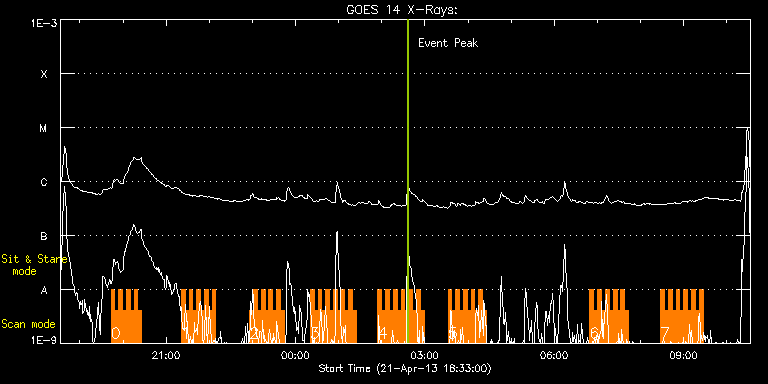 EIS Observation timeline overlay to GOES-Xray curve Code 1" 2" 40" 266" EIS Observations list for this event: STUDY ACRONYM ID DATE OBSERVED DESCRIPTION NOAA# TARGET 0 HH_Flare+AR_180x152 | 33104 | 2013/04/21 19:43:19 | AR 11723 Raster Scan Obs | 1723 | Flare TIMELINE ID DATE OBSERVED FITS FILE XCEN (+W/-E) YCEN (+N/-S) DUR ----------------------------------------------------------------------------------------------------------------- 33104 | 2013/04/21 19:43:19.000 | eis_l0_20130421_194319.fits.gz | 720.28 | -266.08 | 5m19s 33104 | 2013/04/21 19:48:41.000 | eis_l0_20130421_194841.fits.gz | 720.66 | -266.00 | 5m18s 33104 | 2013/04/21 19:54:01.000 | eis_l0_20130421_195401.fits.gz | 721.05 | -266.15 | 5m19s 33104 | 2013/04/21 19:59:23.000 | eis_l0_20130421_195923.fits.gz | 721.52 | -266.15 | 5m18s 33104 | 2013/04/21 20:04:44.000 | eis_l0_20130421_200444.fits.gz | 721.90 | -266.39 | 5m17s 33104 | 2013/04/21 20:10:04.000 | eis_l0_20130421_201004.fits.gz | 722.44 | -266.39 | 5m18s 33104 | 2013/04/21 20:15:24.000 | eis_l0_20130421_201524.fits.gz | 722.75 | -266.23 | 5m19s 33104 | 2013/04/21 20:20:45.000 | eis_l0_20130421_202045.fits.gz | 723.14 | -266.62 | 5m18s 1 HH_Flare+AR_180x152 | 33103 | 2013/04/21 21:21:10 | AR 11723 Raster Scan Obs | 1723 | Flare TIMELINE ID DATE OBSERVED FITS FILE XCEN (+W/-E) YCEN (+N/-S) DUR ----------------------------------------------------------------------------------------------------------------- 33103 | 2013/04/21 21:21:10.000 | eis_l0_20130421_212110.fits.gz | 727.93 | -267.24 | 5m18s 33103 | 2013/04/21 21:26:31.000 | eis_l0_20130421_212631.fits.gz | 728.23 | -267.24 | 5m19s 33103 | 2013/04/21 21:31:53.000 | eis_l0_20130421_213153.fits.gz | 728.78 | -267.24 | 5m18s 33103 | 2013/04/21 21:37:14.000 | eis_l0_20130421_213714.fits.gz | 729.16 | -267.24 | 5m17s 33103 | 2013/04/21 21:42:34.000 | eis_l0_20130421_214234.fits.gz | 729.63 | -267.39 | 5m19s 33103 | 2013/04/21 21:47:56.000 | eis_l0_20130421_214756.fits.gz | 729.93 | -267.55 | 5m17s 33103 | 2013/04/21 21:53:16.000 | eis_l0_20130421_215316.fits.gz | 730.40 | -267.47 | 5m19s 33103 | 2013/04/21 21:58:37.000 | eis_l0_20130421_215837.fits.gz | 730.86 | -267.62 | 5m18s 33103 | 2013/04/21 22:03:58.000 | eis_l0_20130421_220358.fits.gz | 731.25 | -267.62 | 5m18s 2 HH_Flare+AR_180x152 | 33102 | 2013/04/21 22:56:10 | AR 11723 Raster Scan Obs | 1723 | Flare TIMELINE ID DATE OBSERVED FITS FILE XCEN (+W/-E) YCEN (+N/-S) DUR ----------------------------------------------------------------------------------------------------------------- 33102 | 2013/04/21 22:56:10.000 | eis_l0_20130421_225610.fits.gz | 735.19 | -268.39 | 5m18s 33102 | 2013/04/21 23:01:30.000 | eis_l0_20130421_230130.fits.gz | 735.57 | -268.16 | 5m19s 33102 | 2013/04/21 23:06:52.000 | eis_l0_20130421_230652.fits.gz | 735.96 | -268.32 | 5m17s 33102 | 2013/04/21 23:12:12.000 | eis_l0_20130421_231212.fits.gz | 736.35 | -268.32 | 5m19s 33102 | 2013/04/21 23:17:33.000 | eis_l0_20130421_231733.fits.gz | 736.73 | -268.39 | 5m18s 33102 | 2013/04/21 23:22:54.000 | eis_l0_20130421_232254.fits.gz | 737.20 | -268.47 | 5m18s 33102 | 2013/04/21 23:28:15.000 | eis_l0_20130421_232815.fits.gz | 737.51 | -268.47 | 5m19s 33102 | 2013/04/21 23:33:37.000 | eis_l0_20130421_233337.fits.gz | 738.04 | -268.63 | 5m17s 33102 | 2013/04/21 23:38:57.000 | eis_l0_20130421_233857.fits.gz | 738.35 | -268.70 | 5m17s 3 HH_Flare+AR_180x152 | 33101 | 2013/04/22 00:20:40 | AR 11723 Raster Scan Obs | 1723 | Flare TIMELINE ID DATE OBSERVED FITS FILE XCEN (+W/-E) YCEN (+N/-S) DUR ----------------------------------------------------------------------------------------------------------------- 33101 | 2013/04/22 00:20:40.000 | eis_l0_20130422_002040.fits.gz | 741.52 | -269.01 | 5m18s 33101 | 2013/04/22 00:26:01.000 | eis_l0_20130422_002601.fits.gz | 741.83 | -269.17 | 5m18s 33101 | 2013/04/22 00:31:22.000 | eis_l0_20130422_003122.fits.gz | 742.22 | -269.24 | 5m18s 33101 | 2013/04/22 00:36:43.000 | eis_l0_20130422_003643.fits.gz | 742.68 | -269.32 | 5m18s 33101 | 2013/04/22 00:42:04.000 | eis_l0_20130422_004204.fits.gz | 743.07 | -269.32 | 5m18s 33101 | 2013/04/22 00:47:25.000 | eis_l0_20130422_004725.fits.gz | 743.53 | -269.40 | 5m18s 33101 | 2013/04/22 00:52:46.000 | eis_l0_20130422_005246.fits.gz | 743.84 | -269.48 | 5m17s 33101 | 2013/04/22 00:58:06.000 | eis_l0_20130422_005806.fits.gz | 744.22 | -269.48 | 5m17s 33101 | 2013/04/22 01:03:26.000 | eis_l0_20130422_010326.fits.gz | 744.61 | -269.79 | 5m18s 33101 | 2013/04/22 01:08:47.000 | eis_l0_20130422_010847.fits.gz | 745.00 | -269.63 | 5m18s 33101 | 2013/04/22 01:14:08.000 | eis_l0_20130422_011408.fits.gz | 745.38 | -269.71 | 5m18s 33101 | 2013/04/22 01:19:29.000 | eis_l0_20130422_011929.fits.gz | 745.77 | -269.79 | 5m17s 4 HH_Flare+AR_180x152 | 33099 | 2013/04/22 01:54:43 | AR 11723 Raster Scan Obs | 1723 | Flare TIMELINE ID DATE OBSERVED FITS FILE XCEN (+W/-E) YCEN (+N/-S) DUR ----------------------------------------------------------------------------------------------------------------- 33099 | 2013/04/22 01:54:43.000 | eis_l0_20130422_015443.fits.gz | 748.32 | -270.25 | 5m18s 33099 | 2013/04/22 02:00:04.000 | eis_l0_20130422_020004.fits.gz | 748.71 | -270.25 | 5m18s 33099 | 2013/04/22 02:05:24.000 | eis_l0_20130422_020524.fits.gz | 749.17 | -270.25 | 5m18s 33099 | 2013/04/22 02:10:45.000 | eis_l0_20130422_021045.fits.gz | 749.55 | -270.33 | 5m18s 33099 | 2013/04/22 02:16:06.000 | eis_l0_20130422_021606.fits.gz | 749.86 | -270.33 | 5m18s 33099 | 2013/04/22 02:21:26.000 | eis_l0_20130422_022126.fits.gz | 750.25 | -270.48 | 5m18s 33099 | 2013/04/22 02:26:47.000 | eis_l0_20130422_022647.fits.gz | 750.64 | -270.48 | 5m18s 33099 | 2013/04/22 02:32:08.000 | eis_l0_20130422_023208.fits.gz | 751.02 | -270.64 | 5m18s 33099 | 2013/04/22 02:37:29.000 | eis_l0_20130422_023729.fits.gz | 751.41 | -270.71 | 5m18s 33099 | 2013/04/22 02:42:50.000 | eis_l0_20130422_024250.fits.gz | 751.80 | -270.79 | 5m19s 33099 | 2013/04/22 02:48:11.000 | eis_l0_2013042