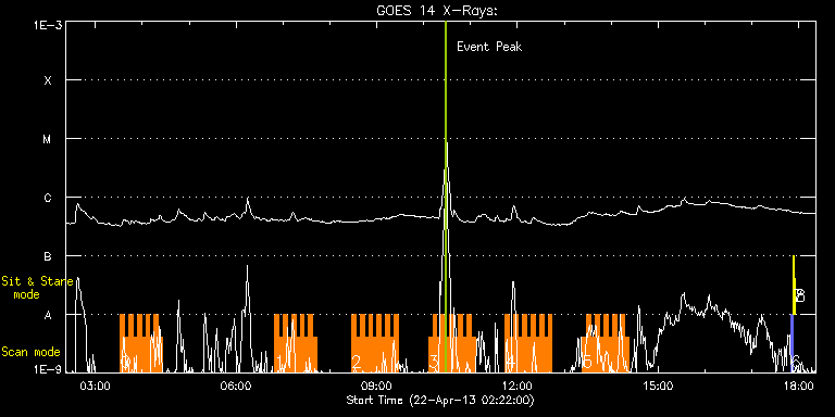 EIS Observation timeline overlay to GOES-Xray curve Code 1" 2" 40" 266" EIS Observations list for this event: STUDY ACRONYM ID DATE OBSERVED DESCRIPTION NOAA# TARGET 0 HH_Flare+AR_180x152 | 33100 | 2013/04/22 03:32:13 | AR 11723 Raster Scan Obs | 1723 | Flare TIMELINE ID DATE OBSERVED FITS FILE XCEN (+W/-E) YCEN (+N/-S) DUR ----------------------------------------------------------------------------------------------------------------- 33100 | 2013/04/22 03:32:13.000 | eis_l0_20130422_033213.fits.gz | 755.27 | -271.33 | 5m18s 33100 | 2013/04/22 03:37:34.000 | eis_l0_20130422_033734.fits.gz | 755.58 | -271.33 | 5m17s 33100 | 2013/04/22 03:42:54.000 | eis_l0_20130422_034254.fits.gz | 755.97 | -271.25 | 5m18s 33100 | 2013/04/22 03:48:15.000 | eis_l0_20130422_034815.fits.gz | 756.43 | -271.33 | 5m17s 33100 | 2013/04/22 03:53:35.000 | eis_l0_20130422_035335.fits.gz | 756.74 | -271.48 | 5m17s 33100 | 2013/04/22 03:58:55.000 | eis_l0_20130422_035855.fits.gz | 757.13 | -271.64 | 5m19s 33100 | 2013/04/22 04:04:16.000 | eis_l0_20130422_040416.fits.gz | 757.51 | -271.56 | 5m18s 33100 | 2013/04/22 04:09:37.000 | eis_l0_20130422_040937.fits.gz | 757.90 | -271.79 | 5m17s 33100 | 2013/04/22 04:14:57.000 | eis_l0_20130422_041457.fits.gz | 758.21 | -271.72 | 5m18s 33100 | 2013/04/22 04:20:18.000 | eis_l0_20130422_042018.fits.gz | 758.52 | -271.95 | 5m18s 1 IUU_SCAN_STEPS_002 | 33112 | 2013/04/22 06:49:13 | AR 11723 Raster Scan Obs | 1723 | Active Region TIMELINE ID DATE OBSERVED FITS FILE XCEN (+W/-E) YCEN (+N/-S) DUR ----------------------------------------------------------------------------------------------------------------- 33112 | 2013/04/22 06:49:13.000 | eis_l0_20130422_064913.fits.gz | 769.63 | -273.57 | 5m23s 33112 | 2013/04/22 06:54:39.000 | eis_l0_20130422_065439.fits.gz | 770.02 | -273.80 | 5m24s 33112 | 2013/04/22 07:00:06.000 | eis_l0_20130422_070006.fits.gz | 770.41 | -273.57 | 5m24s 33112 | 2013/04/22 07:05:33.000 | eis_l0_20130422_070533.fits.gz | 770.79 | -273.73 | 5m23s 33112 | 2013/04/22 07:11:00.000 | eis_l0_20130422_071100.fits.gz | 771.18 | -273.73 | 5m23s 33112 | 2013/04/22 07:16:27.000 | eis_l0_20130422_071627.fits.gz | 771.49 | -273.73 | 5m23s 33112 | 2013/04/22 07:21:53.000 | eis_l0_20130422_072153.fits.gz | 771.95 | -274.03 | 5m24s 33112 | 2013/04/22 07:27:20.000 | eis_l0_20130422_072720.fits.gz | 772.11 | -273.88 | 5m24s 33112 | 2013/04/22 07:32:47.000 | eis_l0_20130422_073247.fits.gz | 772.57 | -274.11 | 5m23s 33112 | 2013/04/22 07:38:14.000 | eis_l0_20130422_073814.fits.gz | 772.88 | -274.27 | 5m23s 2 IUU_SCAN_STEPS_002 | 33113 | 2013/04/22 08:27:43 | AR 11723 Raster Scan Obs | 1723 | Active Region TIMELINE ID DATE OBSERVED FITS FILE XCEN (+W/-E) YCEN (+N/-S) DUR ----------------------------------------------------------------------------------------------------------------- 33113 | 2013/04/22 08:27:43.000 | eis_l0_20130422_082743.fits.gz | 776.05 | -274.58 | 5m24s 33113 | 2013/04/22 08:33:10.000 | eis_l0_20130422_083310.fits.gz | 776.35 | -274.65 | 5m23s 33113 | 2013/04/22 08:38:37.000 | eis_l0_20130422_083837.fits.gz | 776.74 | -274.73 | 5m23s 33113 | 2013/04/22 08:44:03.000 | eis_l0_20130422_084403.fits.gz | 777.13 | -274.81 | 5m2s 33113 | 2013/04/22 08:49:30.000 | eis_l0_20130422_084930.fits.gz | 777.51 | -274.88 | 5m24s 33113 | 2013/04/22 08:54:57.000 | eis_l0_20130422_085457.fits.gz | 777.82 | -274.88 | 5m23s 33113 | 2013/04/22 09:00:24.000 | eis_l0_20130422_090024.fits.gz | 778.05 | -275.04 | 5m23s 33113 | 2013/04/22 09:05:51.000 | eis_l0_20130422_090551.fits.gz | 778.52 | -275.11 | 5m23s 33113 | 2013/04/22 09:11:17.000 | eis_l0_20130422_091117.fits.gz | 778.90 | -275.19 | 5m24s 33113 | 2013/04/22 09:16:44.000 | eis_l0_20130422_091644.fits.gz | 779.14 | -275.11 | 5m24s 33113 | 2013/04/22 09:22:11.000 | eis_l0_20130422_092211.fits.gz | 779.52 | -275.27 | 5m23s 3 IUU_SCAN_STEPS_002 | 33114 | 2013/04/22 10:06:13 | AR 11723 Raster Scan Obs | 1723 | Active Region TIMELINE ID DATE OBSERVED FITS FILE XCEN (+W/-E) YCEN (+N/-S) DUR ----------------------------------------------------------------------------------------------------------------- 33114 | 2013/04/22 10:06:13.000 | eis_l0_20130422_100613.fits.gz | 782.30 | -275.73 | 5m23s 33114 | 2013/04/22 10:11:40.000 | eis_l0_20130422_101140.fits.gz | 782.61 | -275.96 | 5m23s 33114 | 2013/04/22 10:17:06.000 | eis_l0_20130422_101706.fits.gz | 783.00 | -275.81 | 5m24s 33114 | 2013/04/22 10:22:33.000 | eis_l0_20130422_102233.fits.gz | 783.38 | -275.96 | 5m24s 33114 | 2013/04/22 10:28:00.000 | eis_l0_20130422_102800.fits.gz | 783.54 | -275.96 | 5m24s 33114 | 2013/04/22 10:33:27.000 | eis_l0_20130422_103327.fits.gz | 784.08 | -276.12 | 5m24s 33114 | 2013/04/22 10:38:54.000 | eis_l0_20130422_103854.fits.gz | 784.31 | -276.20 | 5m23s 33114 | 2013/04/22 10:44:21.000 | eis_l0_20130422_104421.fits.gz | 784.54 | -276.27 | 5m23s 33114 | 2013/04/22 10:49:47.000 | eis_l0_20130422_104947.fits.gz | 785.01 | -276.20 | 5m24s 33114 | 2013/04/22 10:55:14.000 | eis_l0_20130422_105514.fits.gz | 785.39 | -276.51 | 5m24s 33114 | 2013/04/22 11:00:41.000 | eis_l0_20130422_110041.fits.gz | 785.62 | -276.43 | 5m23s 4 IUU_SCAN_STEPS_002 | 33115 | 2013/04/22 11:44:43 | AR 11723 Raster Scan Obs | | Active Region TIMELINE ID DATE OBSERVED FITS FILE XCEN (+W/-E) YCEN (+N/-S) DUR ----------------------------------------------------------------------------------------------------------------- 33115 | 2013/04/22 11:44:43.000 | eis_l0_20130422_114443.fits.gz | 788.33 | -276.89 | 5m23s 33115 | 2013/04/22 11:50:10.000 | eis_l0_20130422_115010.fits.gz | 788.64 | -277.05 | 5m23s 33115 | 2013/04/22 11:55:36.000 | eis_l0_20130422_115536.fits.gz | 788.95 | -276.97 | 5m24s 33115 | 2013/04/22 12:01:03.000 | eis_l0_20130422_120103.fits.gz | 789.33 | -277.05 | 5m24s 33115 | 2013/04/22 12:06:30.000 | eis_l0_20130422_120630.fits.gz | 789.64 | -277.20 | 5m23s 33115 | 2013/04/22 12:11:57.000 | eis_l0_20130422_121157.fits.gz | 789.95 | -277.20 | 5m23s 33115 | 2013/04/22 12:17:2