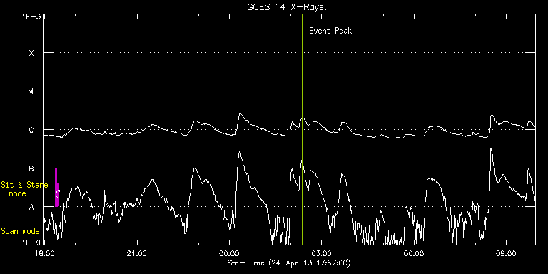 EIS Observation timeline overlay to GOES-Xray curve Code 1" 2" 40" 266" EIS Observations list for this event: STUDY ACRONYM ID DATE OBSERVED DESCRIPTION NOAA# TARGET 0 regcal071 | 33150 | 2013/04/24 18:20:41 | Dark exposures, CCD bottom rows (100s | | Engineering TIMELINE ID DATE OBSERVED FITS FILE XCEN (+W/-E) YCEN (+N/-S) DUR ----------------------------------------------------------------------------------------------------------------- 33150 | 2013/04/24 18:20:41.000 | eis_l0_20130424_182041.fits.gz | 807.30 | -85.04 | 3m22s 1 regcal072 | 33151 | 2013/04/24 18:24:30 | Dark exposures, top CCD rows (100s exp | | Engineering TIMELINE ID DATE OBSERVED FITS FILE XCEN (+W/-E) YCEN (+N/-S) DUR ----------------------------------------------------------------------------------------------------------------- 33151 | 2013/04/24 18:24:30.000 | eis_l0_20130424_182430.fits.gz | 807.69 | 425.89 | 3m22s : Check study information : Download file : View thumbnails For this event, also check for: