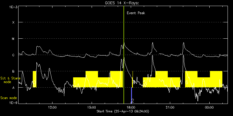 EIS Observation timeline overlay to GOES-Xray curve Code 1" 2" 40" 266" EIS Observations list for this event: STUDY ACRONYM ID DATE OBSERVED DESCRIPTION NOAA# TARGET 0 FLARE266_TEST2 | 33190 | 2013/04/25 10:30:34 | XRT Flare Trigger obs (AR 11726) | | Active Region TIMELINE ID DATE OBSERVED FITS FILE XCEN (+W/-E) YCEN (+N/-S) DUR ----------------------------------------------------------------------------------------------------------------- 33190 | 2013/04/25 10:30:34.000 | eis_l0_20130425_103034.fits.gz | 678.92 | 235.26 | 16m11s 1 FLARE266_TEST2 | 33191 | 2013/04/25 13:35:27 | XRT Flare Trigger obs (AR 11726) | 1726 | Active Region TIMELINE ID DATE OBSERVED FITS FILE XCEN (+W/-E) YCEN (+N/-S) DUR ----------------------------------------------------------------------------------------------------------------- 33191 | 2013/04/25 13:35:27.000 | eis_l0_20130425_133527.fits.gz | 692.21 | 233.10 | 56m 33191 | 2013/04/25 14:32:19.000 | eis_l0_20130425_143219.fits.gz | 696.22 | 232.17 | 56m 33191 | 2013/04/25 15:29:10.000 | eis_l0_20130425_152910.fits.gz | 700.01 | 231.71 | 56m1s 33191 | 2013/04/25 16:26:02.000 | eis_l0_20130425_162602.fits.gz | 703.87 | 231.01 | 56m 2 PRY_slot_contextLITE | 33155 | 2013/04/25 18:01:57 | EIS AIA alignment | | Active Region TIMELINE ID DATE OBSERVED FITS FILE XCEN (+W/-E) YCEN (+N/-S) DUR ----------------------------------------------------------------------------------------------------------------- 33155 | 2013/04/25 18:01:57.000 | eis_l0_20130425_180157.fits.gz | -15.29 | -0.50 | 2m56s 3 Alignment_266 | 33156 | 2013/04/25 18:05:37 | EIS AIA alignment | | Quiet Sun TIMELINE ID DATE OBSERVED FITS FILE XCEN (+W/-E) YCEN (+N/-S) DUR ----------------------------------------------------------------------------------------------------------------- 33156 | 2013/04/25 18:05:37.000 | eis_l0_20130425_180537.fits.gz | -132.49 | -0.50 | 1m22s 4 XRT_synop_AIA | 33157 | 2013/04/25 18:08:34 | EIS AIA alignment | | Quiet Sun TIMELINE ID DATE OBSERVED FITS FILE XCEN (+W/-E) YCEN (+N/-S) DUR ----------------------------------------------------------------------------------------------------------------- 33157 | 2013/04/25 18:08:34.000 | eis_l0_20130425_180834.fits.gz | -132.49 | -0.50 | 10s 5 FLARE266_TEST2 | 33192 | 2013/04/25 18:55:44 | XRT Flare Trigger obs (AR 11726) | 1726 | Active Region TIMELINE ID DATE OBSERVED FITS FILE XCEN (+W/-E) YCEN (+N/-S) DUR ----------------------------------------------------------------------------------------------------------------- 33192 | 2013/04/25 18:55:44.000 | eis_l0_20130425_185544.fits.gz | 713.53 | 229.16 | 56m 33192 | 2013/04/25 19:52:36.000 | eis_l0_20130425_195236.fits.gz | 717.16 | 228.54 | 55m59s 33192 | 2013/04/25 20:49:27.000 | eis_l0_20130425_204927.fits.gz | 720.64 | 227.84 | 56m1s 6 FLARE266_TEST2 | 33193 | 2013/04/25 22:09:14 | XRT Flare Trigger obs (AR 11726) | 1726 | Active Region TIMELINE ID DATE OBSERVED FITS FILE XCEN (+W/-E) YCEN (+N/-S) DUR ----------------------------------------------------------------------------------------------------------------- 33193 | 2013/04/25 22:09:14.000 | eis_l0_20130425_220914.fits.gz | 761.42 | 209.23 | 56m 33193 | 2013/04/25 23:06:06.000 | eis_l0_20130425_230606.fits.gz | 761.27 | 209.38 | 56m 33193 | 2013/04/26 00:02:57.000 | eis_l0_20130426_000257.fits.gz | 761.34 | 209.30 | 56m1s : Check study information : Download file : View thumbnails For this event, also check for: