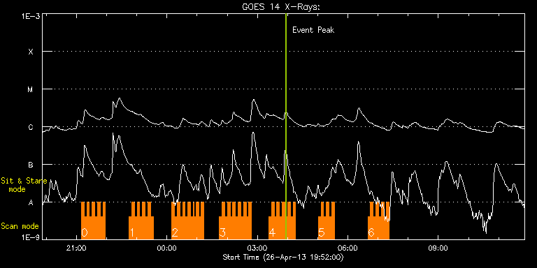 EIS Observation timeline overlay to GOES-Xray curve Code 1" 2" 40" 266" EIS Observations list for this event: STUDY ACRONYM ID DATE OBSERVED DESCRIPTION NOAA# TARGET 0 HH_Flare+AR_180x152 | 33170 | 2013/04/26 21:09:40 | AR 11726 Raster Scan Obs | 1726 | Flare TIMELINE ID DATE OBSERVED FITS FILE XCEN (+W/-E) YCEN (+N/-S) DUR ----------------------------------------------------------------------------------------------------------------- 33170 | 2013/04/26 21:09:40.000 | eis_l0_20130426_210940.fits.gz | 891.61 | 209.38 | 5m19s 33170 | 2013/04/26 21:15:02.000 | eis_l0_20130426_211502.fits.gz | 891.61 | 209.38 | 5m17s 33170 | 2013/04/26 21:20:22.000 | eis_l0_20130426_212022.fits.gz | 891.61 | 209.38 | 5m17s 33170 | 2013/04/26 21:25:42.000 | eis_l0_20130426_212542.fits.gz | 891.61 | 209.46 | 5m18s 33170 | 2013/04/26 21:31:03.000 | eis_l0_20130426_213103.fits.gz | 891.61 | 209.38 | 5m17s 33170 | 2013/04/26 21:36:23.000 | eis_l0_20130426_213623.fits.gz | 891.61 | 209.38 | 5m17s 33170 | 2013/04/26 21:41:43.000 | eis_l0_20130426_214143.fits.gz | 891.61 | 209.23 | 5m18s 33170 | 2013/04/26 21:47:04.000 | eis_l0_20130426_214704.fits.gz | 891.61 | 209.46 | 5m18s 33170 | 2013/04/26 21:52:25.000 | eis_l0_20130426_215225.fits.gz | 891.53 | 209.61 | 5m18s 1 HH_Flare+AR_180x152 | 33171 | 2013/04/26 22:44:43 | AR 11726 Raster Scan Obs | 1726 | Flare TIMELINE ID DATE OBSERVED FITS FILE XCEN (+W/-E) YCEN (+N/-S) DUR ----------------------------------------------------------------------------------------------------------------- 33171 | 2013/04/26 22:44:43.000 | eis_l0_20130426_224443.fits.gz | 891.53 | 209.54 | 5m18s 33171 | 2013/04/26 22:50:04.000 | eis_l0_20130426_225004.fits.gz | 891.53 | 209.30 | 5m18s 33171 | 2013/04/26 22:55:25.000 | eis_l0_20130426_225525.fits.gz | 891.61 | 209.38 | 5m18s 33171 | 2013/04/26 23:00:46.000 | eis_l0_20130426_230046.fits.gz | 891.53 | 209.30 | 5m17s 33171 | 2013/04/26 23:06:06.000 | eis_l0_20130426_230606.fits.gz | 891.53 | 209.46 | 5m18s 33171 | 2013/04/26 23:11:27.000 | eis_l0_20130426_231127.fits.gz | 891.53 | 209.54 | 5m18s 33171 | 2013/04/26 23:16:47.000 | eis_l0_20130426_231647.fits.gz | 891.53 | 209.30 | 5m18s 33171 | 2013/04/26 23:22:08.000 | eis_l0_20130426_232208.fits.gz | 891.61 | 209.38 | 5m19s 33171 | 2013/04/26 23:27:29.000 | eis_l0_20130426_232729.fits.gz | 891.61 | 209.46 | 5m18s 2 HH_Flare+AR_180x152 | 33172 | 2013/04/27 00:09:43 | AR 11726 Raster Scan Obs | 1726 | Flare TIMELINE ID DATE OBSERVED FITS FILE XCEN (+W/-E) YCEN (+N/-S) DUR ----------------------------------------------------------------------------------------------------------------- 33172 | 2013/04/27 00:09:43.000 | eis_l0_20130427_000943.fits.gz | 891.61 | 209.15 | 5m18s 33172 | 2013/04/27 00:15:03.000 | eis_l0_20130427_001503.fits.gz | 891.61 | 209.38 | 5m18s 33172 | 2013/04/27 00:20:24.000 | eis_l0_20130427_002024.fits.gz | 891.61 | 209.30 | 5m17s 33172 | 2013/04/27 00:25:44.000 | eis_l0_20130427_002544.fits.gz | 891.53 | 209.46 | 5m19s 33172 | 2013/04/27 00:31:05.000 | eis_l0_20130427_003105.fits.gz | 891.61 | 209.38 | 5m18s 33172 | 2013/04/27 00:36:26.000 | eis_l0_20130427_003626.fits.gz | 891.53 | 209.38 | 5m18s 33172 | 2013/04/27 00:41:46.000 | eis_l0_20130427_004146.fits.gz | 891.53 | 209.30 | 5m18s 33172 | 2013/04/27 00:47:07.000 | eis_l0_20130427_004707.fits.gz | 891.53 | 209.46 | 4m35s 33172 | 2013/04/27 00:52:38.000 | eis_l0_20130427_005238.fits.gz | 891.53 | 209.30 | 52s 33172 | 2013/04/27 00:53:42.000 | eis_l0_20130427_005342.fits.gz | 891.53 | 209.30 | 4m3s 33172 | 2013/04/27 00:57:48.000 | eis_l0_20130427_005748.fits.gz | 891.53 | 209.38 | 5m18s 33172 | 2013/04/27 01:03:09.000 | eis_l0_20130427_010309.fits.gz | 891.53 | 209.77 | 5m17s 33172 | 2013/04/27 01:08:29.000 | eis_l0_20130427_010829.fits.gz | 891.61 | 209.30 | 5m17s 3 HH_Flare+AR_180x152 | 33177 | 2013/04/27 01:44:13 | AR 11726 Raster Scan Obs | 1726 | Flare TIMELINE ID DATE OBSERVED FITS FILE XCEN (+W/-E) YCEN (+N/-S) DUR ----------------------------------------------------------------------------------------------------------------- 33177 | 2013/04/27 01:44:13.000 | eis_l0_20130427_014413.fits.gz | 891.61 | 209.38 | 5m19s 33177 | 2013/04/27 01:49:34.000 | eis_l0_20130427_014934.fits.gz | 891.61 | 209.38 | 5m19s 33177 | 2013/04/27 01:54:56.000 | eis_l0_20130427_015456.fits.gz | 891.61 | 209.30 | 5m18s 33177 | 2013/04/27 02:00:17.000 | eis_l0_20130427_020017.fits.gz | 891.61 | 209.23 | 5m18s 33177 | 2013/04/27 02:05:38.000 | eis_l0_20130427_020538.fits.gz | 891.61 | 209.38 | 5m17s 33177 | 2013/04/27 02:10:58.000 | eis_l0_20130427_021058.fits.gz | 891.61 | 209.30 | 5m19s 33177 | 2013/04/27 02:16:19.000 | eis_l0_20130427_021619.fits.gz | 891.53 | 209.23 | 5m18s 33177 | 2013/04/27 02:21:40.000 | eis_l0_20130427_022140.fits.gz | 891.61 | 209.38 | 5m17s 33177 | 2013/04/27 02:27:00.000 | eis_l0_20130427_022700.fits.gz | 891.69 | 209.38 | 5m17s 33177 | 2013/04/27 02:32:20.000 | eis_l0_20130427_023220.fits.gz | 891.53 | 209.30 | 5m18s 33177 | 2013/04/27 02:37:40.000 | eis_l0_20130427_023740.fits.gz | 891.46 | 209.46 | 5m18s 33177 | 2013/04/27 02:43:01.000 | eis_l0_20130427_024301.fits.gz | 891.69 | 209.46 | 5m17s 4 HH_Flare+AR_180x152 | 33178 | 2013/04/27 03:22:43 | AR 11726 Raster Scan Obs | 1726 | Flare TIMELINE ID DATE OBSERVED FITS FILE XCEN (+W/-E) YCEN (+N/-S) DUR ----------------------------------------------------------------------------------------------------------------- 33178 | 2013/04/27 03:22:43.000 | eis_l0_20130427_032243.fits.gz | 891.61 | 209.46 | 5m18s 33178 | 2013/04/27 03:28:04.000 | eis_l0_20130427_032804.fits.gz | 891.53 | 209.38 | 5m17s 33178 | 2013/04/27 03:33:24.000 | eis_l0_20130427_033324.fits.gz | 891.61 | 209.46 | 5m18s 33178 | 2013/04/27 03:38:45.000 | eis_l0_20130427_033845.fits.gz | 891.61 | 209.38 | 5m18s 33178 | 2013/04/27 03:44:06.000 | eis_l0_20130427_034406.fits.gz | 891.53 | 209.38 | 5m18s 33178 | 2013/04/27 03:49:27.000 | eis_l0_20130427_034927.fits.gz | 891.61 | 209.38 | 5m18s 33178 | 