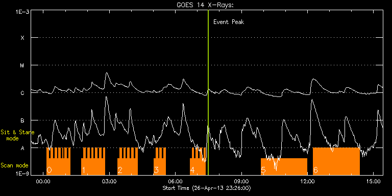 EIS Observation timeline overlay to GOES-Xray curve Code 1" 2" 40" 266" EIS Observations list for this event: STUDY ACRONYM ID DATE OBSERVED DESCRIPTION NOAA# TARGET 0 HH_Flare+AR_180x152 | 33172 | 2013/04/27 00:09:43 | AR 11726 Raster Scan Obs | 1726 | Flare TIMELINE ID DATE OBSERVED FITS FILE XCEN (+W/-E) YCEN (+N/-S) DUR ----------------------------------------------------------------------------------------------------------------- 33172 | 2013/04/27 00:09:43.000 | eis_l0_20130427_000943.fits.gz | 891.61 | 209.15 | 5m18s 33172 | 2013/04/27 00:15:03.000 | eis_l0_20130427_001503.fits.gz | 891.61 | 209.38 | 5m18s 33172 | 2013/04/27 00:20:24.000 | eis_l0_20130427_002024.fits.gz | 891.61 | 209.30 | 5m17s 33172 | 2013/04/27 00:25:44.000 | eis_l0_20130427_002544.fits.gz | 891.53 | 209.46 | 5m19s 33172 | 2013/04/27 00:31:05.000 | eis_l0_20130427_003105.fits.gz | 891.61 | 209.38 | 5m18s 33172 | 2013/04/27 00:36:26.000 | eis_l0_20130427_003626.fits.gz | 891.53 | 209.38 | 5m18s 33172 | 2013/04/27 00:41:46.000 | eis_l0_20130427_004146.fits.gz | 891.53 | 209.30 | 5m18s 33172 | 2013/04/27 00:47:07.000 | eis_l0_20130427_004707.fits.gz | 891.53 | 209.46 | 4m35s 33172 | 2013/04/27 00:52:38.000 | eis_l0_20130427_005238.fits.gz | 891.53 | 209.30 | 52s 33172 | 2013/04/27 00:53:42.000 | eis_l0_20130427_005342.fits.gz | 891.53 | 209.30 | 4m3s 33172 | 2013/04/27 00:57:48.000 | eis_l0_20130427_005748.fits.gz | 891.53 | 209.38 | 5m18s 33172 | 2013/04/27 01:03:09.000 | eis_l0_20130427_010309.fits.gz | 891.53 | 209.77 | 5m17s 33172 | 2013/04/27 01:08:29.000 | eis_l0_20130427_010829.fits.gz | 891.61 | 209.30 | 5m17s 1 HH_Flare+AR_180x152 | 33177 | 2013/04/27 01:44:13 | AR 11726 Raster Scan Obs | 1726 | Flare TIMELINE ID DATE OBSERVED FITS FILE XCEN (+W/-E) YCEN (+N/-S) DUR ----------------------------------------------------------------------------------------------------------------- 33177 | 2013/04/27 01:44:13.000 | eis_l0_20130427_014413.fits.gz | 891.61 | 209.38 | 5m19s 33177 | 2013/04/27 01:49:34.000 | eis_l0_20130427_014934.fits.gz | 891.61 | 209.38 | 5m19s 33177 | 2013/04/27 01:54:56.000 | eis_l0_20130427_015456.fits.gz | 891.61 | 209.30 | 5m18s 33177 | 2013/04/27 02:00:17.000 | eis_l0_20130427_020017.fits.gz | 891.61 | 209.23 | 5m18s 33177 | 2013/04/27 02:05:38.000 | eis_l0_20130427_020538.fits.gz | 891.61 | 209.38 | 5m17s 33177 | 2013/04/27 02:10:58.000 | eis_l0_20130427_021058.fits.gz | 891.61 | 209.30 | 5m19s 33177 | 2013/04/27 02:16:19.000 | eis_l0_20130427_021619.fits.gz | 891.53 | 209.23 | 5m18s 33177 | 2013/04/27 02:21:40.000 | eis_l0_20130427_022140.fits.gz | 891.61 | 209.38 | 5m17s 33177 | 2013/04/27 02:27:00.000 | eis_l0_20130427_022700.fits.gz | 891.69 | 209.38 | 5m17s 33177 | 2013/04/27 02:32:20.000 | eis_l0_20130427_023220.fits.gz | 891.53 | 209.30 | 5m18s 33177 | 2013/04/27 02:37:40.000 | eis_l0_20130427_023740.fits.gz | 891.46 | 209.46 | 5m18s 33177 | 2013/04/27 02:43:01.000 | eis_l0_20130427_024301.fits.gz | 891.69 | 209.46 | 5m17s 2 HH_Flare+AR_180x152 | 33178 | 2013/04/27 03:22:43 | AR 11726 Raster Scan Obs | 1726 | Flare TIMELINE ID DATE OBSERVED FITS FILE XCEN (+W/-E) YCEN (+N/-S) DUR ----------------------------------------------------------------------------------------------------------------- 33178 | 2013/04/27 03:22:43.000 | eis_l0_20130427_032243.fits.gz | 891.61 | 209.46 | 5m18s 33178 | 2013/04/27 03:28:04.000 | eis_l0_20130427_032804.fits.gz | 891.53 | 209.38 | 5m17s 33178 | 2013/04/27 03:33:24.000 | eis_l0_20130427_033324.fits.gz | 891.61 | 209.46 | 5m18s 33178 | 2013/04/27 03:38:45.000 | eis_l0_20130427_033845.fits.gz | 891.61 | 209.38 | 5m18s 33178 | 2013/04/27 03:44:06.000 | eis_l0_20130427_034406.fits.gz | 891.53 | 209.38 | 5m18s 33178 | 2013/04/27 03:49:27.000 | eis_l0_20130427_034927.fits.gz | 891.61 | 209.38 | 5m18s 33178 | 2013/04/27 03:54:48.000 | eis_l0_20130427_035448.fits.gz | 891.61 | 209.30 | 5m17s 33178 | 2013/04/27 04:00:08.000 | eis_l0_20130427_040008.fits.gz | 891.61 | 209.38 | 5m18s 33178 | 2013/04/27 04:05:29.000 | eis_l0_20130427_040529.fits.gz | 891.53 | 209.38 | 5m17s 33178 | 2013/04/27 04:10:49.000 | eis_l0_20130427_041049.fits.gz | 891.61 | 209.38 | 5m18s 3 HH_Flare+AR_180x152 | 33195 | 2013/04/27 05:01:13 | AR 11726 Raster Scan Obs | 1726 | Flare TIMELINE ID DATE OBSERVED FITS FILE XCEN (+W/-E) YCEN (+N/-S) DUR ----------------------------------------------------------------------------------------------------------------- 33195 | 2013/04/27 05:01:13.000 | eis_l0_20130427_050113.fits.gz | 891.53 | 209.38 | 5m18s 33195 | 2013/04/27 05:06:34.000 | eis_l0_20130427_050634.fits.gz | 891.61 | 209.38 | 5m17s 33195 | 2013/04/27 05:11:54.000 | eis_l0_20130427_051154.fits.gz | 891.69 | 209.46 | 5m18s 33195 | 2013/04/27 05:17:15.000 | eis_l0_20130427_051715.fits.gz | 891.61 | 209.38 | 5m18s 33195 | 2013/04/27 05:22:35.000 | eis_l0_20130427_052235.fits.gz | 891.61 | 209.38 | 5m18s 33195 | 2013/04/27 05:27:56.000 | eis_l0_20130427_052756.fits.gz | 891.61 | 209.30 | 5m19s 4 HH_Flare+AR_180x152 | 33196 | 2013/04/27 06:39:43 | AR 11726 Raster Scan Obs | 1726 | Flare TIMELINE ID DATE OBSERVED FITS FILE XCEN (+W/-E) YCEN (+N/-S) DUR ----------------------------------------------------------------------------------------------------------------- 33196 | 2013/04/27 06:39:43.000 | eis_l0_20130427_063943.fits.gz | 891.61 | 209.46 | 5m17s 33196 | 2013/04/27 06:45:03.000 | eis_l0_20130427_064503.fits.gz | 891.61 | 209.38 | 5m17s 33196 | 2013/04/27 06:50:23.000 | eis_l0_20130427_065023.fits.gz | 891.53 | 209.46 | 5m18s 33196 | 2013/04/27 06:55:44.000 | eis_l0_20130427_065544.fits.gz | 891.61 | 209.54 | 5m18s 33196 | 2013/04/27 07:01:04.000 | eis_l0_20130427_070104.fits.gz | 891.61 | 209.46 | 5m18s 33196 | 2013/04/27 07:06:25.000 | eis_l0_20130427_070625.fits.gz | 891.53 | 209.46 | 5m18s 33196 | 2013/04/27 07:11:46.000 | eis_l0_20130427_071146.fits.gz | 891.53 | 209.30 | 5m17s 33196 | 2013/04/27 07:17:06.000 | eis_l0_20130427_071706.fits.gz | 891.53 | 209.46 | 5m18s 5 cam_ar