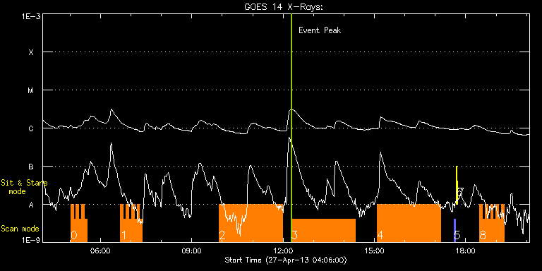 EIS Observation timeline overlay to GOES-Xray curve Code 1" 2" 40" 266" EIS Observations list for this event: STUDY ACRONYM ID DATE OBSERVED DESCRIPTION NOAA# TARGET 0 HH_Flare+AR_180x152 | 33195 | 2013/04/27 05:01:13 | AR 11726 Raster Scan Obs | 1726 | Flare TIMELINE ID DATE OBSERVED FITS FILE XCEN (+W/-E) YCEN (+N/-S) DUR ----------------------------------------------------------------------------------------------------------------- 33195 | 2013/04/27 05:01:13.000 | eis_l0_20130427_050113.fits.gz | 891.53 | 209.38 | 5m18s 33195 | 2013/04/27 05:06:34.000 | eis_l0_20130427_050634.fits.gz | 891.61 | 209.38 | 5m17s 33195 | 2013/04/27 05:11:54.000 | eis_l0_20130427_051154.fits.gz | 891.69 | 209.46 | 5m18s 33195 | 2013/04/27 05:17:15.000 | eis_l0_20130427_051715.fits.gz | 891.61 | 209.38 | 5m18s 33195 | 2013/04/27 05:22:35.000 | eis_l0_20130427_052235.fits.gz | 891.61 | 209.38 | 5m18s 33195 | 2013/04/27 05:27:56.000 | eis_l0_20130427_052756.fits.gz | 891.61 | 209.30 | 5m19s 1 HH_Flare+AR_180x152 | 33196 | 2013/04/27 06:39:43 | AR 11726 Raster Scan Obs | 1726 | Flare TIMELINE ID DATE OBSERVED FITS FILE XCEN (+W/-E) YCEN (+N/-S) DUR ----------------------------------------------------------------------------------------------------------------- 33196 | 2013/04/27 06:39:43.000 | eis_l0_20130427_063943.fits.gz | 891.61 | 209.46 | 5m17s 33196 | 2013/04/27 06:45:03.000 | eis_l0_20130427_064503.fits.gz | 891.61 | 209.38 | 5m17s 33196 | 2013/04/27 06:50:23.000 | eis_l0_20130427_065023.fits.gz | 891.53 | 209.46 | 5m18s 33196 | 2013/04/27 06:55:44.000 | eis_l0_20130427_065544.fits.gz | 891.61 | 209.54 | 5m18s 33196 | 2013/04/27 07:01:04.000 | eis_l0_20130427_070104.fits.gz | 891.61 | 209.46 | 5m18s 33196 | 2013/04/27 07:06:25.000 | eis_l0_20130427_070625.fits.gz | 891.53 | 209.46 | 5m18s 33196 | 2013/04/27 07:11:46.000 | eis_l0_20130427_071146.fits.gz | 891.53 | 209.30 | 5m17s 33196 | 2013/04/27 07:17:06.000 | eis_l0_20130427_071706.fits.gz | 891.53 | 209.46 | 5m18s 2 cam_ar_limb_lite_v2 | 33197 | 2013/04/27 09:53:17 | AR 11726 (temperature diagnostic) | 1726 | Active Region TIMELINE ID DATE OBSERVED FITS FILE XCEN (+W/-E) YCEN (+N/-S) DUR ----------------------------------------------------------------------------------------------------------------- 33197 | 2013/04/27 09:53:17.000 | eis_l0_20130427_095317.fits.gz | 999.69 | 269.30 | 2h6m1s 3 cam_ar_limb_lite_v2 | 33241 | 2013/04/27 12:15:55 | AR 11726 (temperature diagnostic) | 1726 | Active Region TIMELINE ID DATE OBSERVED FITS FILE XCEN (+W/-E) YCEN (+N/-S) DUR ----------------------------------------------------------------------------------------------------------------- 33241 | 2013/04/27 12:15:55.000 | eis_l0_20130427_121555.fits.gz | 999.69 | 269.30 | 2h6m1s 4 cam_ar_limb_lite_v2 | 33252 | 2013/04/27 15:05:04 | AR 11726 (temperature diagnostic) | 1726 | Active Region TIMELINE ID DATE OBSERVED FITS FILE XCEN (+W/-E) YCEN (+N/-S) DUR ----------------------------------------------------------------------------------------------------------------- 33252 | 2013/04/27 15:05:04.000 | eis_l0_20130427_150504.fits.gz | 999.69 | 269.38 | 2h6m1s 5 PRY_slot_contextLITE | 33254 | 2013/04/27 17:36:58 | EIS AIA alignment | 1730 | Active Region TIMELINE ID DATE OBSERVED FITS FILE XCEN (+W/-E) YCEN (+N/-S) DUR ----------------------------------------------------------------------------------------------------------------- 33254 | 2013/04/27 17:36:58.000 | eis_l0_20130427_173658.fits.gz | -15.29 | -0.65 | 2m56s 6 Alignment_266 | 33255 | 2013/04/27 17:40:55 | EIS AIA alignment | 1730 | Quiet Sun TIMELINE ID DATE OBSERVED FITS FILE XCEN (+W/-E) YCEN (+N/-S) DUR ----------------------------------------------------------------------------------------------------------------- 33255 | 2013/04/27 17:40:55.000 | eis_l0_20130427_174055.fits.gz | -132.57 | -0.58 | 1m22s 7 XRT_synop_AIA | 33256 | 2013/04/27 17:43:25 | EIS AIA alignment | 1730 | Quiet Sun TIMELINE ID DATE OBSERVED FITS FILE XCEN (+W/-E) YCEN (+N/-S) DUR ----------------------------------------------------------------------------------------------------------------- 33256 | 2013/04/27 17:43:25.000 | eis_l0_20130427_174325.fits.gz | -132.49 | -0.50 | 10s 8 HH_Flare+AR_180x152 | 33239 | 2013/04/27 18:27:32 | Flare obs. (AR 11726) | 1726 | Flare TIMELINE ID DATE OBSERVED FITS FILE XCEN (+W/-E) YCEN (+N/-S) DUR ----------------------------------------------------------------------------------------------------------------- 33239 | 2013/04/27 18:27:32.000 | eis_l0_20130427_182732.fits.gz | 977.72 | 219.46 | 5m17s 33239 | 2013/04/27 18:32:52.000 | eis_l0_20130427_183252.fits.gz | 977.72 | 219.30 | 5m18s 33239 | 2013/04/27 18:38:13.000 | eis_l0_20130427_183813.fits.gz | 977.72 | 219.38 | 5m18s 33239 | 2013/04/27 18:43:34.000 | eis_l0_20130427_184334.fits.gz | 977.80 | 219.23 | 5m18s 33239 | 2013/04/27 18:48:55.000 | eis_l0_20130427_184855.fits.gz | 977.72 | 219.30 | 5m18s 33239 | 2013/04/27 18:54:16.000 | eis_l0_20130427_185416.fits.gz | 977.65 | 219.46 | 5m18s 33239 | 2013/04/27 18:59:37.000 | eis_l0_20130427_185937.fits.gz | 977.65 | 219.54 | 5m18s 33239 | 2013/04/27 19:04:58.000 | eis_l0_20130427_190458.fits.gz | 977.72 | 219.38 | 5m18s 33239 | 2013/04/27 19:10:18.000 | eis_l0_20130427_191018.fits.gz | 977.72 | 219.54 | 5m19s : Check study information : Download file : View thumbnails For this event, also check for:
