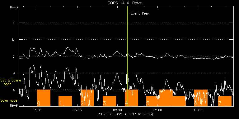 EIS Observation timeline overlay to GOES-Xray curve Code 1" 2" 40" 266" EIS Observations list for this event: STUDY ACRONYM ID DATE OBSERVED DESCRIPTION NOAA# TARGET 0 ISSI_jet_1 | 33218 | 2013/04/29 03:01:16 | HOP 217 | | Quiet Sun TIMELINE ID DATE OBSERVED FITS FILE XCEN (+W/-E) YCEN (+N/-S) DUR ----------------------------------------------------------------------------------------------------------------- 33218 | 2013/04/29 03:01:16.000 | eis_l0_20130429_030116.fits.gz | -31.00 | 190.77 | 58m36s 1 ISSI_jet_1 | 33219 | 2013/04/29 04:37:28 | HOP 217 | | Quiet Sun TIMELINE ID DATE OBSERVED FITS FILE XCEN (+W/-E) YCEN (+N/-S) DUR ----------------------------------------------------------------------------------------------------------------- 33219 | 2013/04/29 04:37:28.000 | eis_l0_20130429_043728.fits.gz | -16.17 | 190.69 | 58m36s 2 ISSI_jet_1 | 33220 | 2013/04/29 06:15:19 | HOP 217 | | Quiet Sun TIMELINE ID DATE OBSERVED FITS FILE XCEN (+W/-E) YCEN (+N/-S) DUR ----------------------------------------------------------------------------------------------------------------- 33220 | 2013/04/29 06:15:19.000 | eis_l0_20130429_061519.fits.gz | -1.03 | 190.62 | 58m37s 3 ISSI_jet_1 | 33221 | 2013/04/29 07:54:51 | HOP 217 | | Quiet Sun TIMELINE ID DATE OBSERVED FITS FILE XCEN (+W/-E) YCEN (+N/-S) DUR ----------------------------------------------------------------------------------------------------------------- 33221 | 2013/04/29 07:54:51.000 | eis_l0_20130429_075451.fits.gz | 14.42 | 190.54 | 58m35s 4 ISSI_jet_1 | 33226 | 2013/04/29 09:33:31 | HOP 217 | | Quiet Sun TIMELINE ID DATE OBSERVED FITS FILE XCEN (+W/-E) YCEN (+N/-S) DUR ----------------------------------------------------------------------------------------------------------------- 33226 | 2013/04/29 09:33:31.000 | eis_l0_20130429_093331.fits.gz | 29.64 | 190.38 | 58m36s 5 ISSI_jet_1 | 33253 | 2013/04/29 11:08:52 | HOP 217 | | Quiet Sun TIMELINE ID DATE OBSERVED FITS FILE XCEN (+W/-E) YCEN (+N/-S) DUR ----------------------------------------------------------------------------------------------------------------- 33253 | 2013/04/29 11:08:52.000 | eis_l0_20130429_110852.fits.gz | 44.39 | 190.15 | 58m37s 33253 | 2013/04/29 12:07:32.000 | eis_l0_20130429_120732.fits.gz | 53.43 | 190.08 | 58m37s 33253 | 2013/04/29 13:06:12.000 | eis_l0_20130429_130612.fits.gz | 62.54 | 190.08 | 58m36s 6 ISSI_jet_1 | 33229 | 2013/04/29 14:43:12 | HOP 217 | | Quiet Sun TIMELINE ID DATE OBSERVED FITS FILE XCEN (+W/-E) YCEN (+N/-S) DUR ----------------------------------------------------------------------------------------------------------------- 33229 | 2013/04/29 14:43:12.000 | eis_l0_20130429_144312.fits.gz | 77.53 | 189.85 | 58m36s 7 ISSI_jet_1 | 33230 | 2013/04/29 16:31:12 | HOP 217 | | Quiet Sun TIMELINE ID DATE OBSERVED FITS FILE XCEN (+W/-E) YCEN (+N/-S) DUR ----------------------------------------------------------------------------------------------------------------- 33230 | 2013/04/29 16:31:12.000 | eis_l0_20130429_163112.fits.gz | 94.14 | 189.69 | 58m36s : Check study information : Download file : View thumbnails For this event, also check for:
