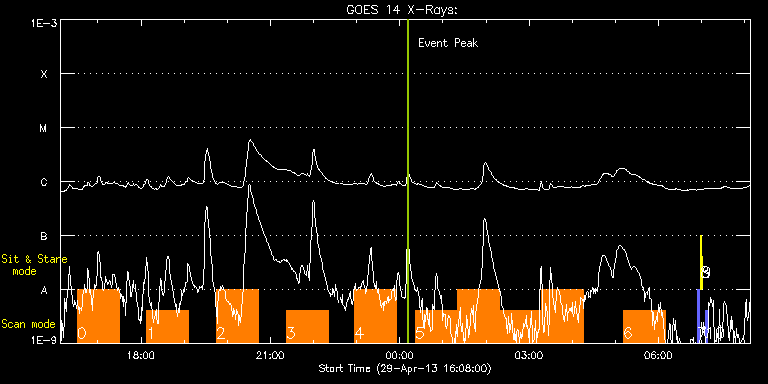 EIS Observation timeline overlay to GOES-Xray curve Code 1" 2" 40" 266" EIS Observations list for this event: STUDY ACRONYM ID DATE OBSERVED DESCRIPTION NOAA# TARGET 0 ISSI_jet_1 | 33230 | 2013/04/29 16:31:12 | HOP 217 | | Quiet Sun TIMELINE ID DATE OBSERVED FITS FILE XCEN (+W/-E) YCEN (+N/-S) DUR ----------------------------------------------------------------------------------------------------------------- 33230 | 2013/04/29 16:31:12.000 | eis_l0_20130429_163112.fits.gz | 94.14 | 189.69 | 58m36s 1 ISSI_jet_1 | 33231 | 2013/04/29 18:07:42 | HOP 217 | | Quiet Sun TIMELINE ID DATE OBSERVED FITS FILE XCEN (+W/-E) YCEN (+N/-S) DUR ----------------------------------------------------------------------------------------------------------------- 33231 | 2013/04/29 18:07:42.000 | eis_l0_20130429_180742.fits.gz | 108.89 | 189.46 | 58m36s 2 ISSI_jet_1 | 33232 | 2013/04/29 19:44:42 | HOP 217 | | Quiet Sun TIMELINE ID DATE OBSERVED FITS FILE XCEN (+W/-E) YCEN (+N/-S) DUR ----------------------------------------------------------------------------------------------------------------- 33232 | 2013/04/29 19:44:42.000 | eis_l0_20130429_194442.fits.gz | 123.80 | 189.07 | 58m36s 3 ISSI_jet_1 | 33233 | 2013/04/29 21:22:12 | HOP 217 | | Quiet Sun TIMELINE ID DATE OBSERVED FITS FILE XCEN (+W/-E) YCEN (+N/-S) DUR ----------------------------------------------------------------------------------------------------------------- 33233 | 2013/04/29 21:22:12.000 | eis_l0_20130429_212212.fits.gz | 138.71 | 188.84 | 58m37s 4 ISSI_jet_1 | 33234 | 2013/04/29 22:57:12 | HOP 217 | | Quiet Sun TIMELINE ID DATE OBSERVED FITS FILE XCEN (+W/-E) YCEN (+N/-S) DUR ----------------------------------------------------------------------------------------------------------------- 33234 | 2013/04/29 22:57:12.000 | eis_l0_20130429_225712.fits.gz | 153.23 | 188.61 | 58m36s 5 ISSI_jet_1 | 33235 | 2013/04/30 00:21:42 | HOP 217 | | Quiet Sun TIMELINE ID DATE OBSERVED FITS FILE XCEN (+W/-E) YCEN (+N/-S) DUR ----------------------------------------------------------------------------------------------------------------- 33235 | 2013/04/30 00:21:42.000 | eis_l0_20130430_002142.fits.gz | 166.21 | 188.22 | 58m36s 33235 | 2013/04/30 01:20:21.000 | eis_l0_20130430_012021.fits.gz | 175.17 | 187.99 | 58m36s 33235 | 2013/04/30 02:19:00.000 | eis_l0_20130430_021900.fits.gz | 184.05 | 187.84 | 58m37s 33235 | 2013/04/30 03:17:40.000 | eis_l0_20130430_031740.fits.gz | 192.78 | 187.76 | 58m36s 6 ISSI_jet_1 | 33238 | 2013/04/30 05:10:42 | HOP 217 | | Quiet Sun TIMELINE ID DATE OBSERVED FITS FILE XCEN (+W/-E) YCEN (+N/-S) DUR ----------------------------------------------------------------------------------------------------------------- 33238 | 2013/04/30 05:10:42.000 | eis_l0_20130430_051042.fits.gz | 210.01 | 187.29 | 58m36s 7 PRY_slot_contextLITE | 33260 | 2013/04/30 06:54:19 | EIS AIA alignment | 1731 | Active Region TIMELINE ID DATE OBSERVED FITS FILE XCEN (+W/-E) YCEN (+N/-S) DUR ----------------------------------------------------------------------------------------------------------------- 33260 | 2013/04/30 06:54:19.000 | eis_l0_20130430_065419.fits.gz | -15.29 | -0.73 | 2m56s 8 Alignment_266 | 33261 | 2013/04/30 06:58:05 | EIS AIA alignment | 1731 | Quiet Sun TIMELINE ID DATE OBSERVED FITS FILE XCEN (+W/-E) YCEN (+N/-S) DUR ----------------------------------------------------------------------------------------------------------------- 33261 | 2013/04/30 06:58:05.000 | eis_l0_20130430_065805.fits.gz | -132.57 | -0.58 | 1m22s 9 XRT_synop_AIA | 33262 | 2013/04/30 07:00:36 | EIS AIA alignment | 1731 | Quiet Sun TIMELINE ID DATE OBSERVED FITS FILE XCEN (+W/-E) YCEN (+N/-S) DUR ----------------------------------------------------------------------------------------------------------------- 33262 | 2013/04/30 07:00:36.000 | eis_l0_20130430_070036.fits.gz | -132.49 | -0.27 | 10s 10 PRY_slot_context_v3 | 33263 | 2013/04/30 07:05:12 | flare obs. (AR 11731) | 1731 | Active Region TIMELINE ID DATE OBSERVED FITS FILE XCEN (+W/-E) YCEN (+N/-S) DUR ----------------------------------------------------------------------------------------------------------------- 33263 | 2013/04/30 07:05:12.000 | eis_l0_20130430_070512.fits.gz | -163.99 | 200.65 | 2m56s : Check study information : Download file : View thumbnails For this event, also check for: