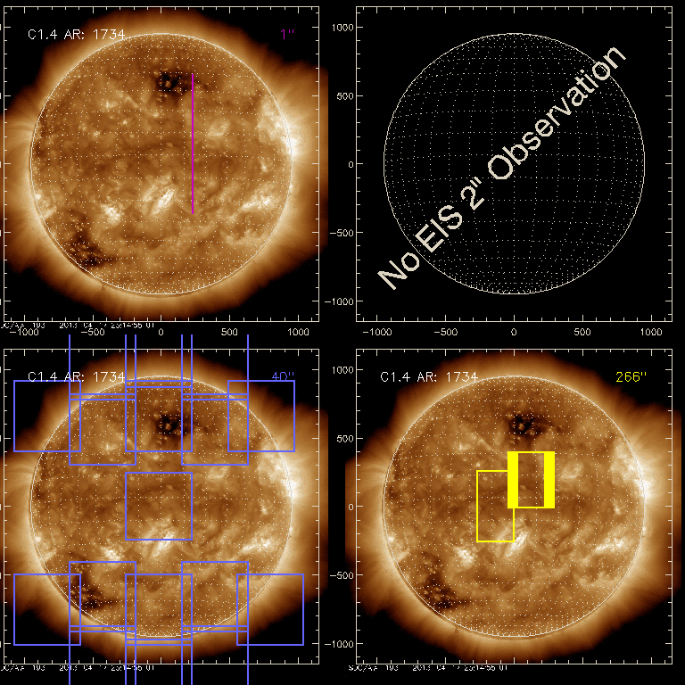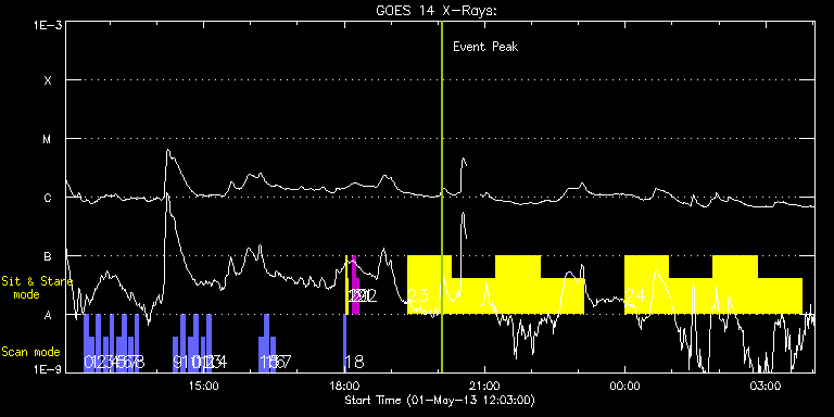 EIS Observation timeline overlay to GOES-Xray curve Code 1" 2" 40" 266" EIS Observations list for this event: STUDY ACRONYM ID DATE OBSERVED DESCRIPTION NOAA# TARGET 0 full_sun_slot_scan_2 | 33278 | 2013/05/01 12:26:13 | HOP 130 (5T/15) | | Quiet Sun TIMELINE ID DATE OBSERVED FITS FILE XCEN (+W/-E) YCEN (+N/-S) DUR ----------------------------------------------------------------------------------------------------------------- 33278 | 2013/05/01 12:26:13.000 | eis_l0_20130501_122613.fits.gz | -9884.69 | -9777.20 | 5m27s 1 full_sun_slot_scan_2 | 33279 | 2013/05/01 12:33:23 | HOP 130 (5B/15) | | Quiet Sun TIMELINE ID DATE OBSERVED FITS FILE XCEN (+W/-E) YCEN (+N/-S) DUR ----------------------------------------------------------------------------------------------------------------- 33279 | 2013/05/01 12:33:23.000 | eis_l0_20130501_123323.fits.gz | -9884.69 | -10249.20 | 5m27s 2 full_sun_slot_scan_2 | 33280 | 2013/05/01 12:42:13 | HOP 130 (6T/15) | | Quiet Sun TIMELINE ID DATE OBSERVED FITS FILE XCEN (+W/-E) YCEN (+N/-S) DUR ----------------------------------------------------------------------------------------------------------------- 33280 | 2013/05/01 12:42:13.000 | eis_l0_20130501_124213.fits.gz | 731.46 | 655.47 | 5m27s 3 full_sun_slot_scan_2 | 33281 | 2013/05/01 12:52:13 | HOP 130 (7T/15) | | Quiet Sun TIMELINE ID DATE OBSERVED FITS FILE XCEN (+W/-E) YCEN (+N/-S) DUR ----------------------------------------------------------------------------------------------------------------- 33281 | 2013/05/01 12:52:13.000 | eis_l0_20130501_125213.fits.gz | 395.90 | 1032.67 | 5m27s 4 full_sun_slot_scan_2 | 33282 | 2013/05/01 12:59:23 | HOP 130 (7B/15) | 1728 | Quiet Sun TIMELINE ID DATE OBSERVED FITS FILE XCEN (+W/-E) YCEN (+N/-S) DUR ----------------------------------------------------------------------------------------------------------------- 33282 | 2013/05/01 12:59:23.000 | eis_l0_20130501_125923.fits.gz | 395.82 | 560.60 | 5m27s 5 full_sun_slot_scan_2 | 33283 | 2013/05/01 13:08:13 | HOP 130 (8T/15) | | Quiet Sun TIMELINE ID DATE OBSERVED FITS FILE XCEN (+W/-E) YCEN (+N/-S) DUR ----------------------------------------------------------------------------------------------------------------- 33283 | 2013/05/01 13:08:13.000 | eis_l0_20130501_130813.fits.gz | -15.29 | 1126.45 | 5m27s 6 full_sun_slot_scan_2 | 33284 | 2013/05/01 13:15:23 | HOP 130 (8B/15) | | Quiet Sun TIMELINE ID DATE OBSERVED FITS FILE XCEN (+W/-E) YCEN (+N/-S) DUR ----------------------------------------------------------------------------------------------------------------- 33284 | 2013/05/01 13:15:23.000 | eis_l0_20130501_131523.fits.gz | -15.21 | 654.53 | 5m27s 7 full_sun_slot_scan_2 | 33285 | 2013/05/01 13:24:13 | HOP 130 (9T/15) | | Quiet Sun TIMELINE ID DATE OBSERVED FITS FILE XCEN (+W/-E) YCEN (+N/-S) DUR ----------------------------------------------------------------------------------------------------------------- 33285 | 2013/05/01 13:24:13.000 | eis_l0_20130501_132413.fits.gz | -426.15 | 1032.52 | 5m27s 8 full_sun_slot_scan_2 | 33286 | 2013/05/01 13:31:23 | HOP 130 (9B/15) | | Quiet Sun TIMELINE ID DATE OBSERVED FITS FILE XCEN (+W/-E) YCEN (+N/-S) DUR ----------------------------------------------------------------------------------------------------------------- 33286 | 2013/05/01 13:31:23.000 | eis_l0_20130501_133123.fits.gz | -426.00 | 560.60 | 5m27s 9 full_sun_slot_scan_2 | 33287 | 2013/05/01 14:20:13 | HOP 130 (10T/15) | | Quiet Sun TIMELINE ID DATE OBSERVED FITS FILE XCEN (+W/-E) YCEN (+N/-S) DUR ----------------------------------------------------------------------------------------------------------------- 33287 | 2013/05/01 14:20:13.000 | eis_l0_20130501_142013.fits.gz | -830.08 | 655.63 | 5m28s 10 full_sun_slot_scan_2 | 33288 | 2013/05/01 14:30:13 | HOP 130 (11B/15) | | Quiet Sun TIMELINE ID DATE OBSERVED FITS FILE XCEN (+W/-E) YCEN (+N/-S) DUR ----------------------------------------------------------------------------------------------------------------- 33288 | 2013/05/01 14:30:13.000 | eis_l0_20130501_143013.fits.gz | 799.05 | -757.17 | 5m27s 11 full_sun_slot_scan_2 | 33289 | 2013/05/01 14:40:13 | HOP 130 (12T/15) | | Quiet Sun TIMELINE ID DATE OBSERVED FITS FILE XCEN (+W/-E) YCEN (+N/-S) DUR ----------------------------------------------------------------------------------------------------------------- 33289 | 2013/05/01 14:40:13.000 | eis_l0_20130501_144013.fits.gz | 395.90 | -661.75 | 5m27s 12 full_sun_slot_scan_2 | 33290 | 2013/05/01 14:47:23 | HOP 130 (12B/15) | | Quiet Sun TIMELINE ID DATE OBSERVED FITS FILE XCEN (+W/-E) YCEN (+N/-S) DUR ----------------------------------------------------------------------------------------------------------------- 33290 | 2013/05/01 14:47:23.000 | eis_l0_20130501_144723.fits.gz | 395.82 | -1133.44 | 5m27s 13 full_sun_slot_scan_2 | 33291 | 2013/05/01 14:56:13 | HOP 130 (13T/15) | | Quiet Sun TIMELINE ID DATE OBSERVED FITS FILE XCEN (+W/-E) YCEN (+N/-S) DUR ----------------------------------------------------------------------------------------------------------------- 33291 | 2013/05/01 14:56:13.000 | eis_l0_20130501_145613.fits.gz | -15.29 | -755.53 | 5m28s 14 full_sun_slot_scan_2 | 33292 | 2013/05/01 15:03:23 | HOP 130 (13B/15) | | Quiet Sun TIMELINE ID DATE OBSERVED FITS FILE XCEN (+W/-E) YCEN (+N/-S) DUR ----------------------------------------------------------------------------------------------------------------- 33292 | 2013/05/01 15:03:23.000 | eis_l0_20130501_150323.fits.gz | -15.29 | -1227.38 | 5m27s 15 full_sun_slot_scan_2 | 33293 | 2013/05/01 16:10:13 | HOP 130 (14T/15) | | Quiet Sun TIMELINE ID DATE OBSERVED FITS FILE XCEN (+W/-E) YCEN (+N/-S) DUR ----------------------------------------------------------------------------------------------------------------- 33293 | 2013/05/01 16:10:13.000 | eis_l0_20130501_161013.fits.gz | -426.15 | -661.37 | 5m27s 16 full_sun_slot_scan_2 | 33294 | 2013/05/01 16:17:23 | HOP 130 (14B/15) | | Quiet Sun TIMELINE 